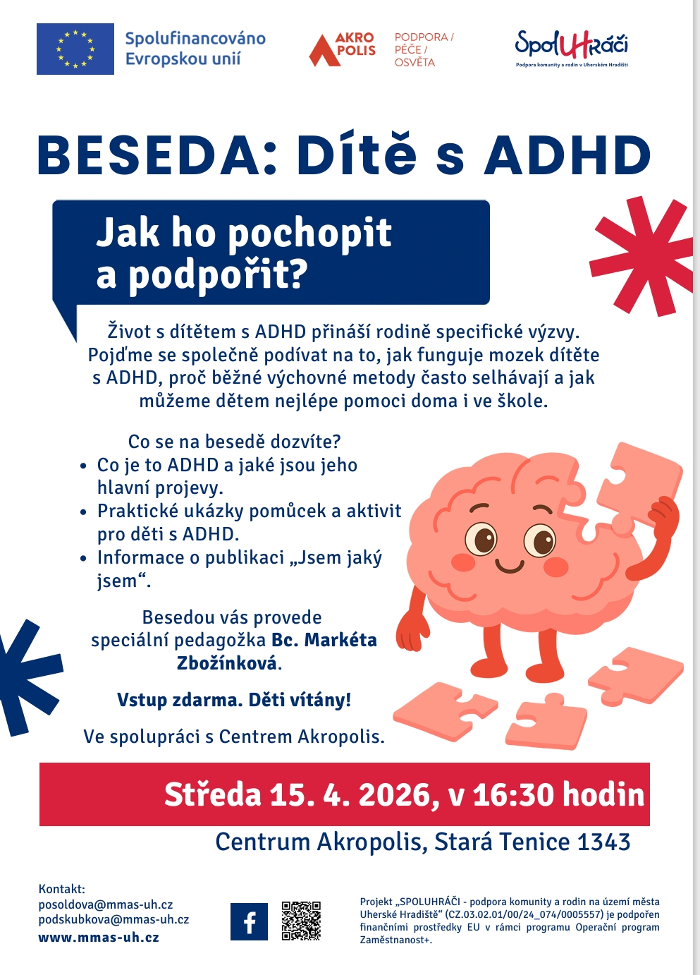 Besedou vás provede speciální pedagožka Bc. Markéta Zbožínková. Vstup je zdarma a děti jsou vítány!