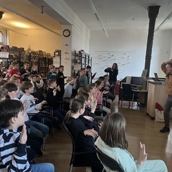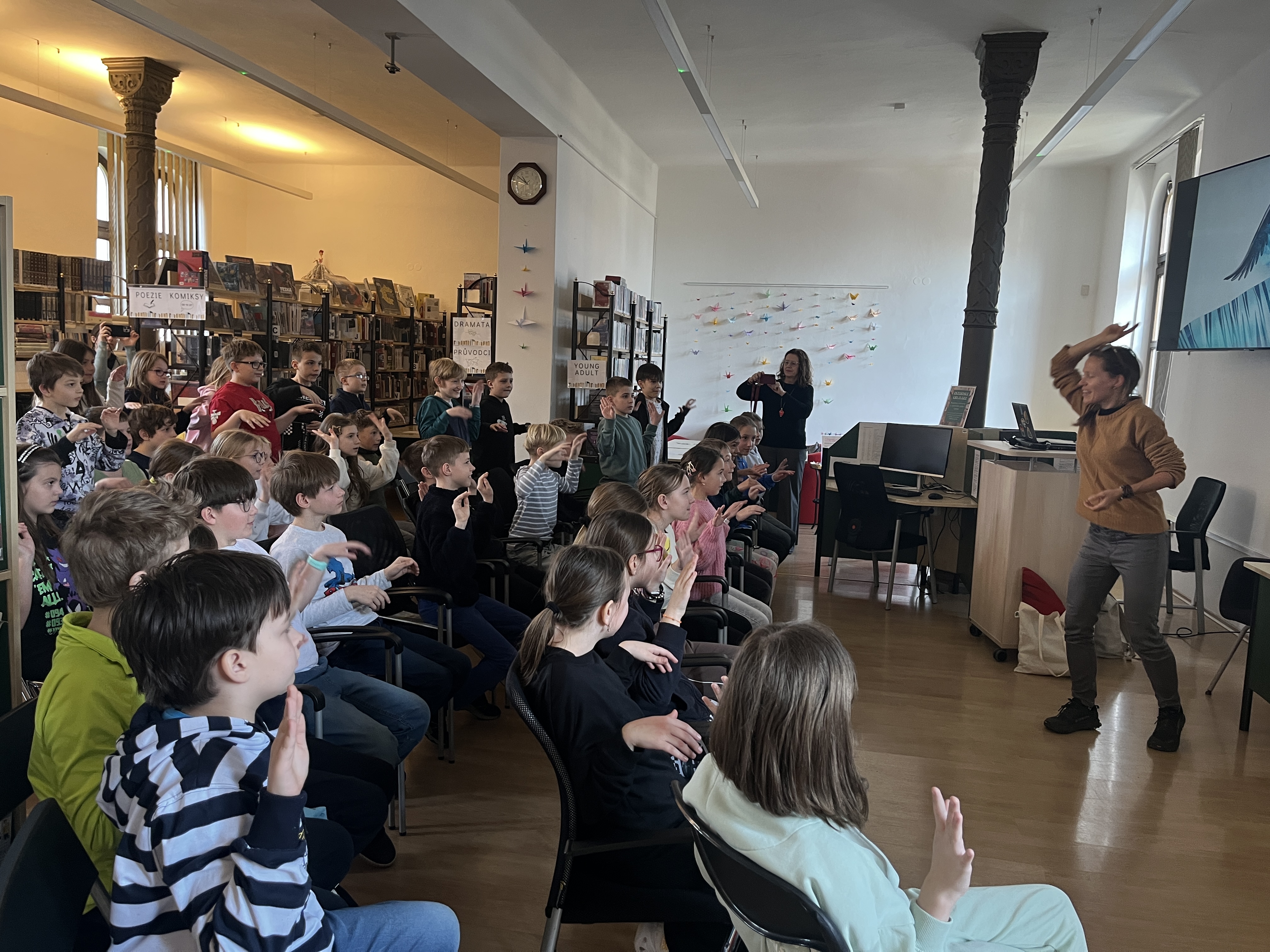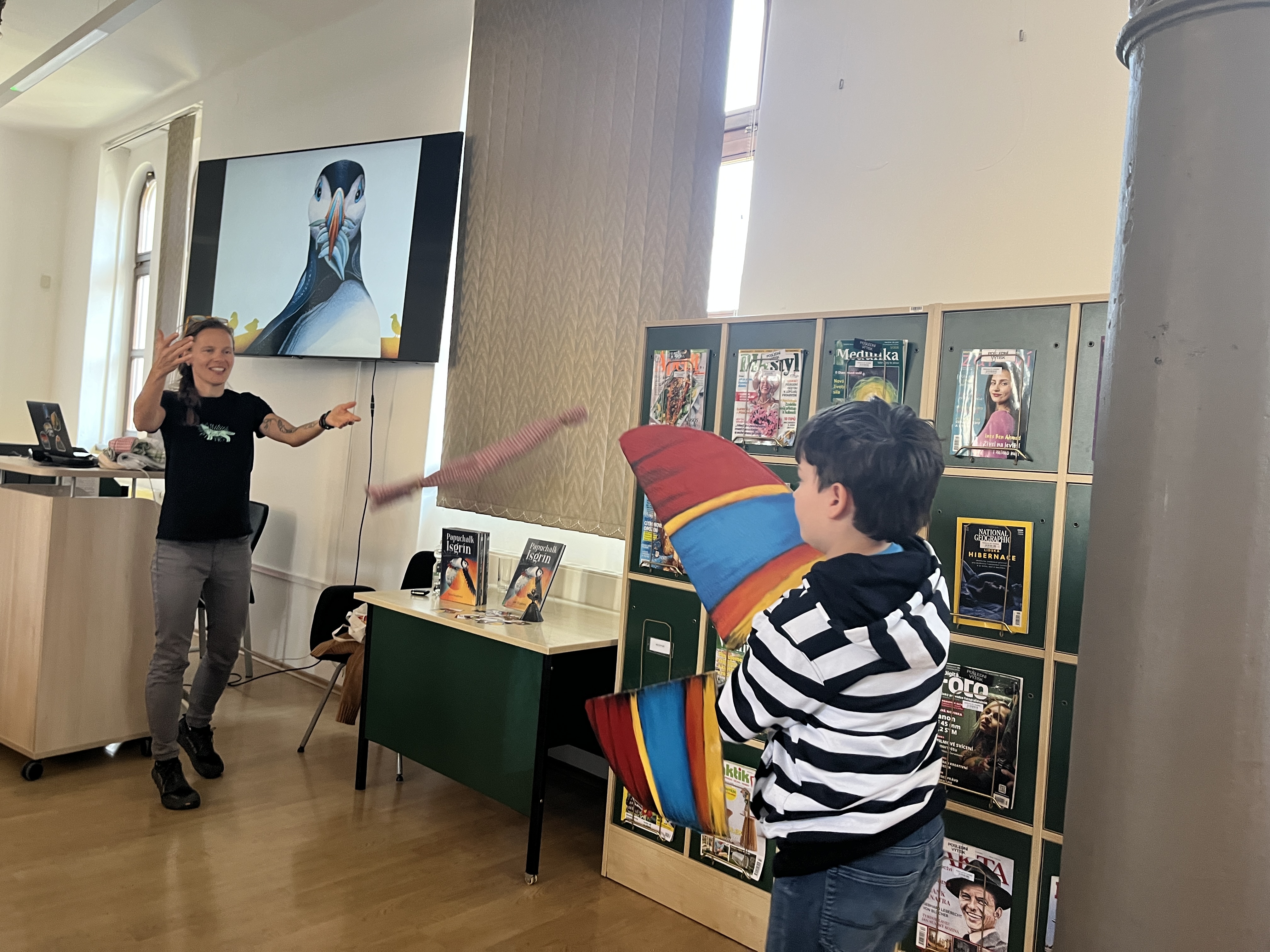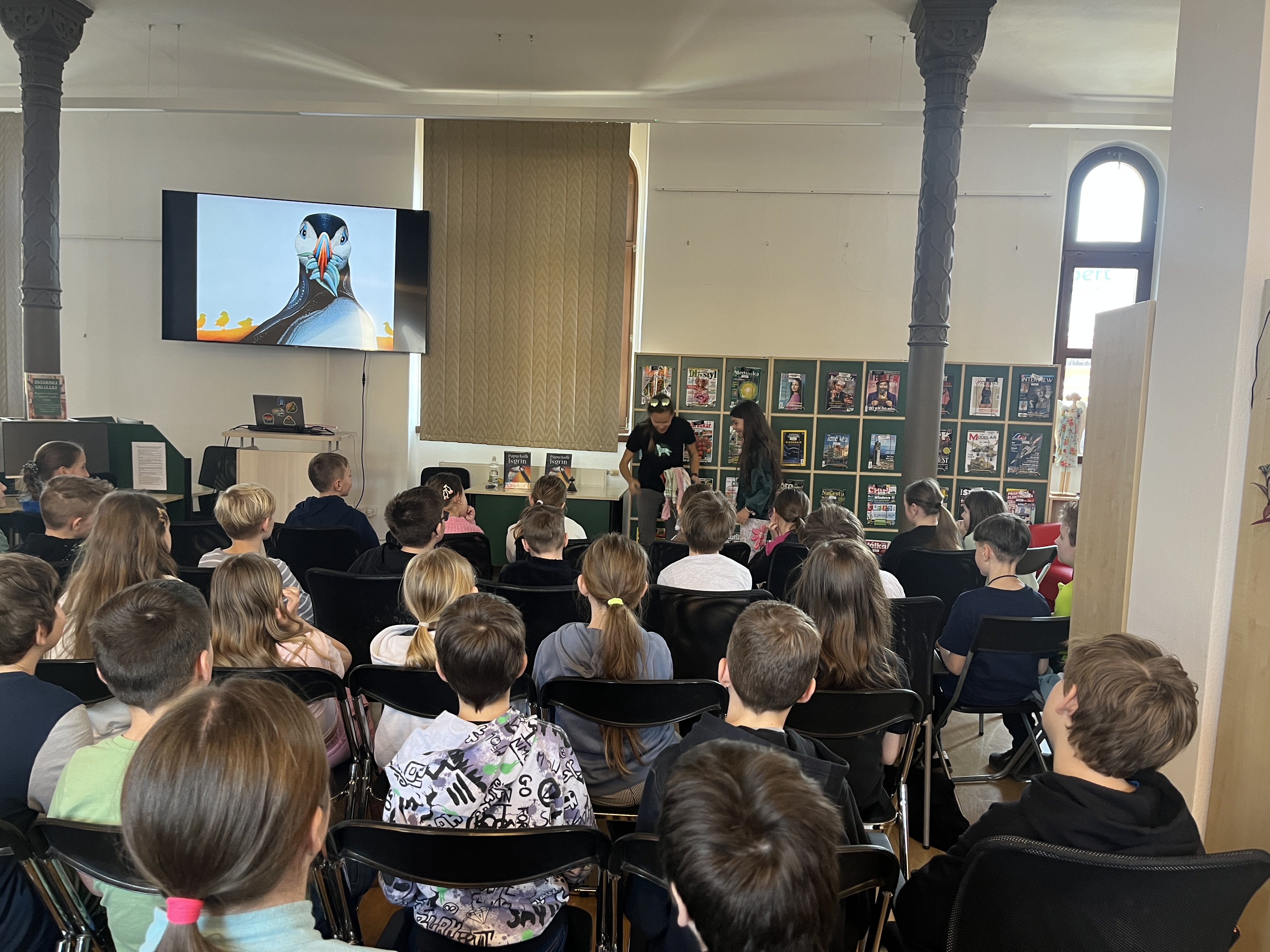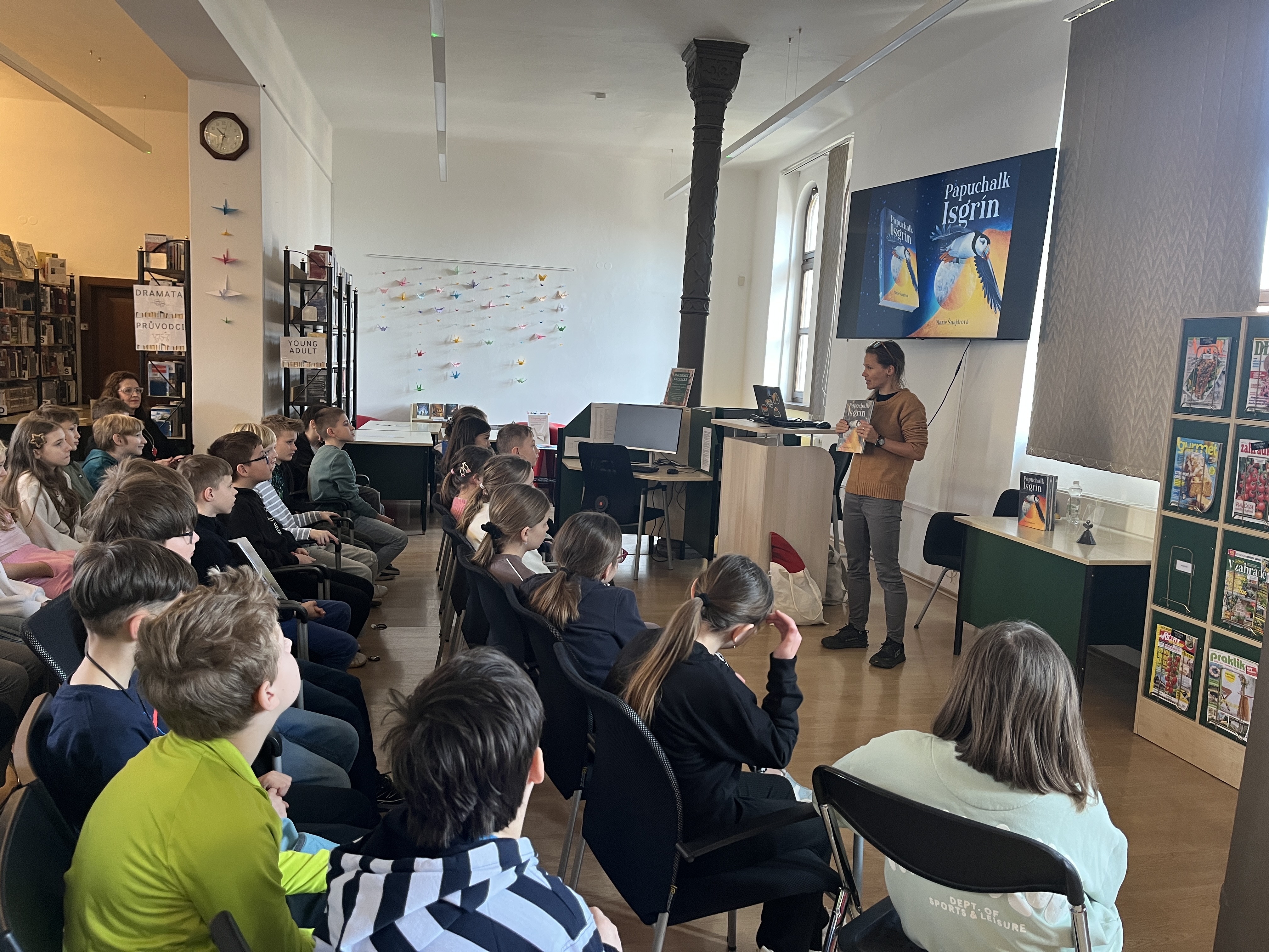 Do knihovny za malými čtenáři zavítala paní Marie Šnajdrová, autorka a ilustrátorka knihy Papuchalk Isgrín. Děti se dozvěděly spoustu informací o životě papuchalků a životě na Islandu, jak dlouho trvá napsat a nakreslit knížku a kolik dalších profesí je potřeba ke vzniku knihy.