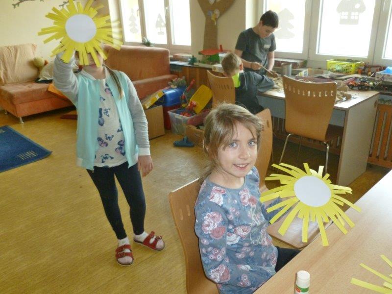 V těch pár dnech jsme pouze započali přípravu jarních a velikonočních dekorací. Na nástěnce je proto Mach s Šebestovou. Jejich kouzelné sluchátko nám jistě pomůže k rychlému návratu do zajetých kolejí. Z fotografie vás zdraví z našeho domova ostříhaná „kousavá kulička“. Na pěvecký kroužek čekají vypraná trička. Vidíte, jak je družina bez vás smutná? Moc se na všechny těší. Držím nám všem pěsti, ať se brzy ve zdraví sejdeme.