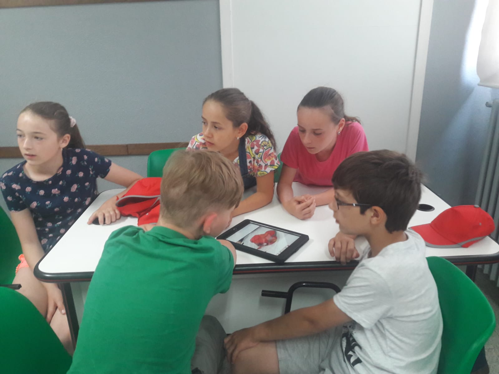 Po prohlídce školy následovala výuka. Pracovali jsme s tablety, naučili jsme se upravovat fotky, vytvořit elektronickou knihu, naprogramovat Blue-Bot robota a v rámci výuky Art zhotovit drobné výrobky.
