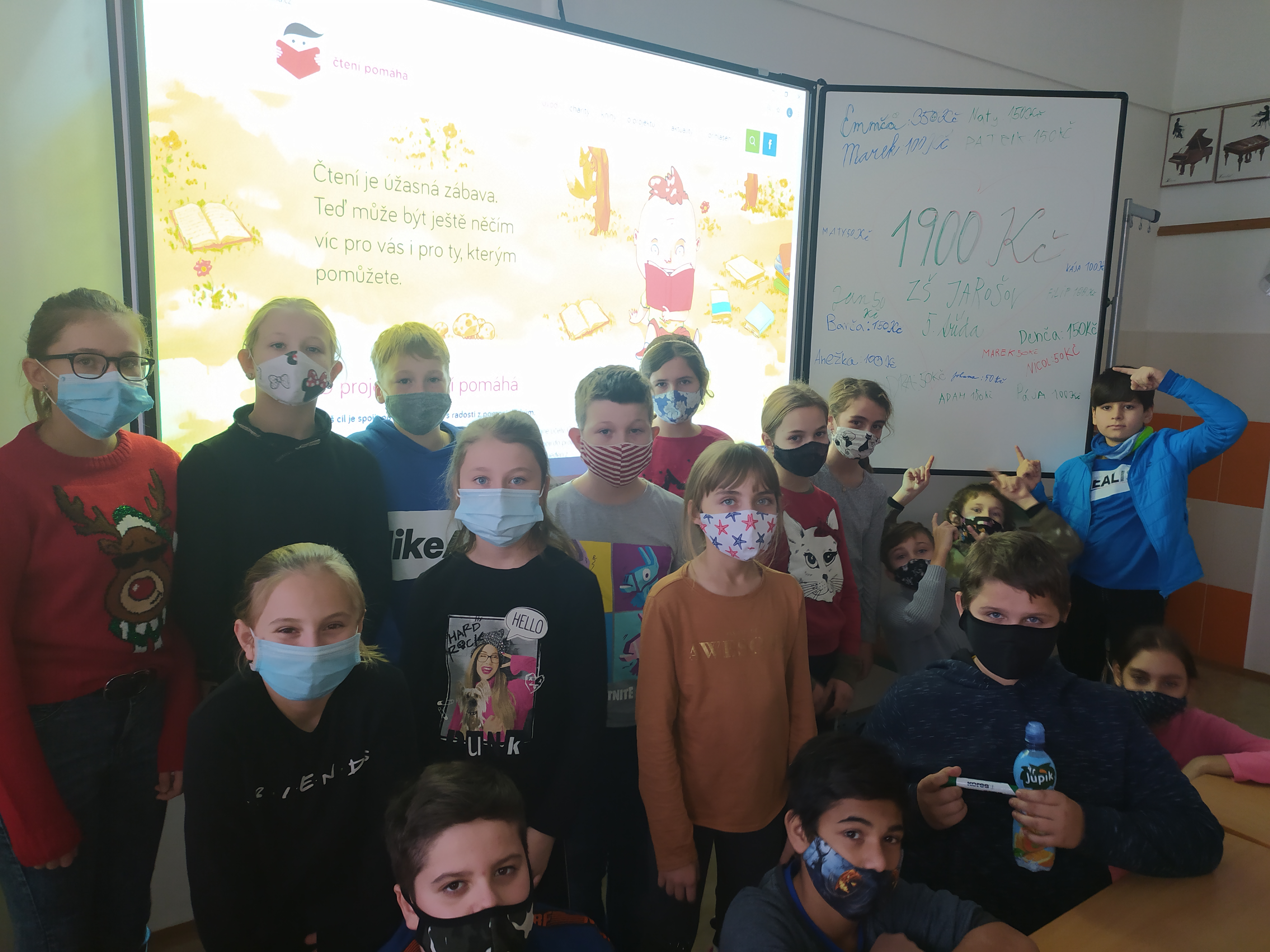 V úterý 1. prosince 2020 jsme se zapojili do charitativního projektu "Pomozte dětem". Sledovali jsme živé vysílání "Čteme pro Kuře". Páťáci se následně zaregistrovali do projektu "Čtení pomáhá". Cílem akce je spojit potěšení ze čtení s radostí z pomoci druhým, kdy dětští čtenáři rozhodují o tom, kdo pomoc obdrží. Po úspěšném vyplnění testu ke knize, kterou přečetli, získali kredit padesát korun a věnovali ho potřebným českým dětem.