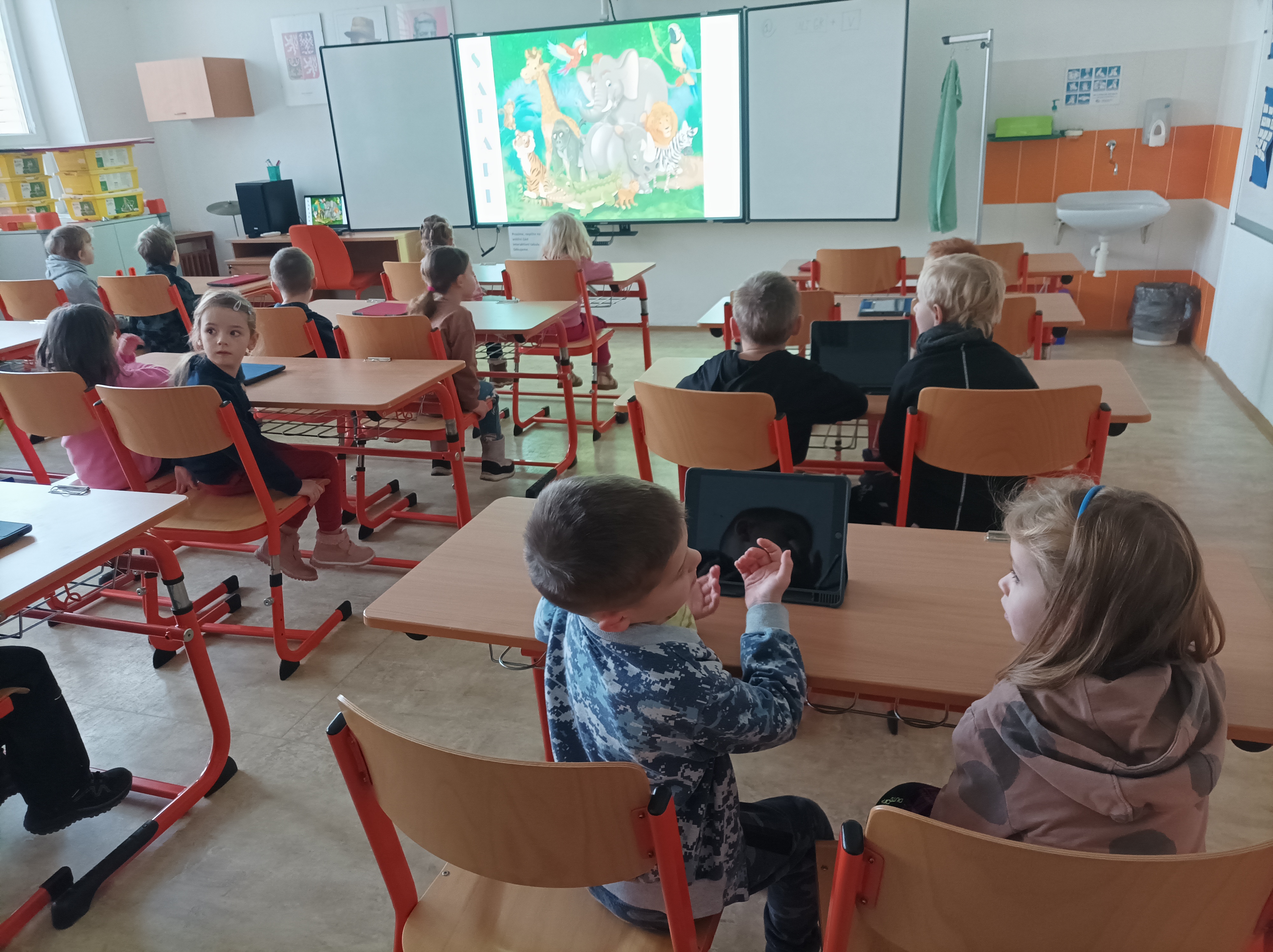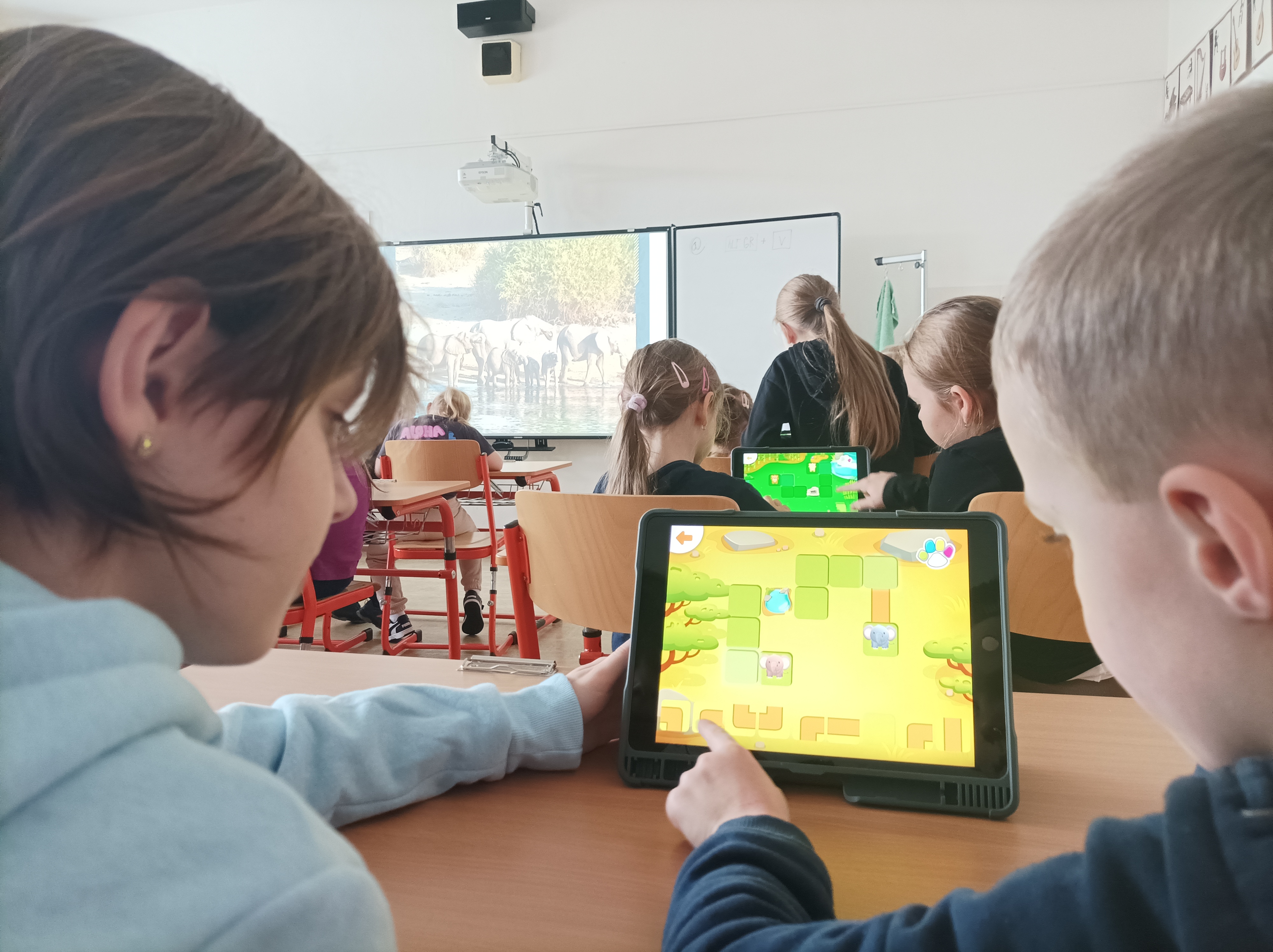 Spolupráce budoucích prvňáčků a jejich patronů pokračuje. Tentokrát přišli přeškoláčci za čtvrťáky do školy. Společně se vydali virtuálně do Safari a učili se se zvířátky základům programování.