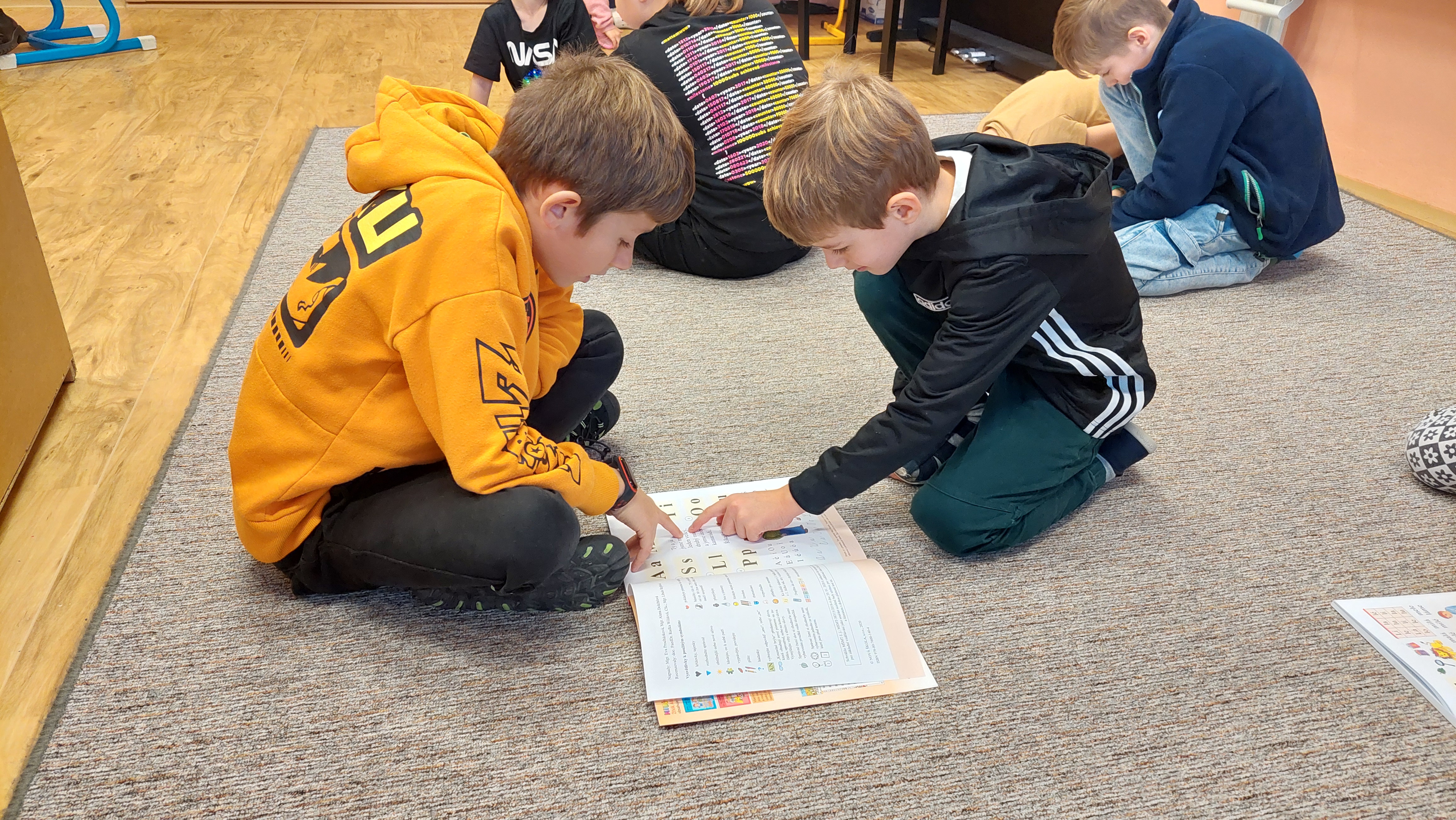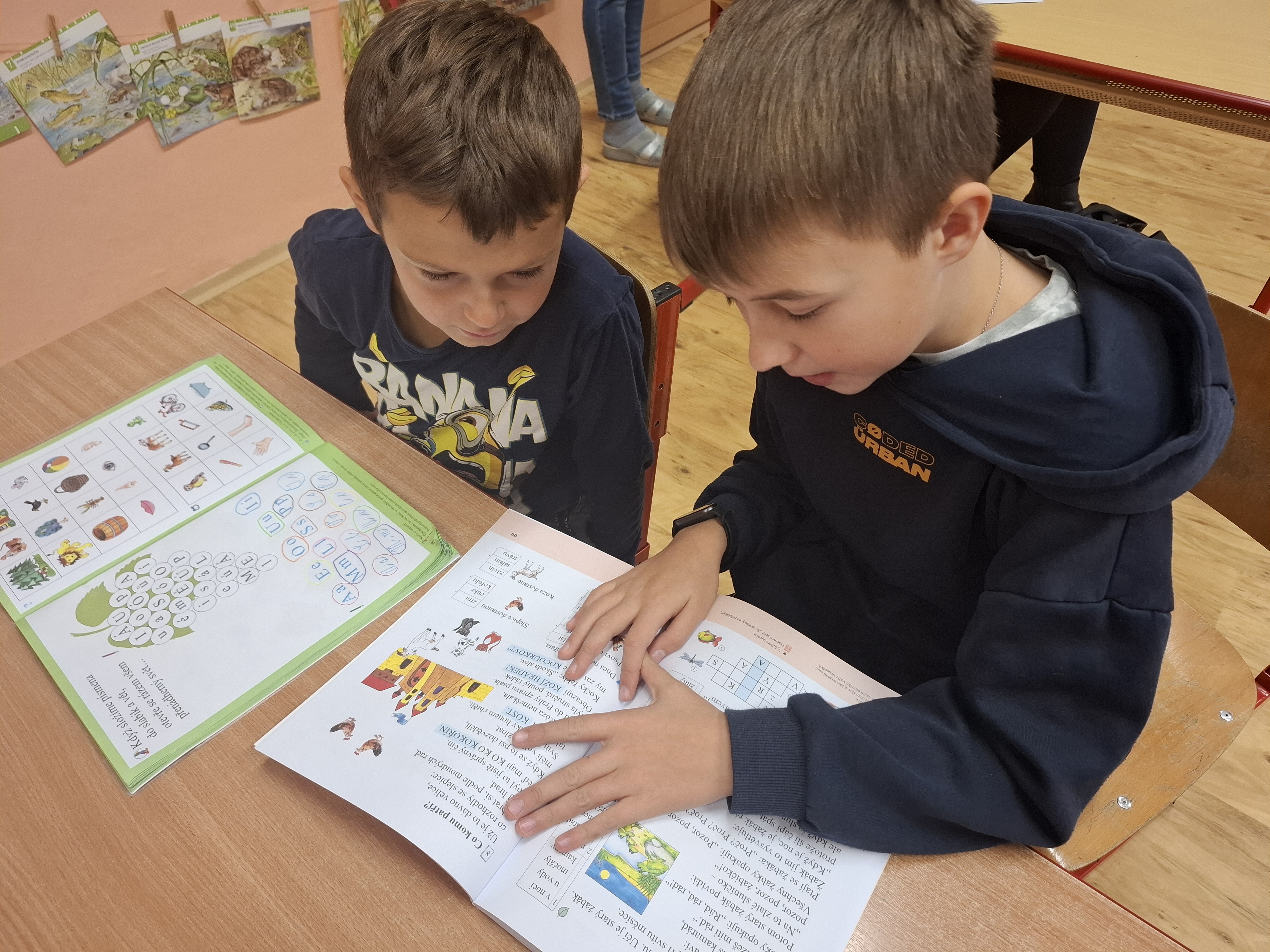 Prváčci s páťáky tak prožili příjemnou hodinu, společně nahlédli do nové knihy. Prváčci už ledacos dokáží přečíst. A co ještě ne, do toho se ochotně pustili zkušení patroni. Prváčkům přečetli několik příběhů, nejlepší prý byla "Popletená básnička". Popřáli jim hodně zdaru v dalším učení.