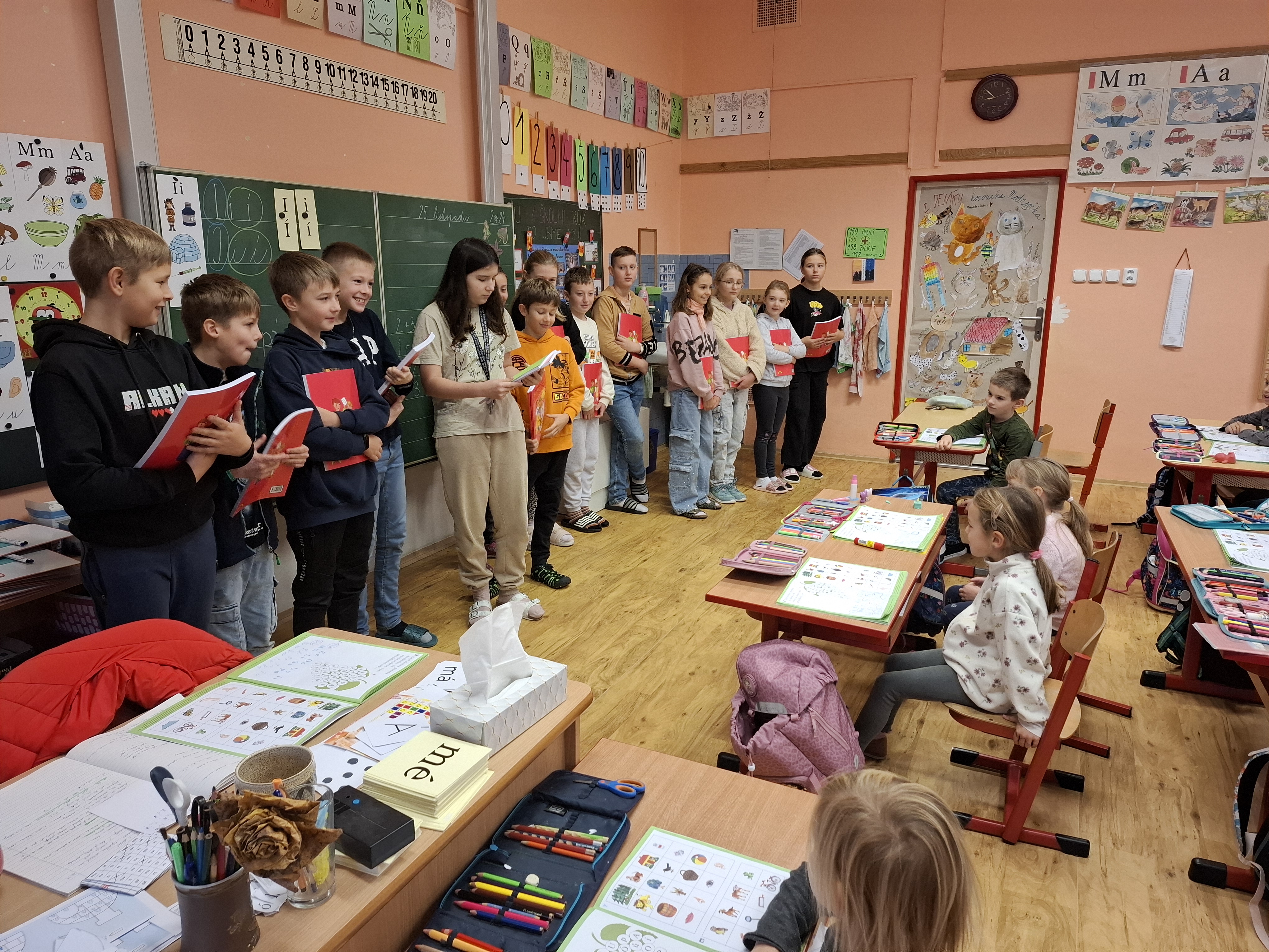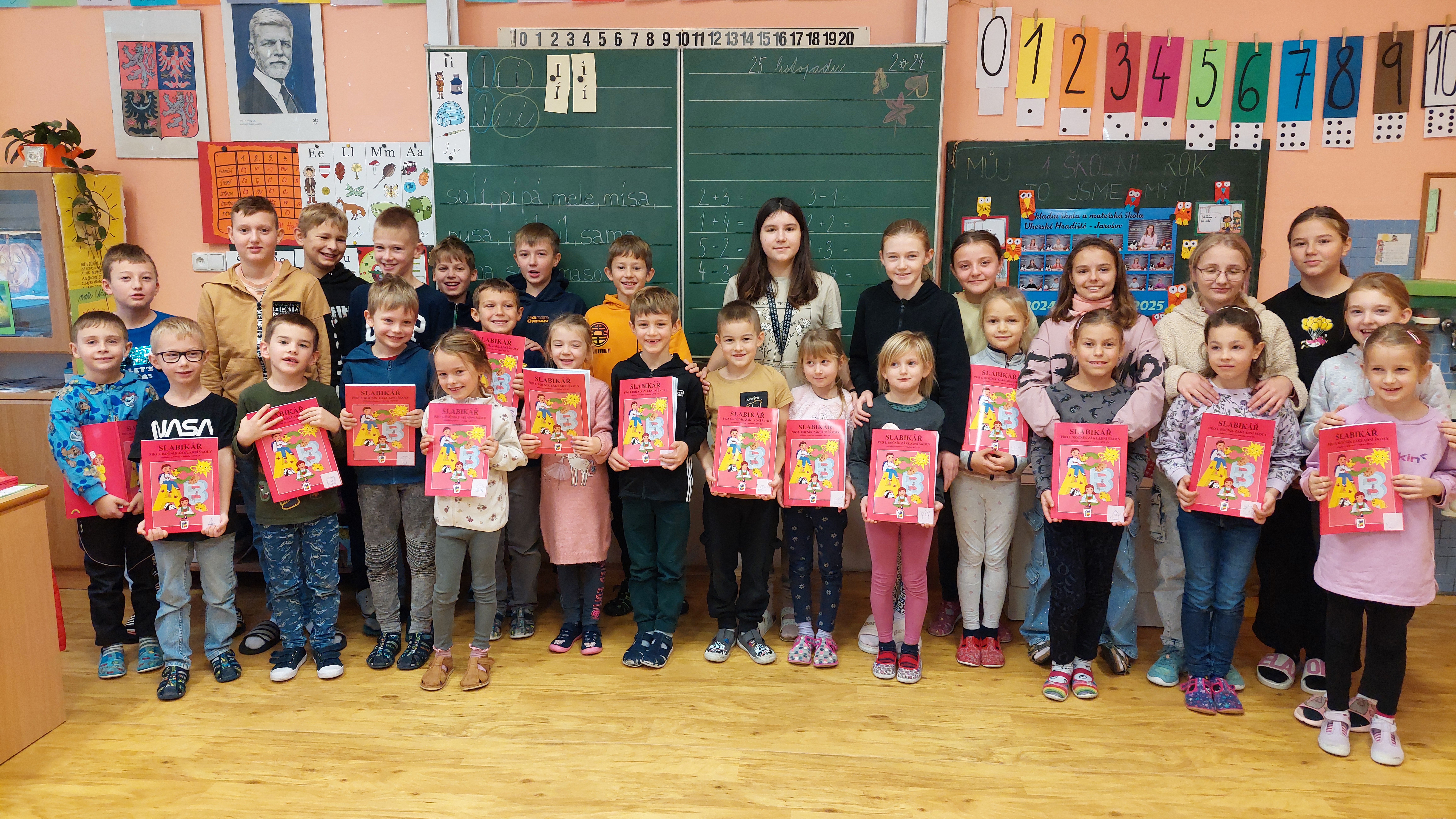 Pro prváčky nastal významný den. Přišli za nimi do třídy jejich patroni - páťáci. Ti jim nejprve zazpívali a pak už bylo pro naše nejmenší přichystáno velké překvapení. Každý dostal od svého patrona slabikář s milým věnováním.
