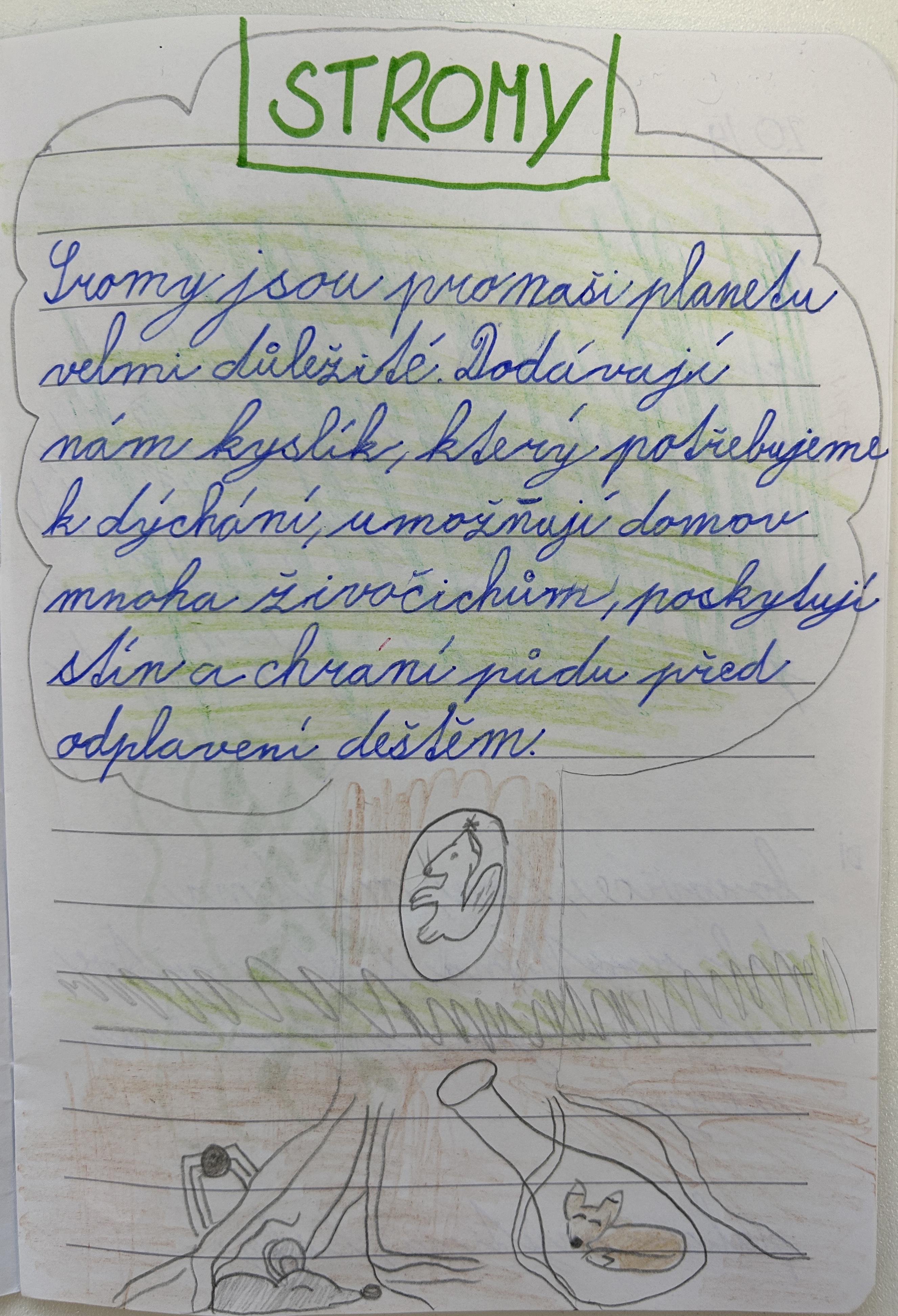 Projektový týden ke Dni stromů nás opět propojil s přírodou. Učili jsme se o tom, jak moc jsou pro nás stromy důležité a proč je musíme chránit. Už víme, že nám dávají kyslík, který potřebujeme k dýchání, umožňují domov mnoha zvířatům, poskytují stín v horkých dnech a chrání půdu před odplavením deštěm.