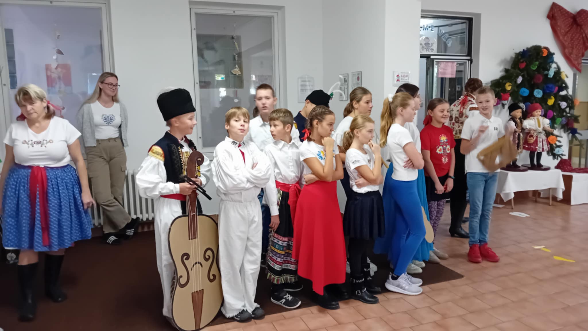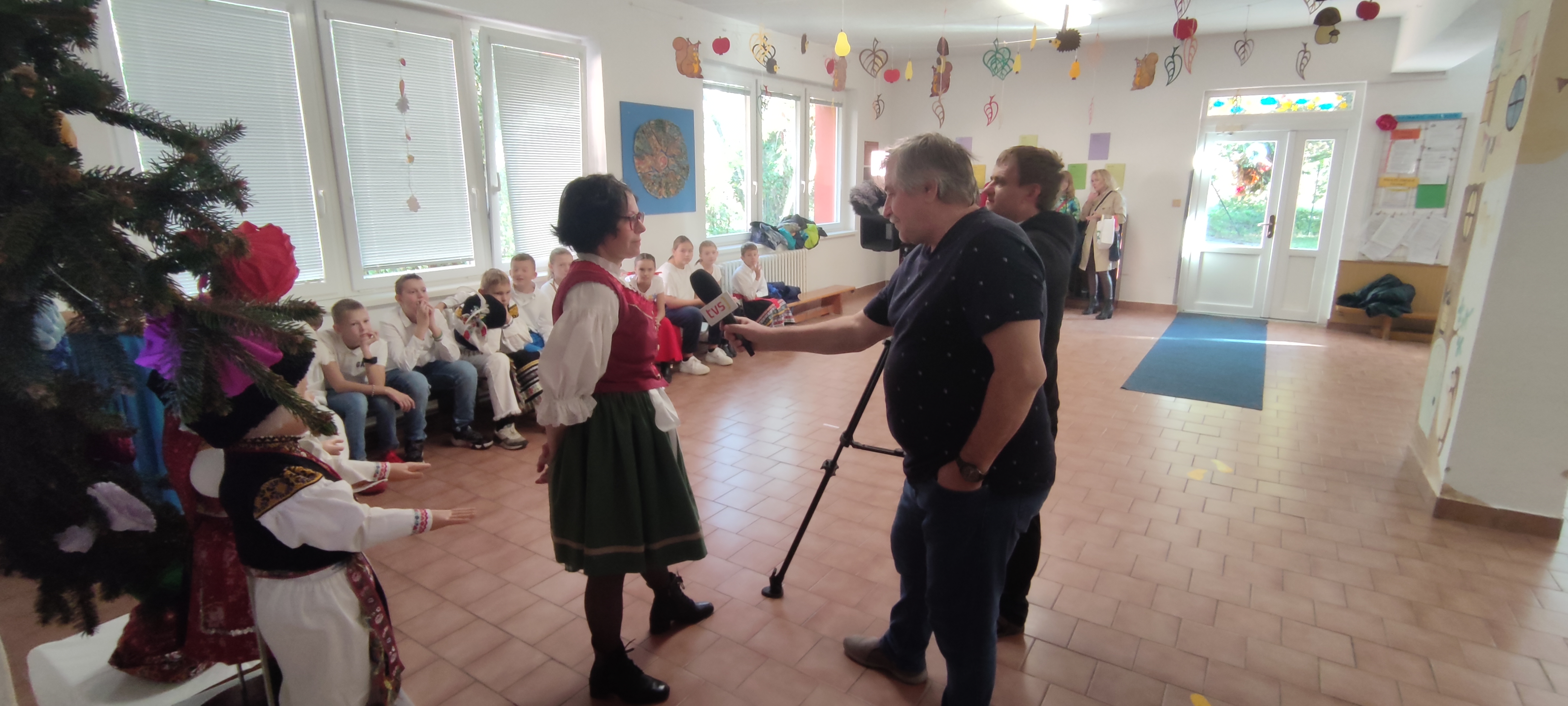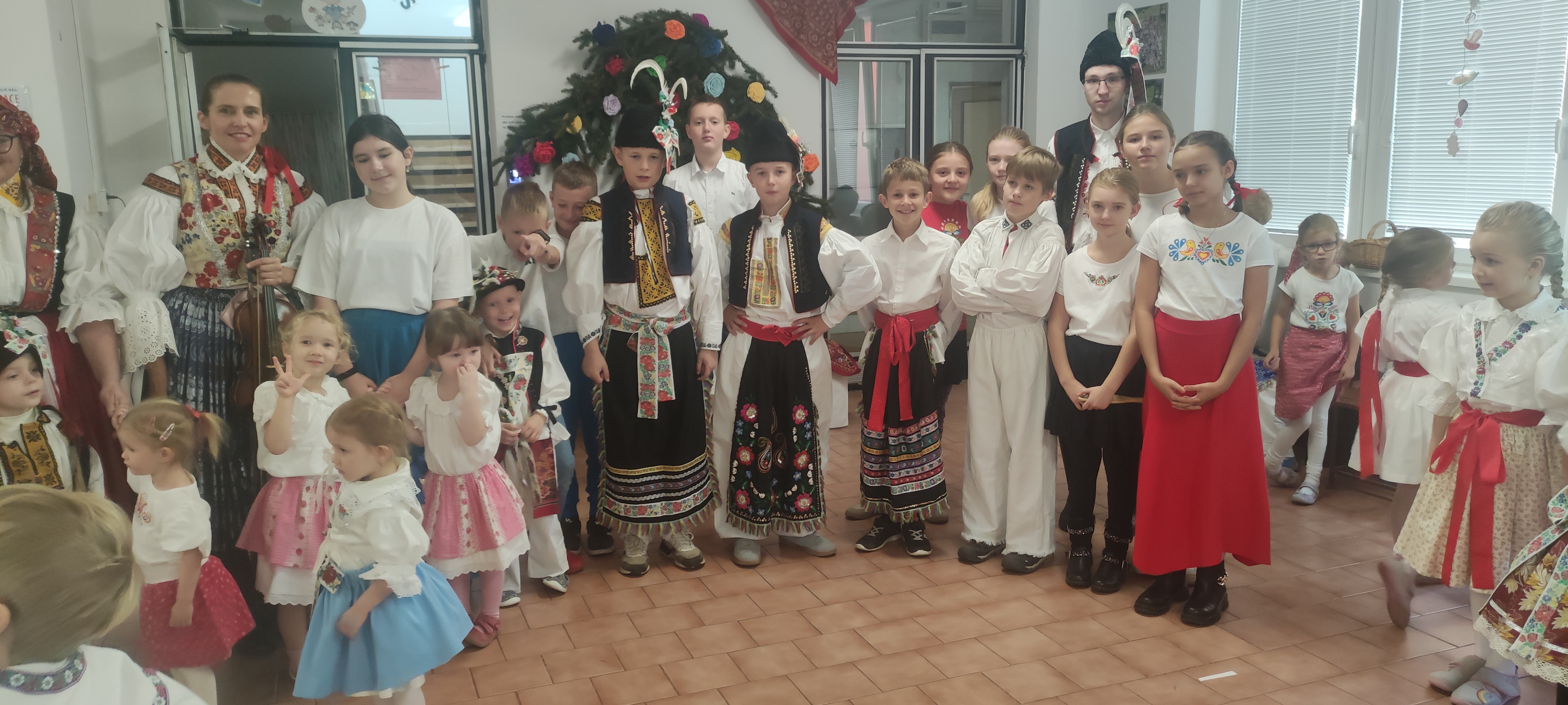 Všechny třídy od Zajíčků až po Myšky předvedly svá krásná vystoupení a naši páťáci je podpořili svým pěkným vystoupením pod vedením paní učitelky Jurečkové. Společně jsme si při písničce zazpívali, zatancovali a nutno dodat, že celou akci zdokumentovala i televize TVS v reportáži. Za rok se opět těšíme na udržování této pěkné tradice na našem Slovácku.