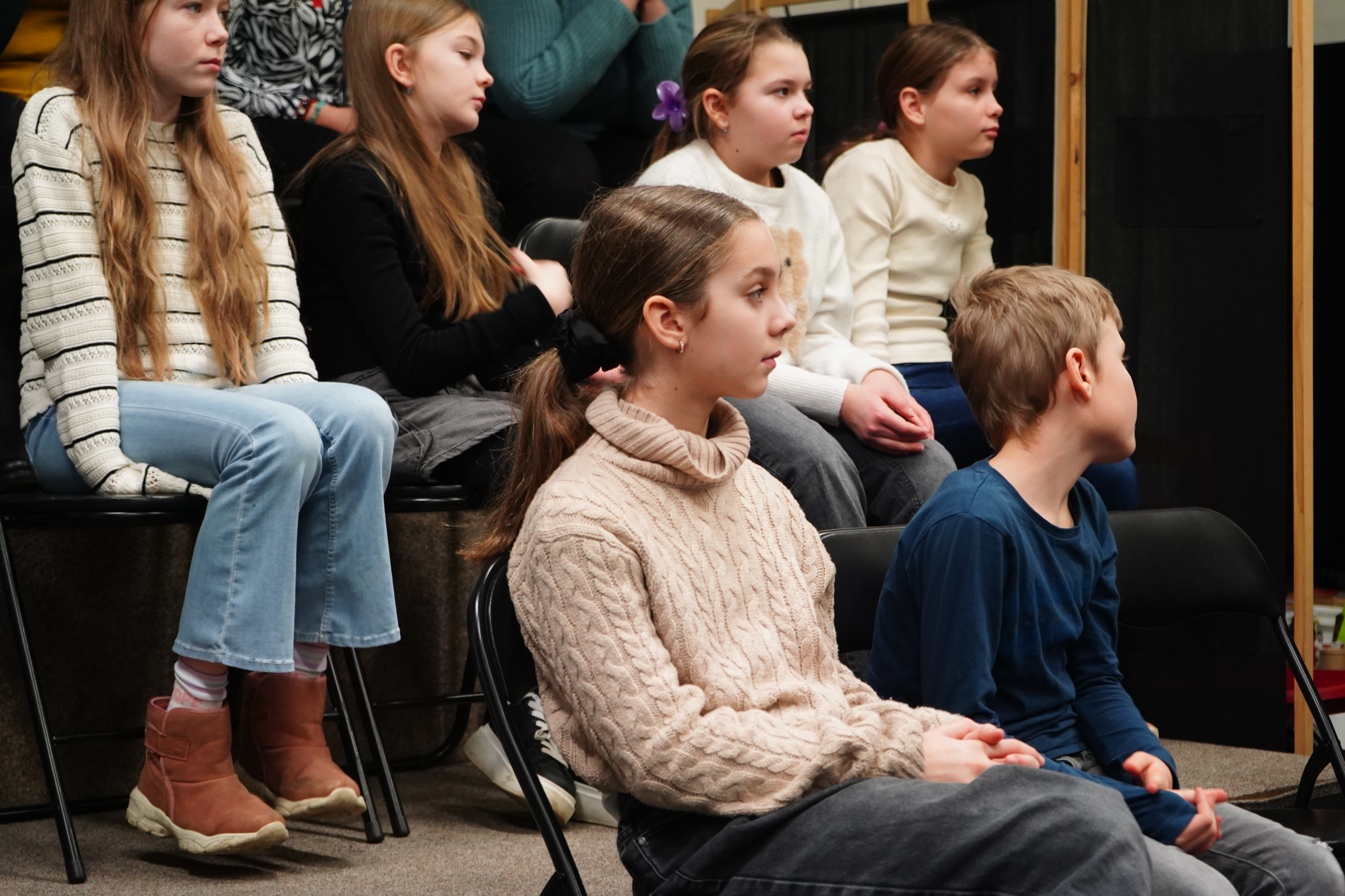 V Základní umělecké škole v Uherském Hradišti se žáci literárně-dramatického oboru připravovali na soutěž. Pozvali naši 5. třídu na generální zkoušku před svým soutěžním vystoupením, aby se ujistili, že dovedou svůj um předvést před publikem a zvládnou pracovat s vlastní trémou.