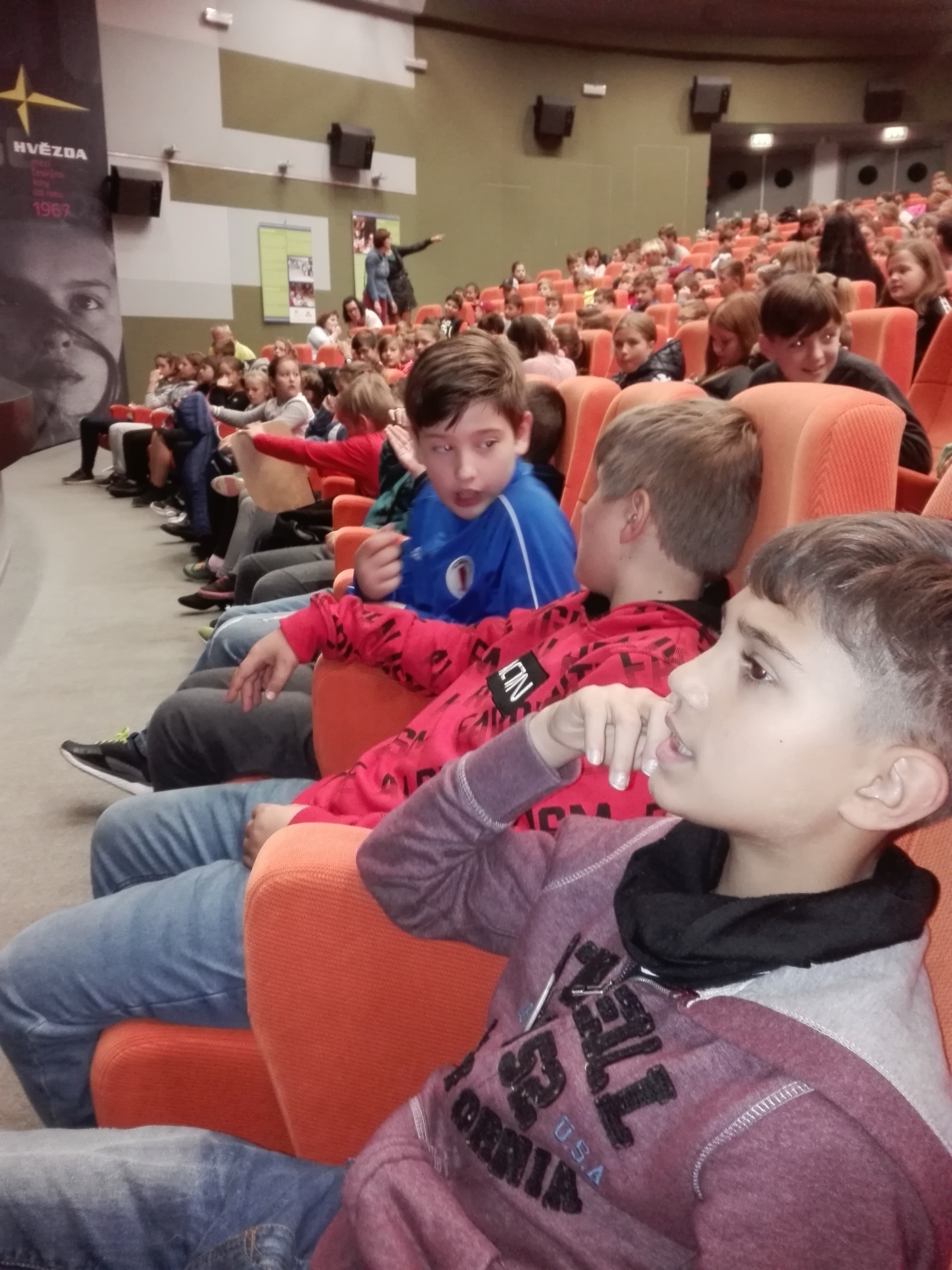 Nebuď blbá!!!... Vážně se chceš zvěčnit takhle?...Jediná fotka ti může zničit budoucnost..... Na internetu soukromí neexistuje... Všechny fotky jsou zneužitelné!!!...To jsou motta, se kterými do Uherského Hradiště přijeli mladí herci z Gymnázia Turnov a svým vystoupením přiblížili problematiku našim páťákům problematiku šikany a kyberšikany. Děkujeme ICM Uherské Hradiště za pozvání.
