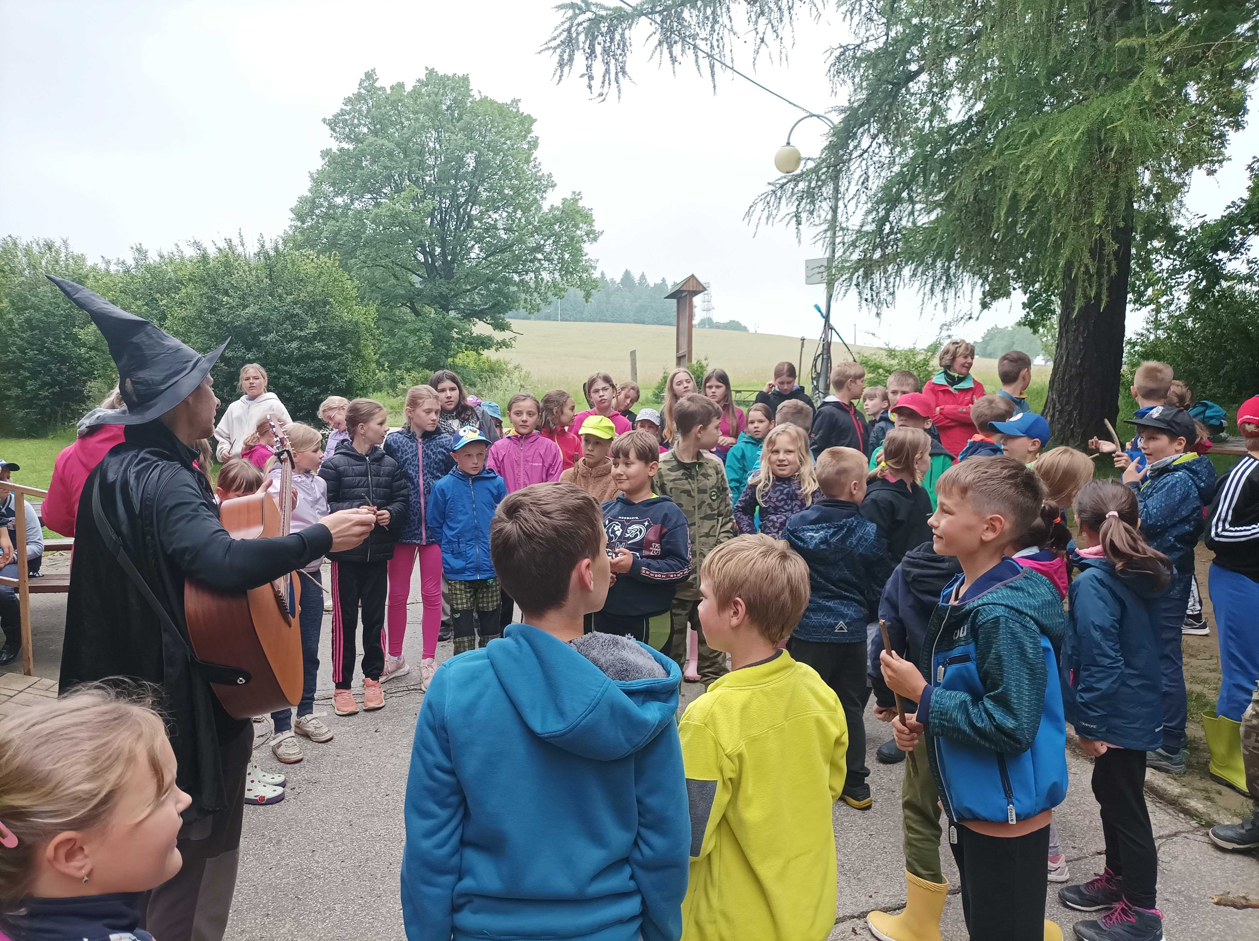 Překážková dráha s košťaty a prostě všechno možné.