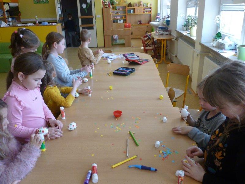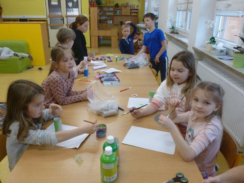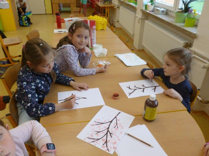 Hned z kraje měsíce jsme připravili sovičky pro budoucí školáky k jejich zápisu. Máme rádi tradice a celému měsíci vévodilo jaro a velikonoce v různých podobách. Tvořili jsme tulipány, ptáčky, zajíčky, kraslice. Vyškrabávali jsme, malovali, vyráběli z toaletních ruliček. Někteří turisté opět ve třídě stanovali. Společně s paní asistentkou jsme oslavili její narozeniny. Z horní družinky se několikrát linula úžasná vůně, když se pustili do pečení zdravých sušenek. Cvičili jsme venku i v tělocvičně, hodně si hráli. Zvládli jsme i starost o bylinkové truhlíky.