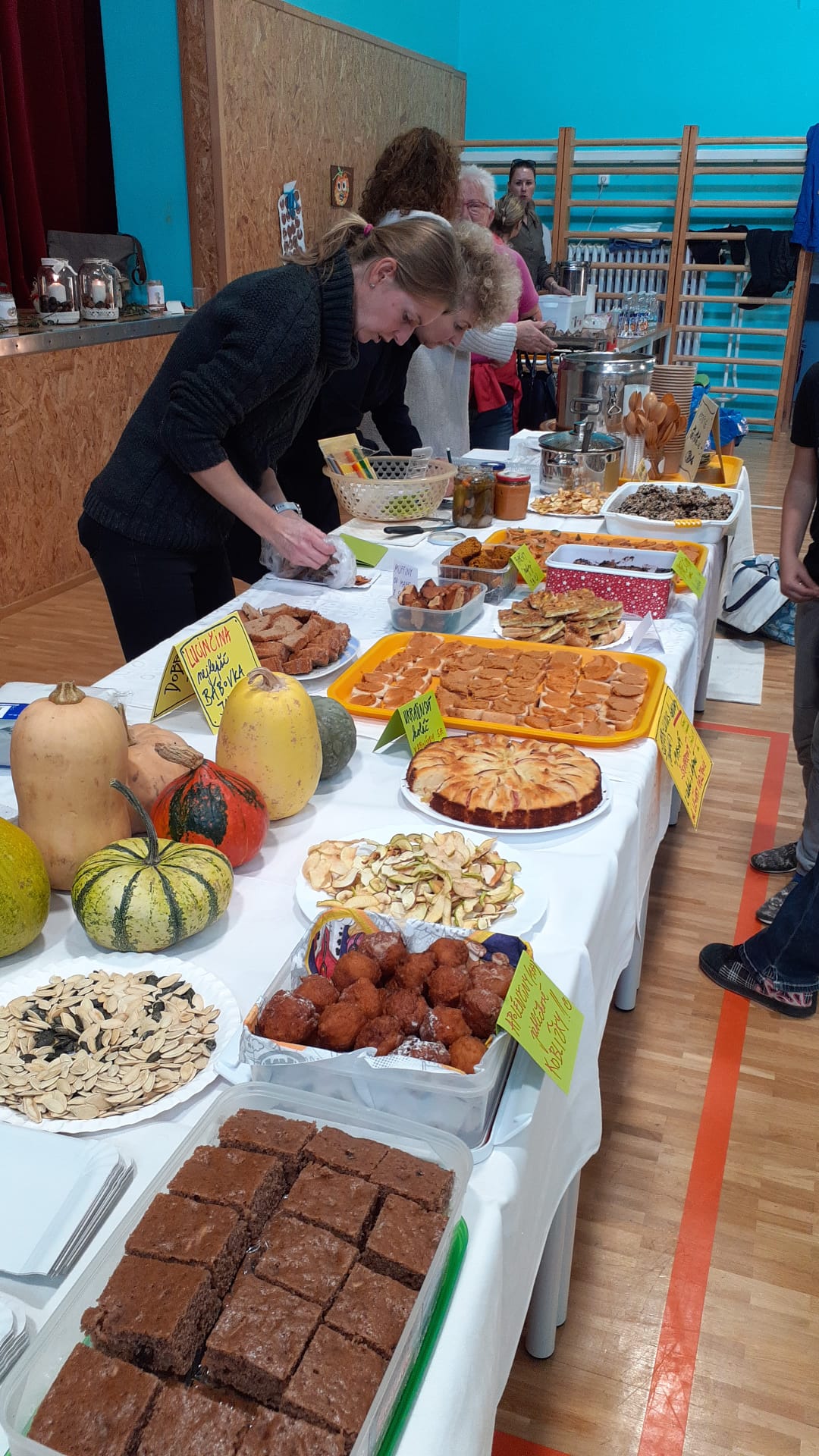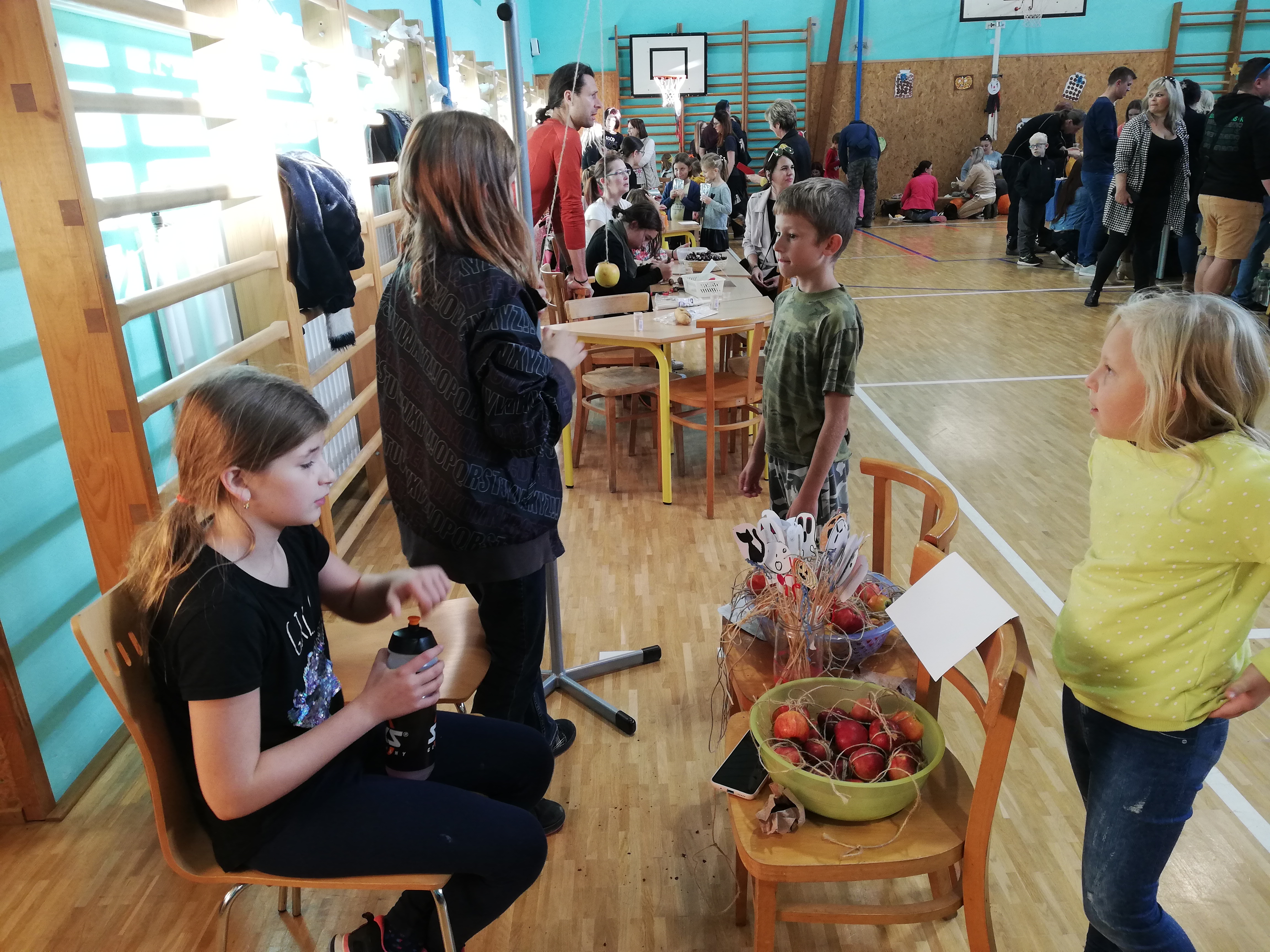 Celá akce proběhla ve "strašidelně" vyzdobené tělocvičně, kde si návštěvníci mohli vyřezat a nazdobit dýňové strašáky, vyrobit razítka z brambor, zvířátka z kaštanů a jiných přírodnin. Během celého odpoledne všichni společně ochutnávali z dýňového "fast foodu", který byl obohacen mnoha výbornými dýňovými recepty.Nádherné dýně, které nám zdobí školní chodby, si rodiče i žáci rozsvítili na večerní strašidelné prohlídce školy. Tímto děkujeme všem dětem, maminkám, tatínkům, babičkám i dědečkům za upečení a navaření nejrůznějších specialit a za příjemně strávené odpoledne.