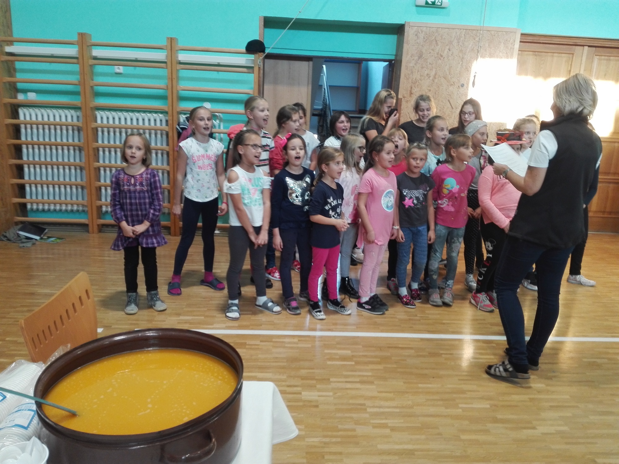 Akci zkrášlily svými zvučnými hlasy naše "zpěvule", program byl obohacen o soutěž o nejlepší dýni, páťáci uspořádali ochutnávku naslepo a všichni zúčastnění mohli zanechat u nás svou stopu na papírovém stromě - otisk bramborového razítka. Třešinkou na dortu byla tradiční ochutnávka: dýňová polévka, džus z dýní, pečená dýně, dýňová bábovka, dýňová zmrzlina, horká dýně...Každý si přišel na své...