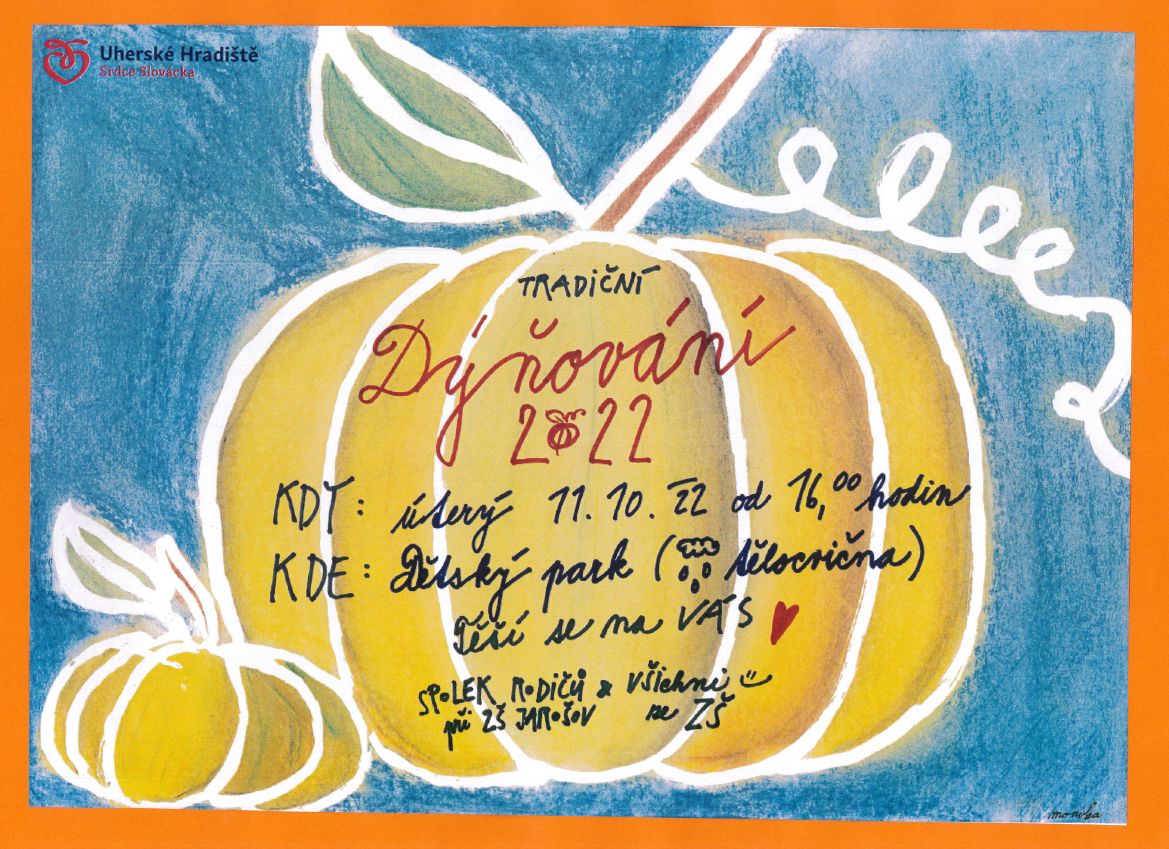 Zveme Vás na tradiční Dýňování, které se uskuteční v úterý 11. října 2022 od 16 hodin v Dětské parku naší školy (v případě nepříznivého počasí v tělocvičně).