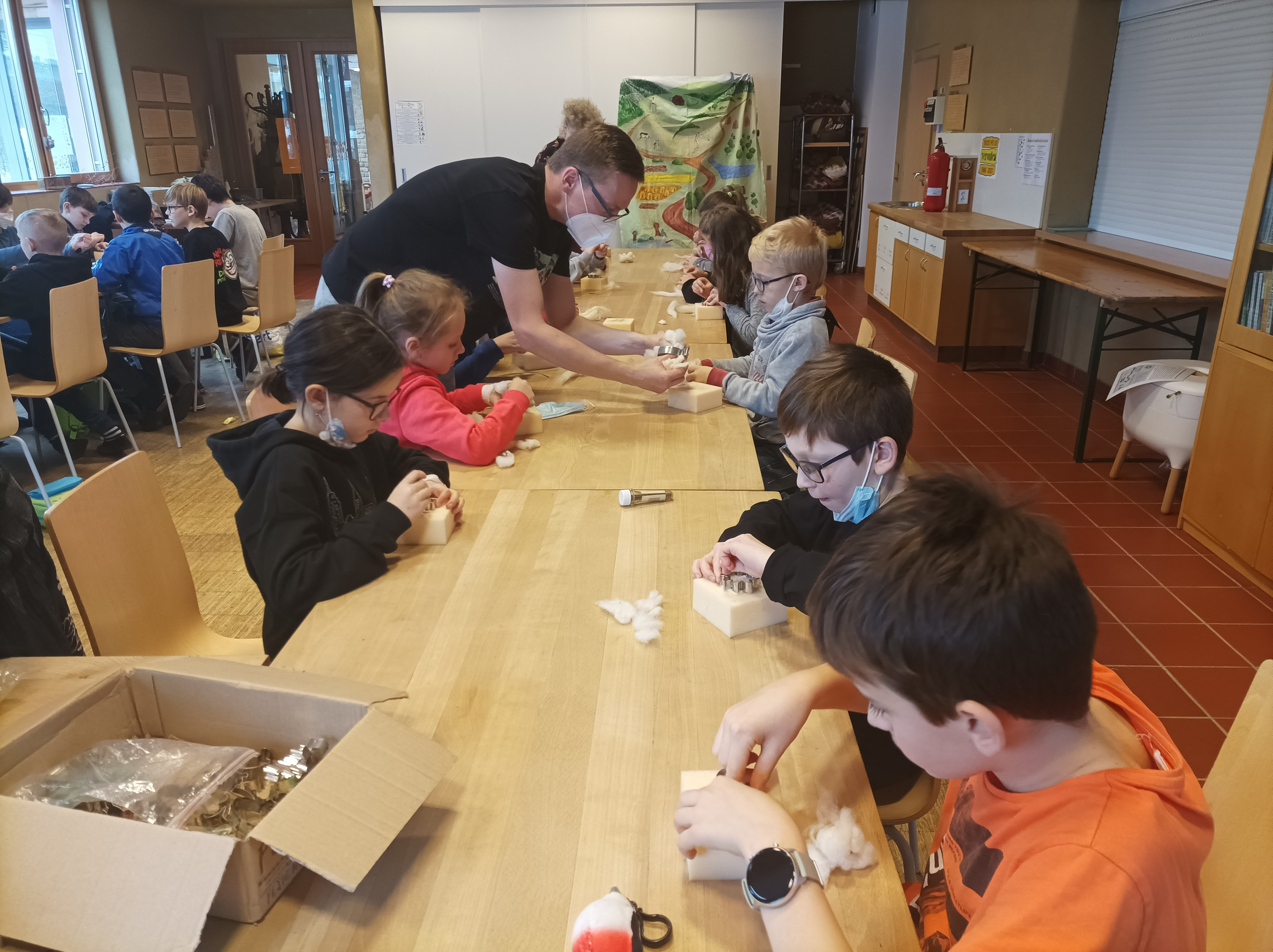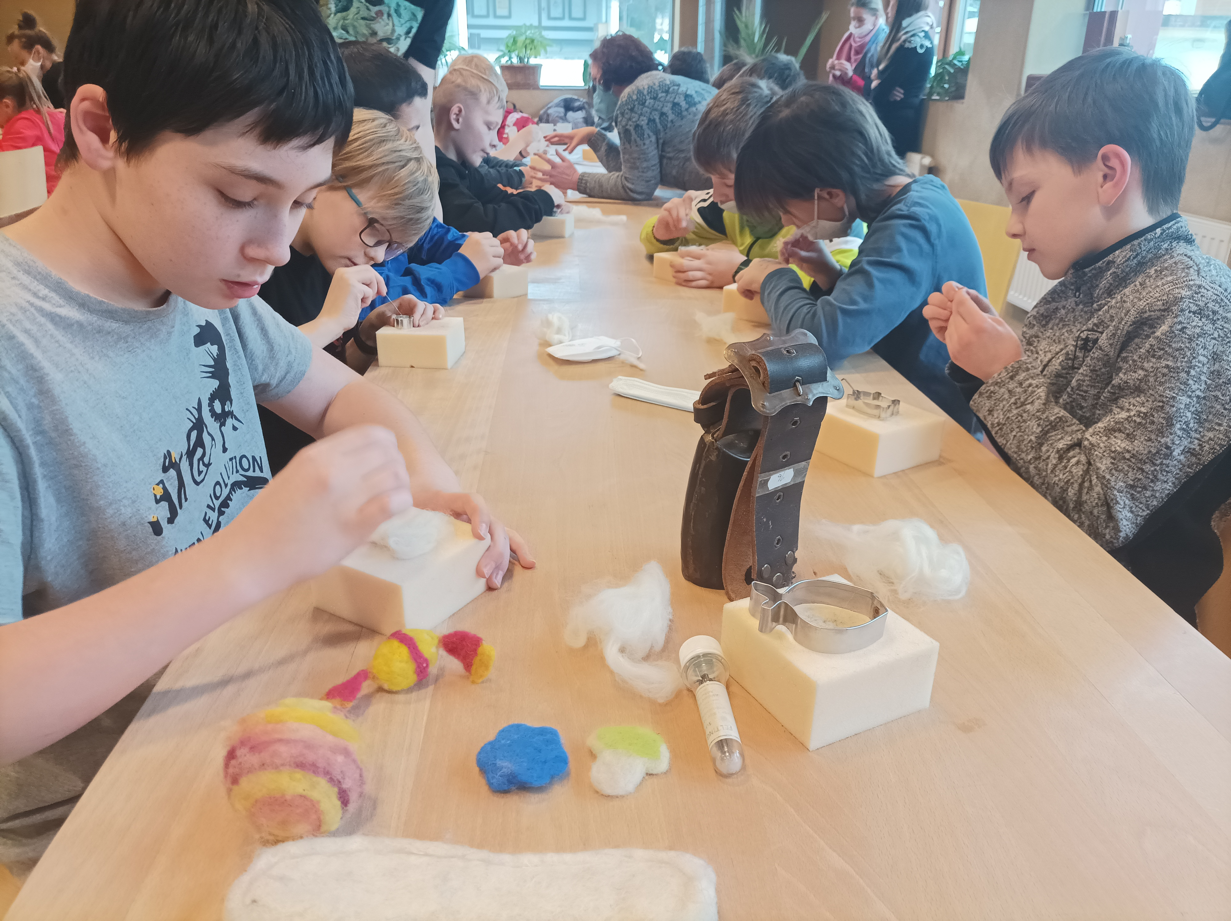 Přesunuli jsme se v čase do dob dřívějších, dozvěděli jsme se spoustu zajímavostí o zaniklých řemeslech, dokonce osahali nástroje tehdy používané. Také jsme se naučili novou metodu - plstění. Každý si dokázal vyrobit nějakou maličkost právě tímto způsobem (i když popíchaných prstů bylo hodně, výrobky se podařily). Chutné biomošty byly příjemným zpestřením tohoto dopoledne. Ač byla zima a sad okolo centra Veronica spíše spal, byla zde k vidění například hliněná pec a stará funkční dřevěná sušárna na ovoce.