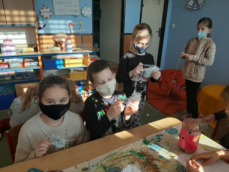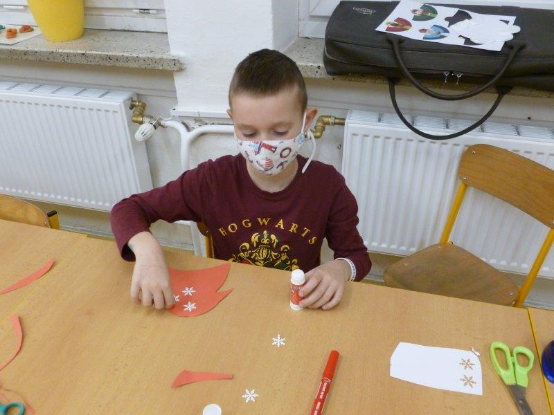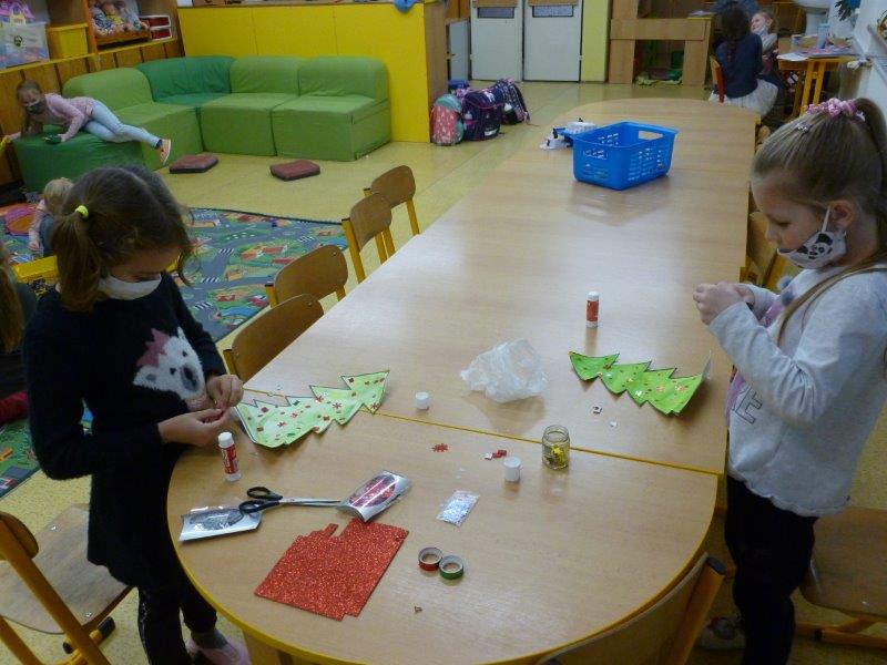 A jak jsme si krátili čekání na Vánoce v družince? Měsíc jsme začali přípravou na Mikuláše – výrobou papírových postaviček. V dalších dnech jsme především zdobili třídy i chodby Paní Zimou, stromečky, andílky, svícny a různými dekoracemi.