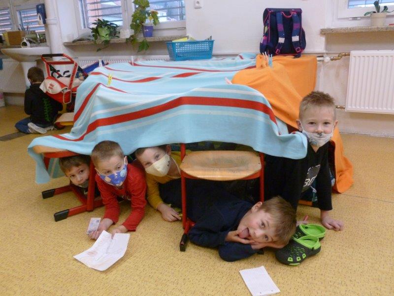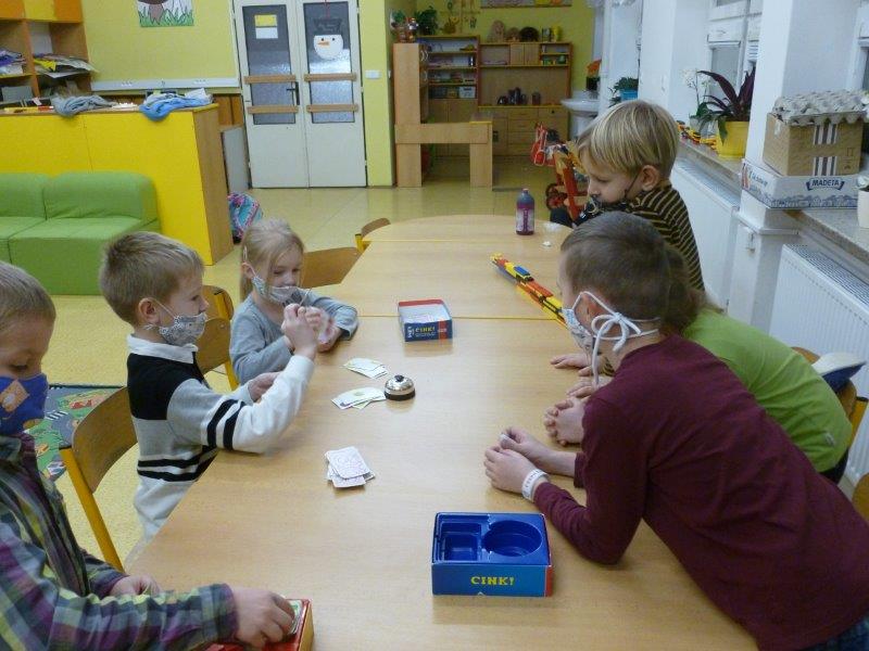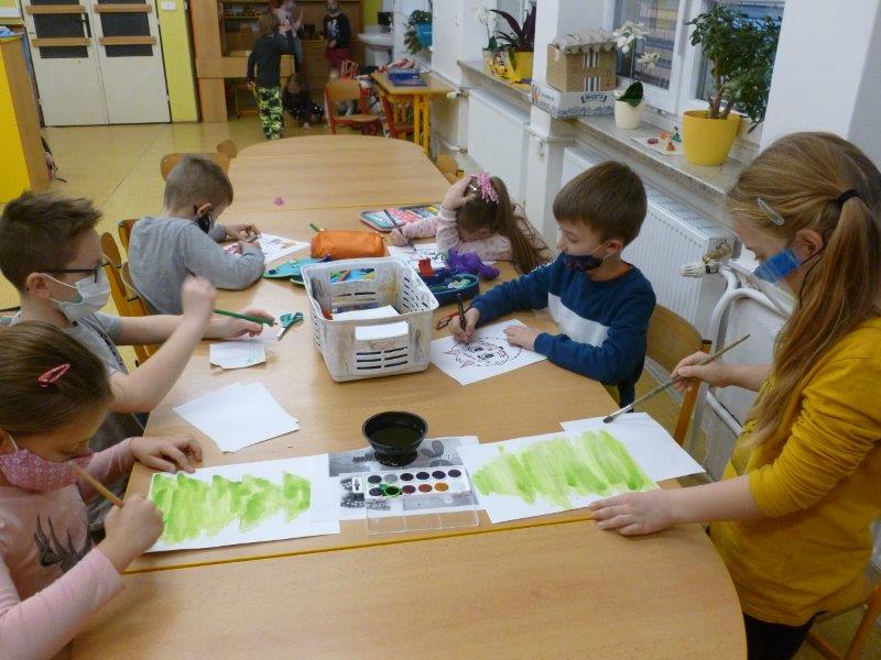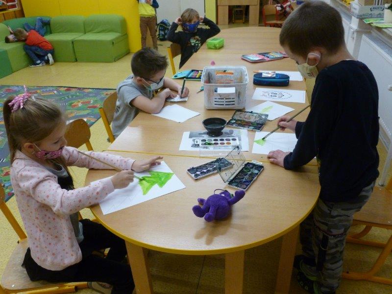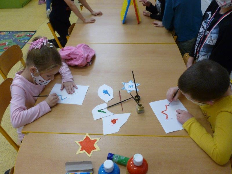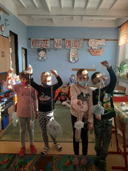 Kromě toho jsme zvládli umotat vločky z vlny, malovat stromky, stavět si domečky, hrát si hry v tělocvičně i provětrávat se venku.