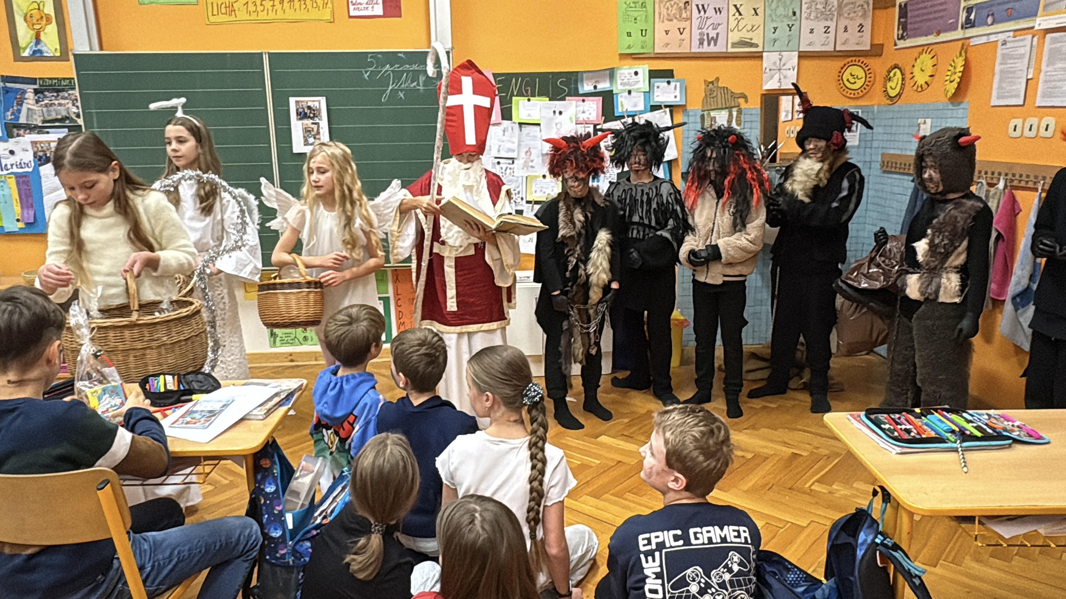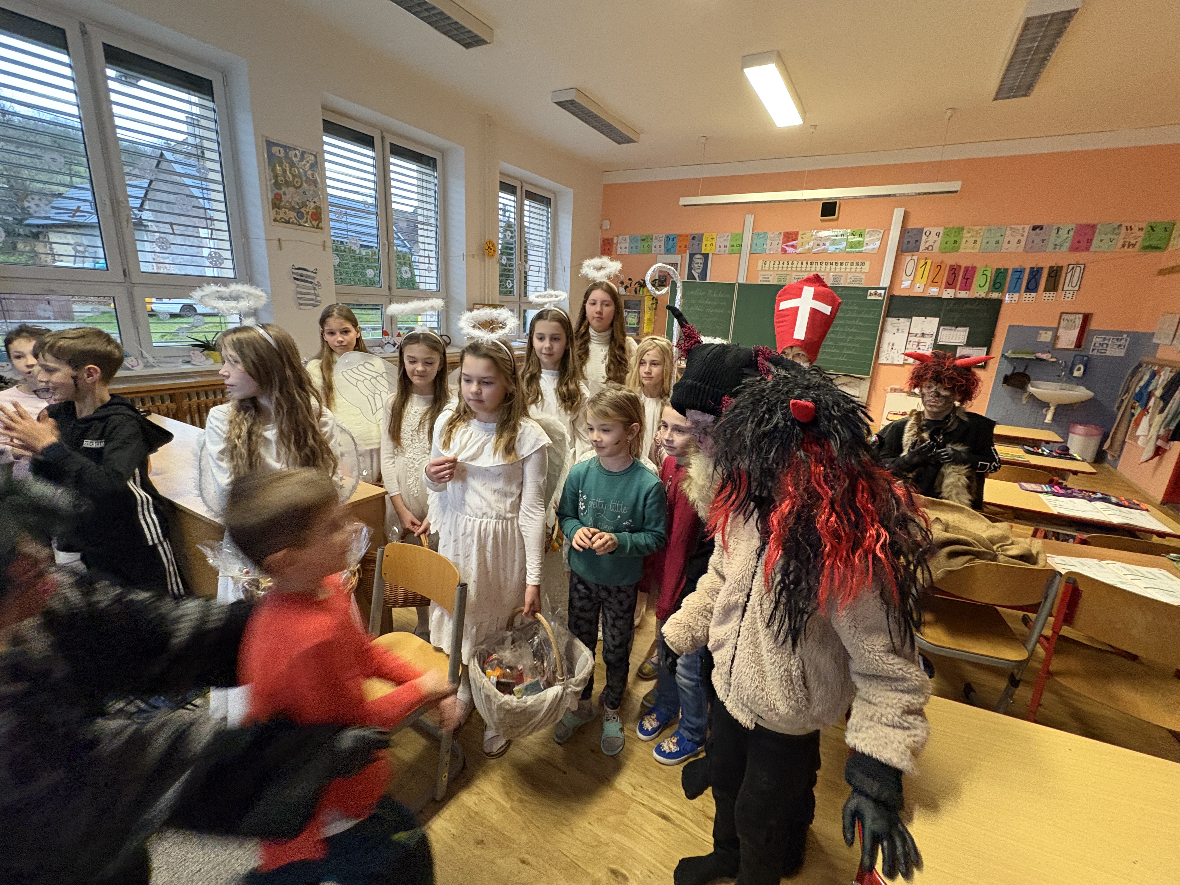 V pátek 5. prosince bylo ve škole cítit napětí. Přijde Mikuláš? Bude mít s sebou i čerta? Někteří se trochu báli, jiní se zase na překvapení těšili.
