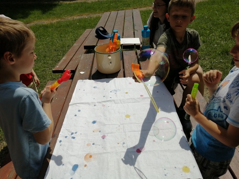 Hráli jsme různé hry, potom jsme šili měšce, do kterých se davají stříbrňáky. Pak jsme zdobili bublifuky vlajku. Odpoledne jsme měli muzikoterapii s prváčky. Pán tam hrál na didgeridoo, moc se mi to líbilo a užila jsem si to. Po večeři učitelky zapálili ohniště a opékali jsme špekáčky, ohřáli jsme se a pak jsme šli na stezku odvahy. Bylo to boží, trochu jsem se bála, ale moc jsem si to užila. Po stezce odvahy jsme všichni dostali vaky s nápisem K🙂PÁNKY 2021.