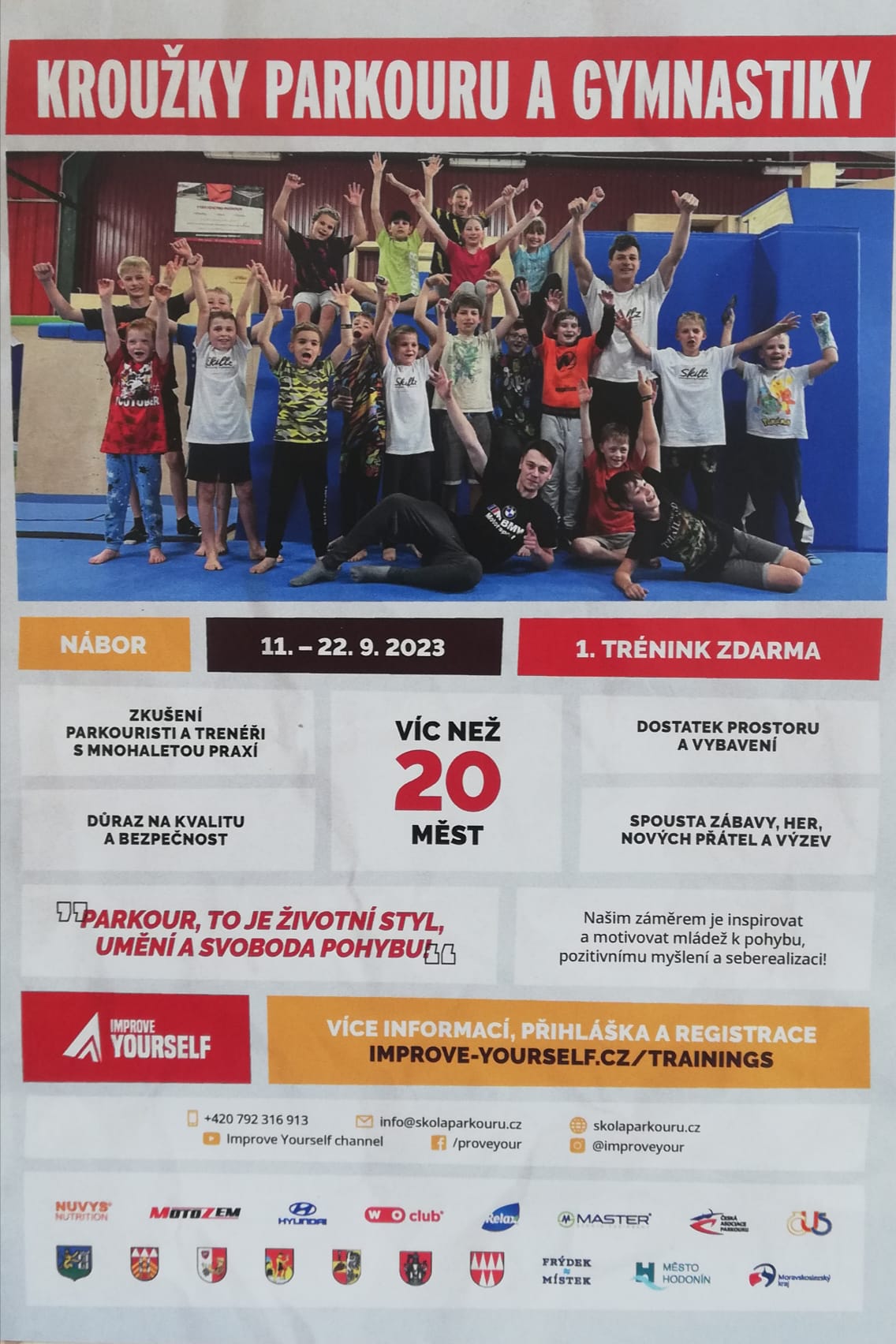 V naší škole proběhla ukázková lekce parkouru se zkušenými trenéry. Zájemci tohoto nevšedního sportu se můžou přijít v září podívat na ukázkovou hodinu do Sokolovny v Uherském Hradišti. Více informaci naleznou děti na stránkách www.skolaparkouru.cz.