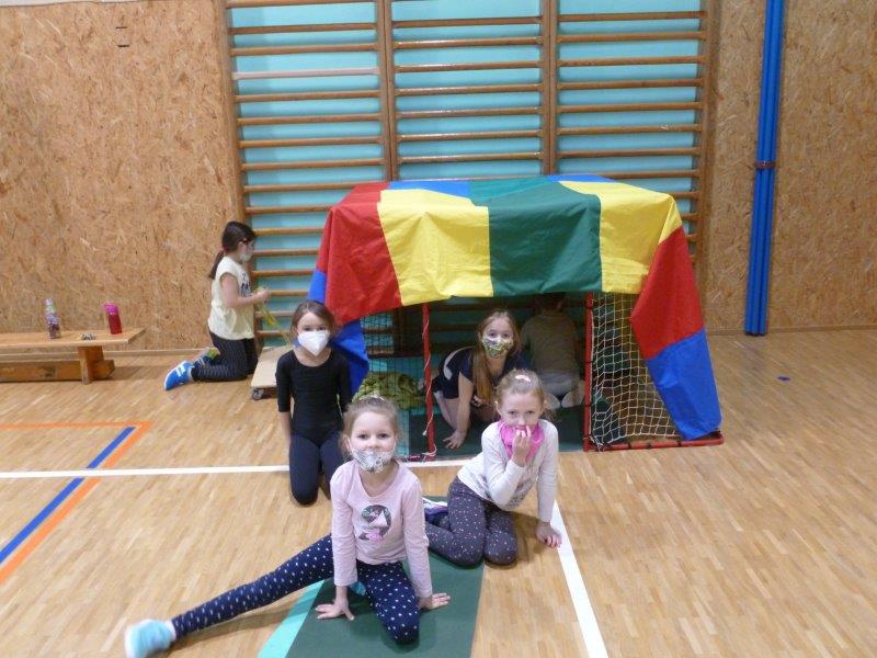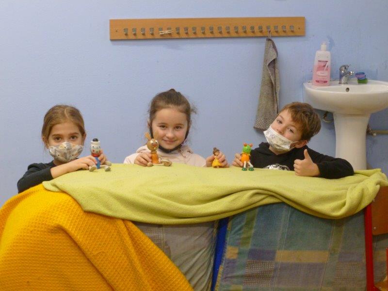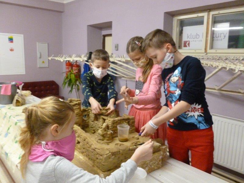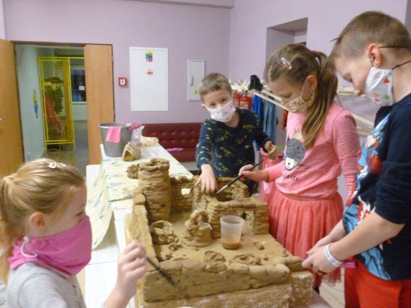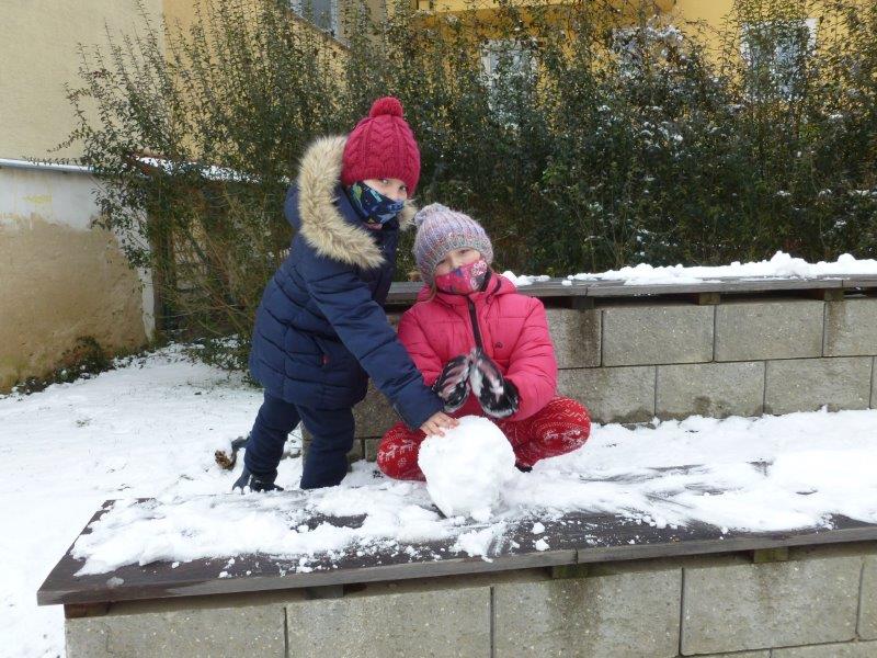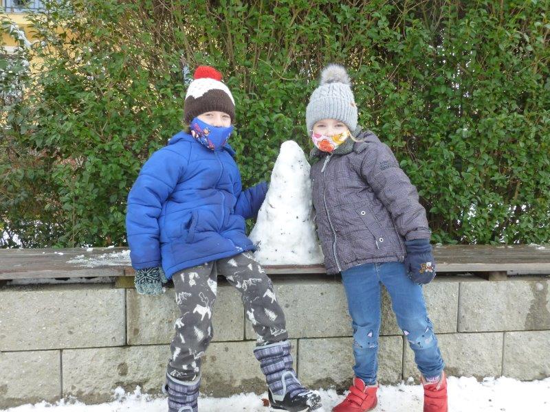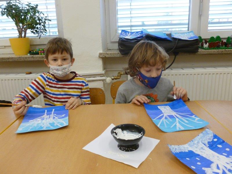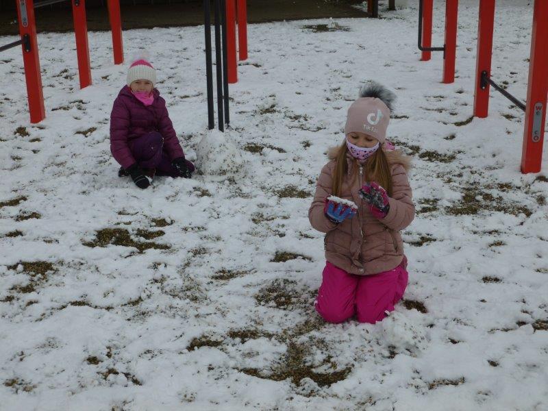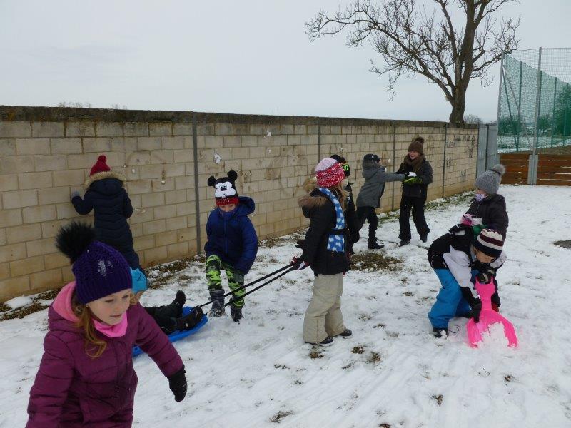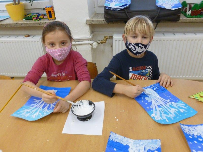 Počasí bylo skutečně lednové, mohli jsme si užívat hry na sněhu. Ty mokré kalhoty byly od zimního fotbalu a bobování. Také jsme vytvořili spoustu pěkných výrobků. Zimní slunce malované křídou, brusle, zasněžený strom, čepice a rukavice nebo práce na hliněném hradu. Často jsme se chodili protáhnout a vyřádit do tělocvičny. Zde je spoustu materiálu i pro stavbu domečků. V našem improvizovaném divadle jsme si zahráli pohádku. Společně s pololetním vysvědčením jsme vyhodnotili a odměnili tři nejlepší v naší „úsměvové“ soutěži.
