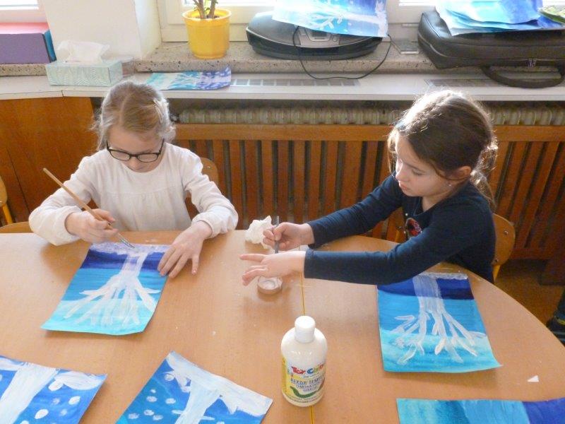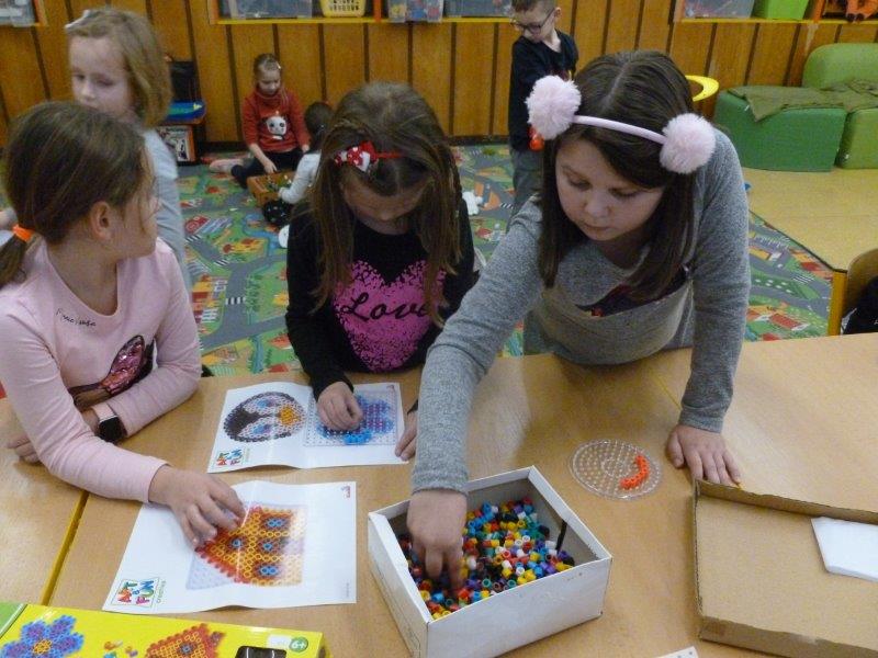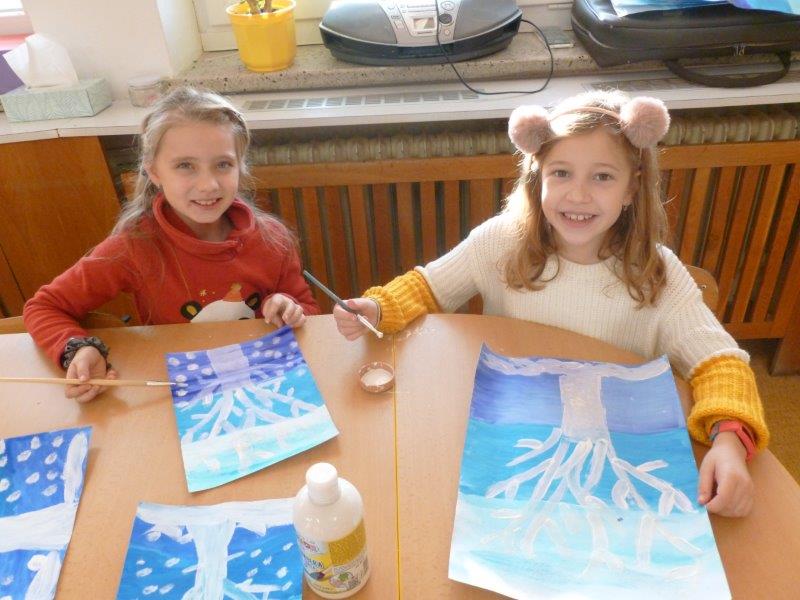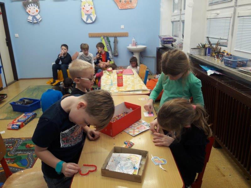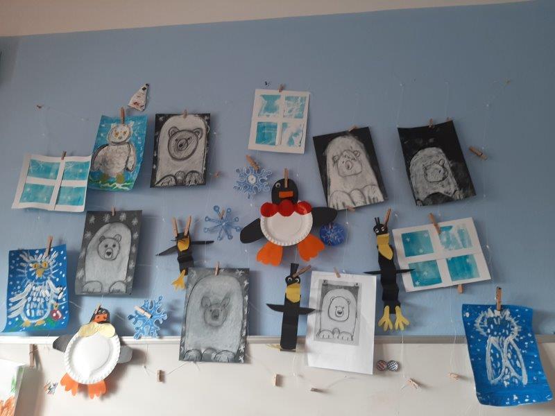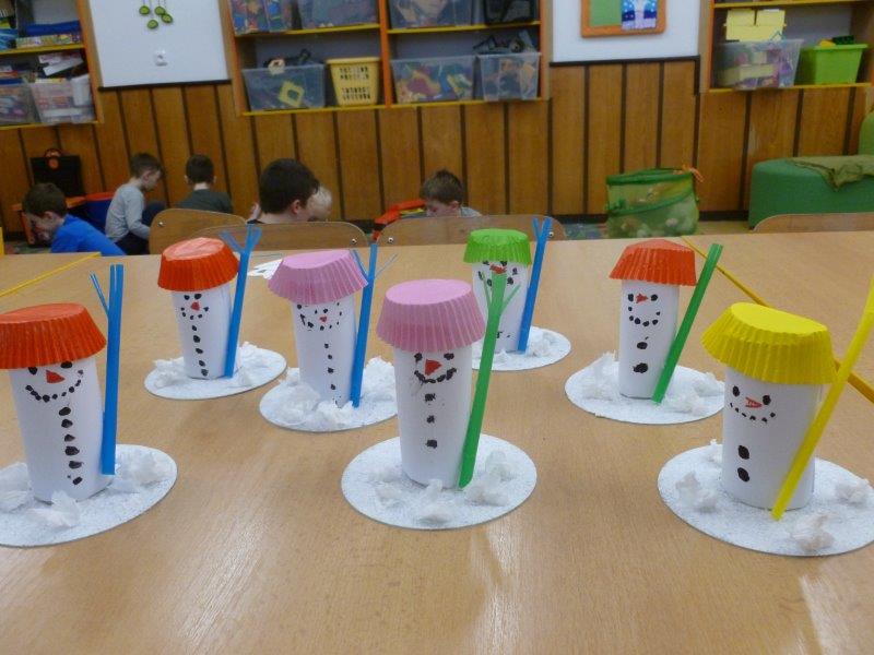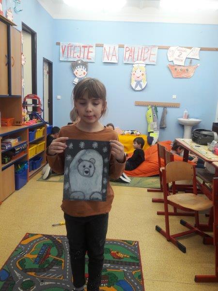 Ledový měsíc dalšího roku proběhl u nás asi takto - s pomocí papíru, barev a štětce jsme si vytvořili polární medvědy, havrany, zimní stromy, různé modely sněhuláků. Sněhové vločky jsme si připravili alespoň z papíru. Krásné výtvory také vznikly rozfoukáním tuše. Společně jsme si zahráli různé hry, zacvičili v tělocvičně. Skládali a zažehlovali jsme korálky - dárek od Ježíška. Ve velkém jsme vyměňovali kartičky získané v Kauflandu za nákupy. S lednem také skončilo první pololetí a k němu patří i vyhodnocení naší „smajlíkové soutěže“. Nejpilnější sběrači získali odměnu. Letos to byla děvčata – Barunka, Adélka a Anetka. Gratulujeme!