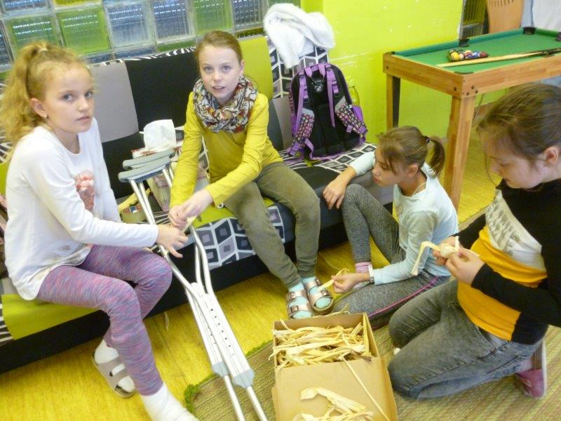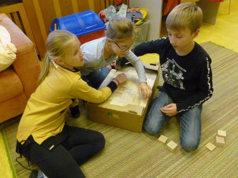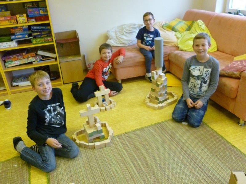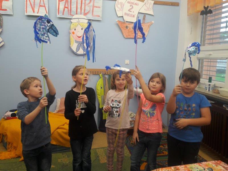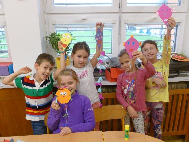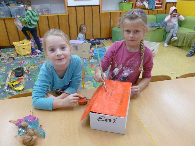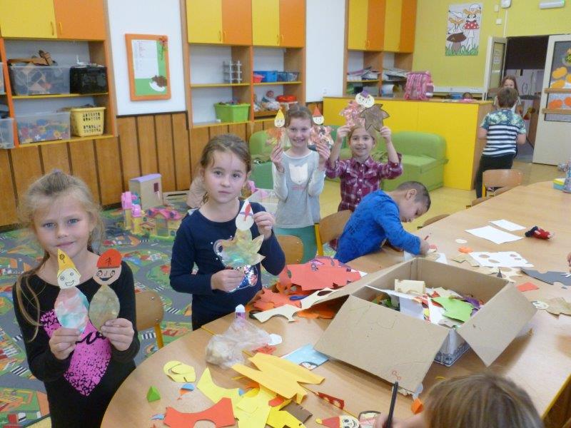 A nejenom hry, ale spoustu dalšího….. Hodně jsme tvořili, například skřítky podzimníčky, panenky ze šustí, záložky do knihy. Pustili jsme se do výroby pokojíčků z papírových krabic a naši dráčci z papíru čekali jen na správný vítr. Martinovi jsme připravili bílého koně, ale nepřijel… Prima zábava byla při skládání dřevěných špalíčků nebo sportování v tělocvičně.