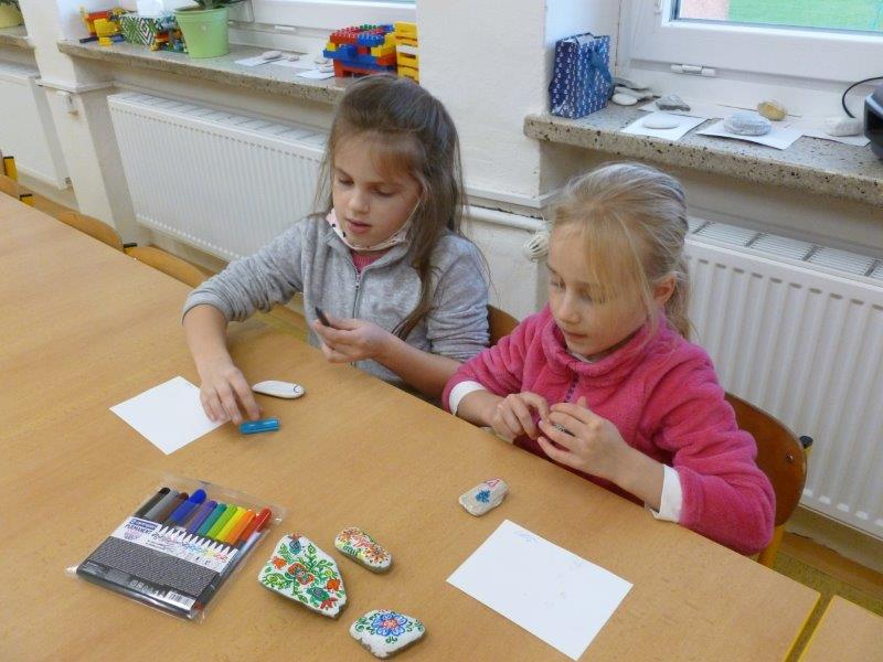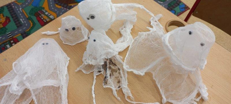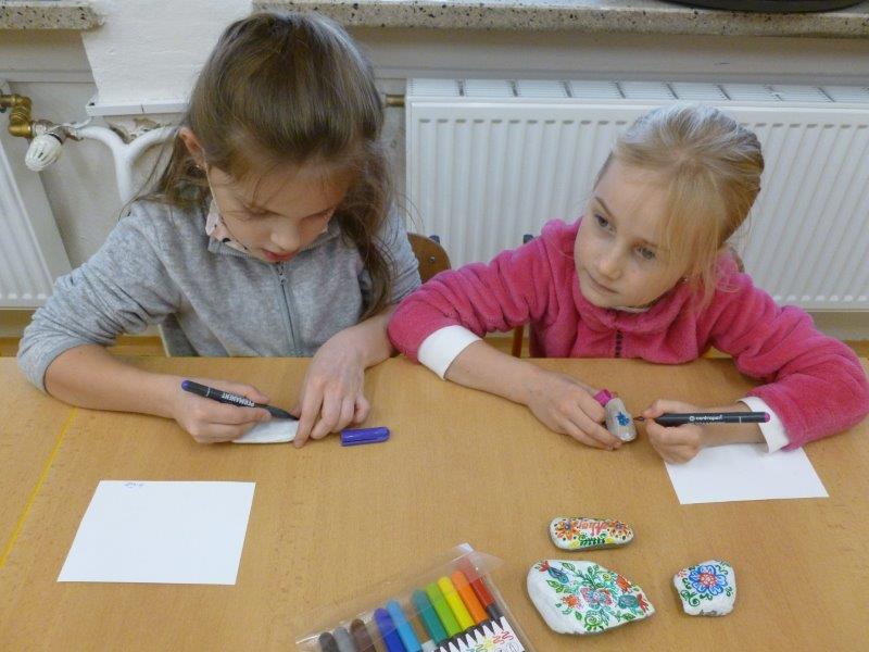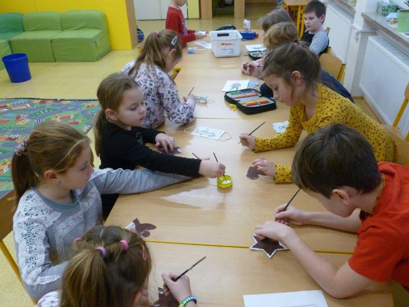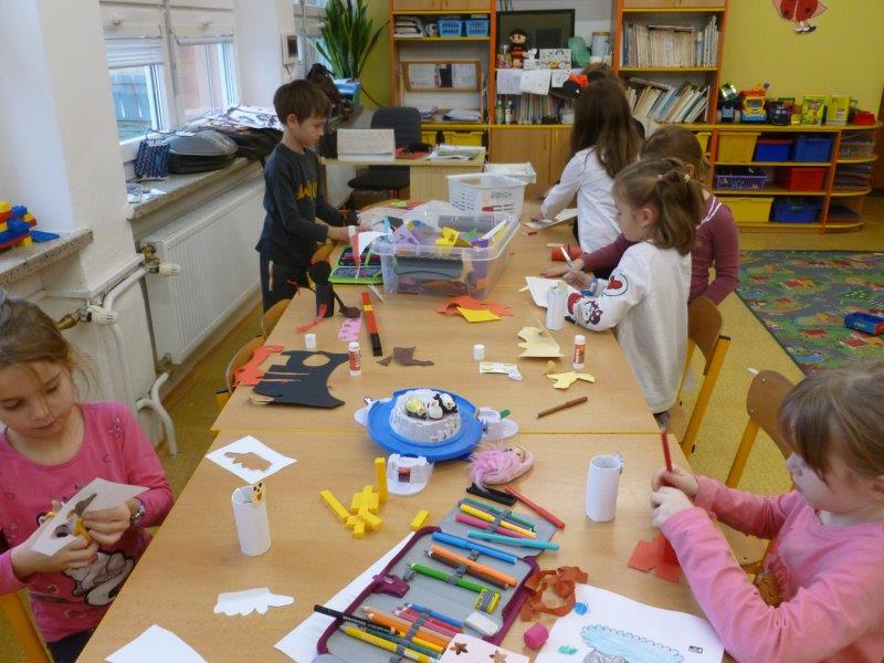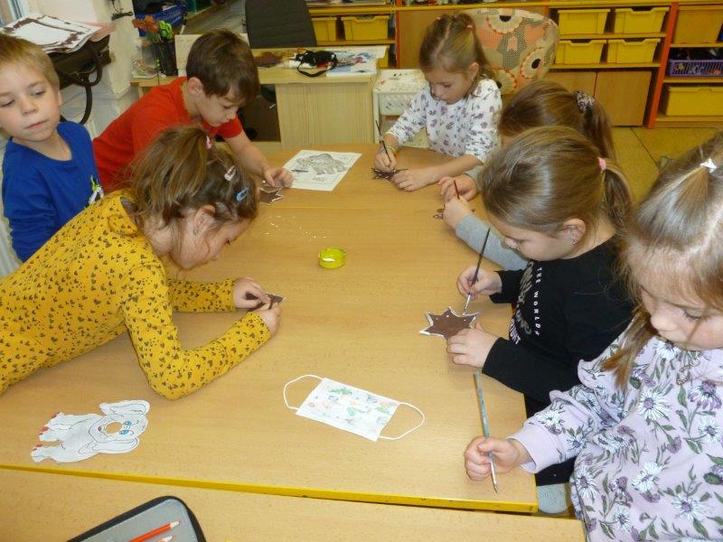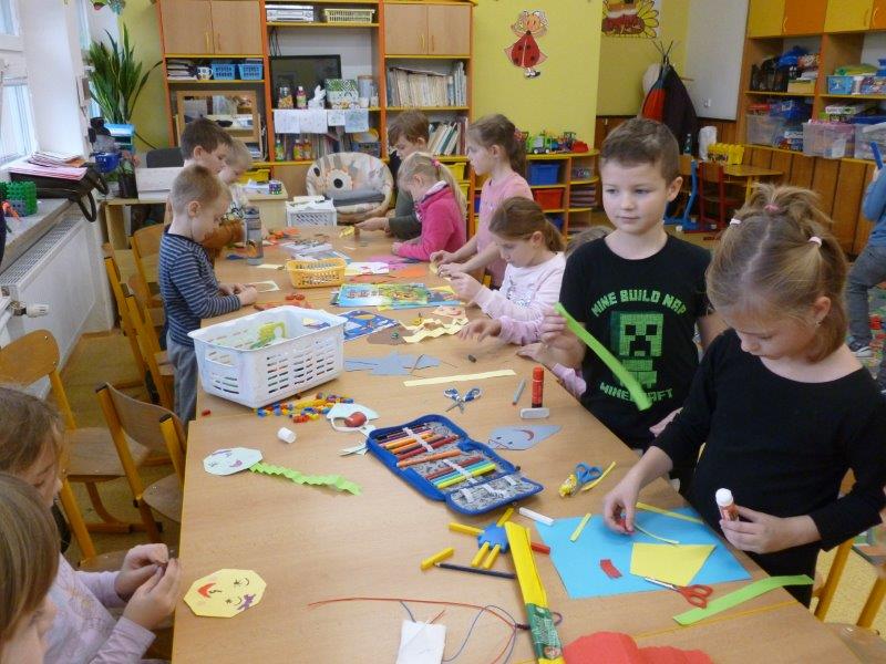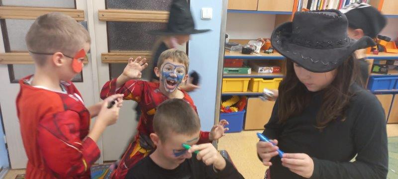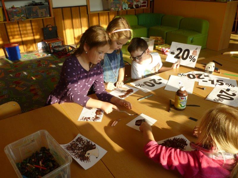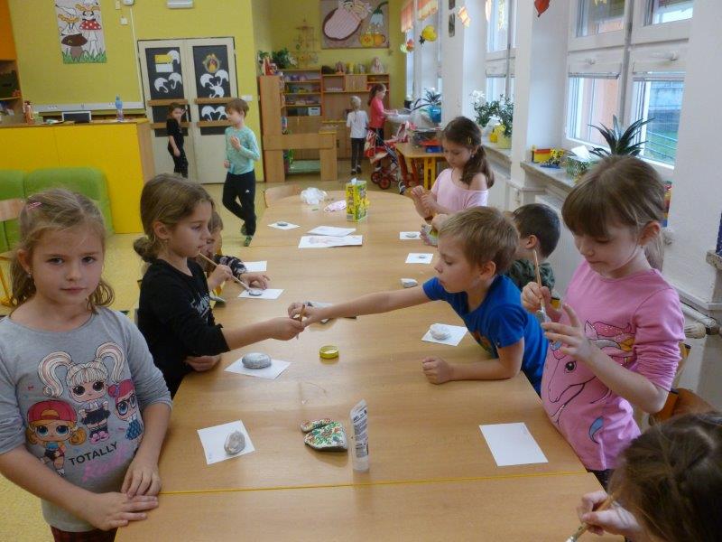 Vyrobili jsme koně pro svatého Martina, kreslili, vystřihli dráčky, zazpívali si s nástroji. Vyzkoušeli si, že vidlička není jen na jídlo, ale dokáže vykouzlit i pěkného ježka, namalovali jsme si putovní kamínky, které rozneseme. Napekli jsme si papírové perníčky a polepili jimi dveře. Nezapomněli jsme ani na Halloweenskou párty s převleky a často jsme běhali po školní zahradě.