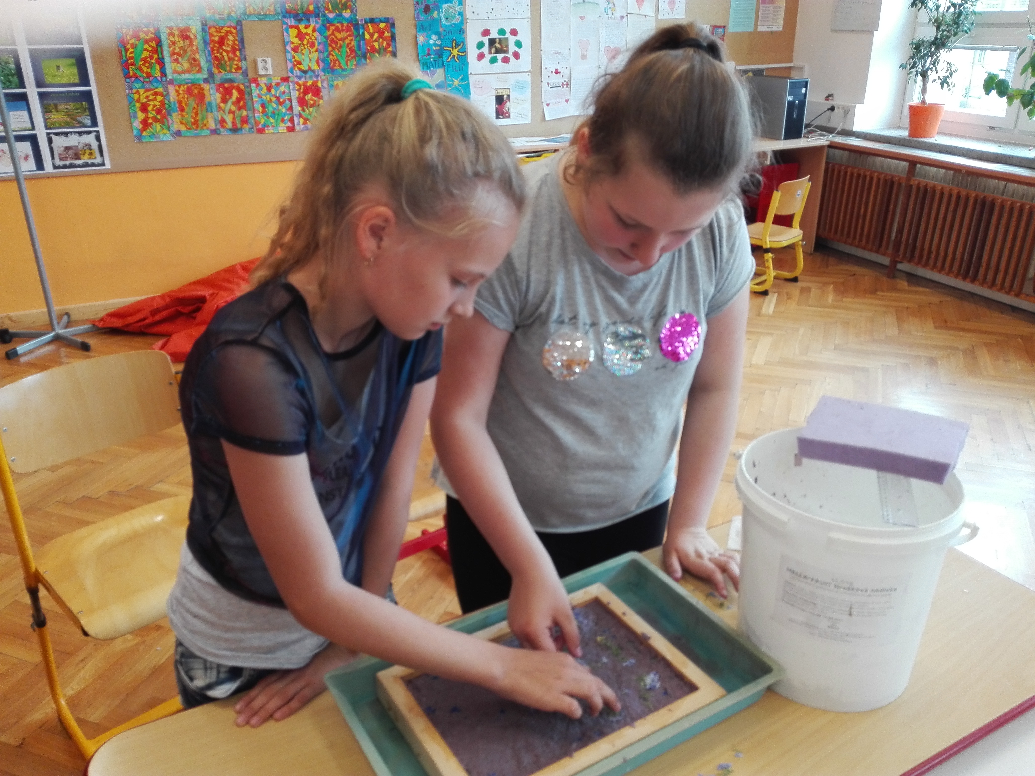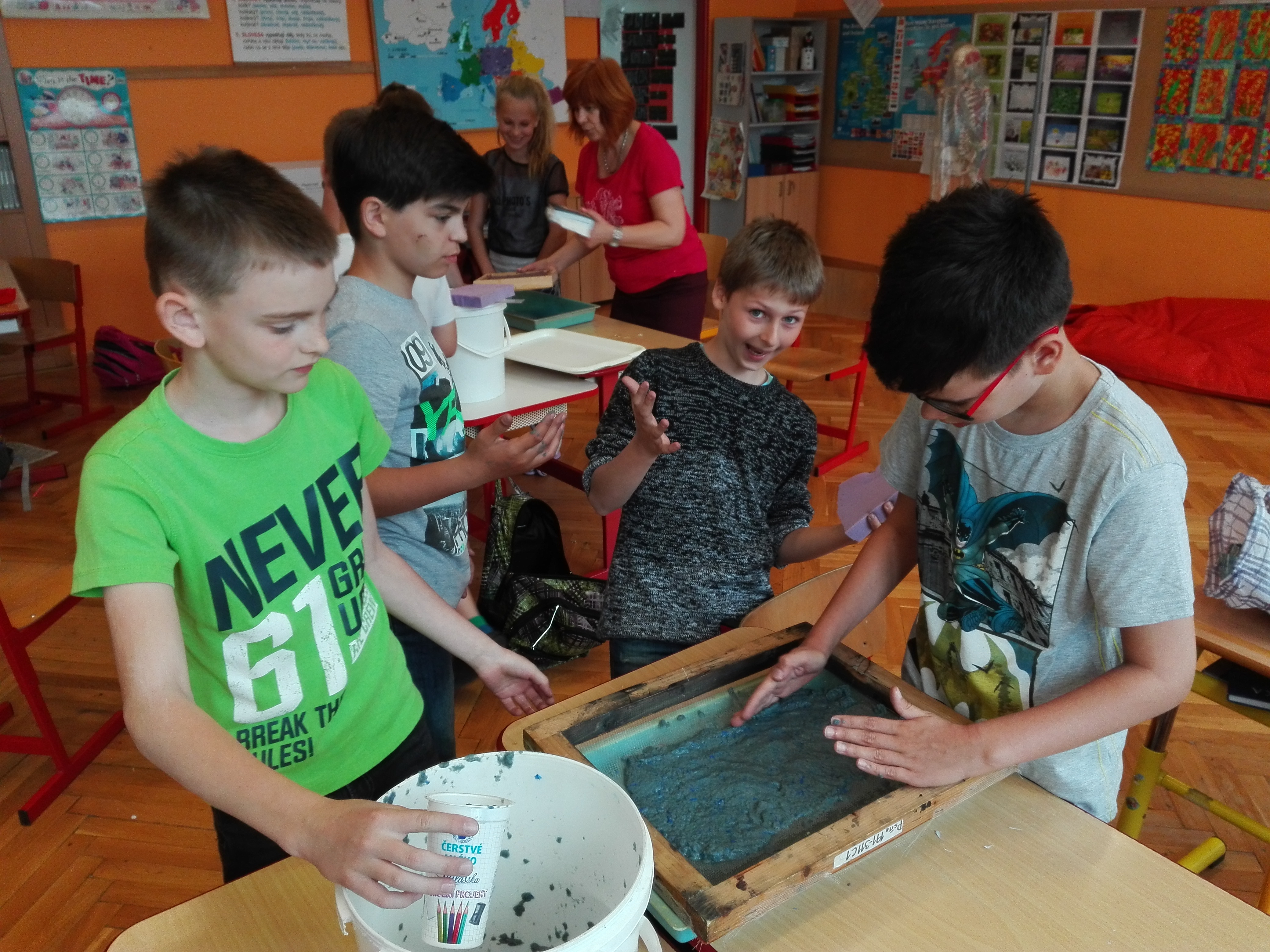Ve vlastivědě o manufakturách....v pracovce výroba ručního papíru....ve výtvarce přáníčko z vyrobeného papíru ke Dni matek ...zapojení do projektu "Recyklování"....aneb jak vše hezky propojit dohromady.