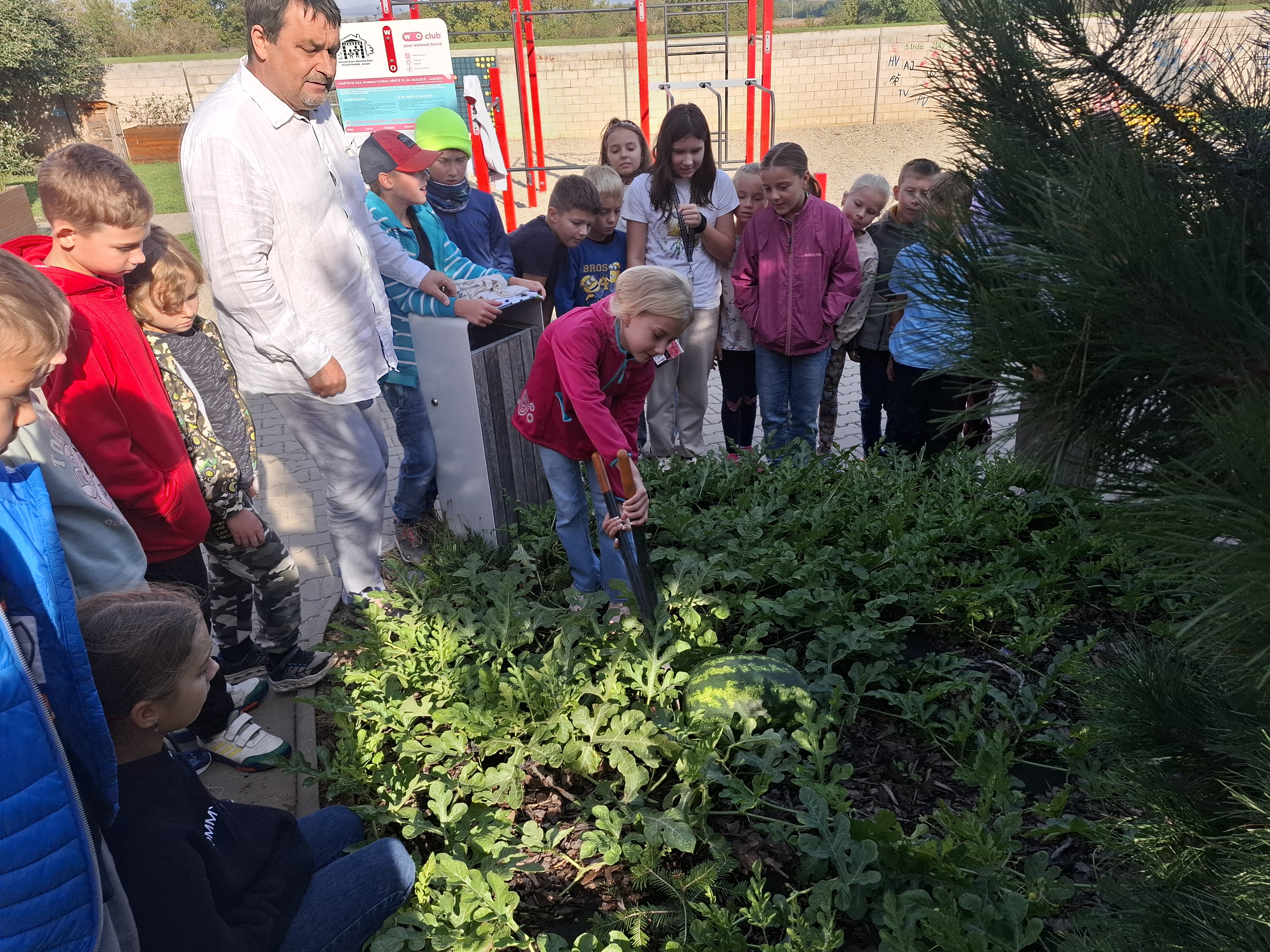 Nejprve paní vychovatelka Libuška zasela s dětmi semínko. To vzklíčilo. Celé léto jsme rostlinku zalévali, až se vyklubal malý melounek. Byla to velká sláva.