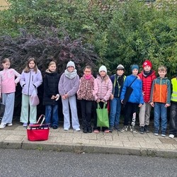 Měli jsme připraveny 3 písničky (Stará archa, Indián a Když jsi kamarád) s doprovodem orfových nástrojů. Pro naše budoucí svěřence jsme v pracovní výchově vyrobili barevná “hrkátka” na doprovod k písním. Malým zpěváčkům se velmi líbila, ihned pochopili užití a sami nám zazpívali o dýních. Na oplátku měli pro nás připravené hezké obrázky. Zaslouženou sladkou tečku jsme si všichni dali v MŠ i ZŠ. Už teď se těšíme na další setkání - tentokrát u nás v základní škole.