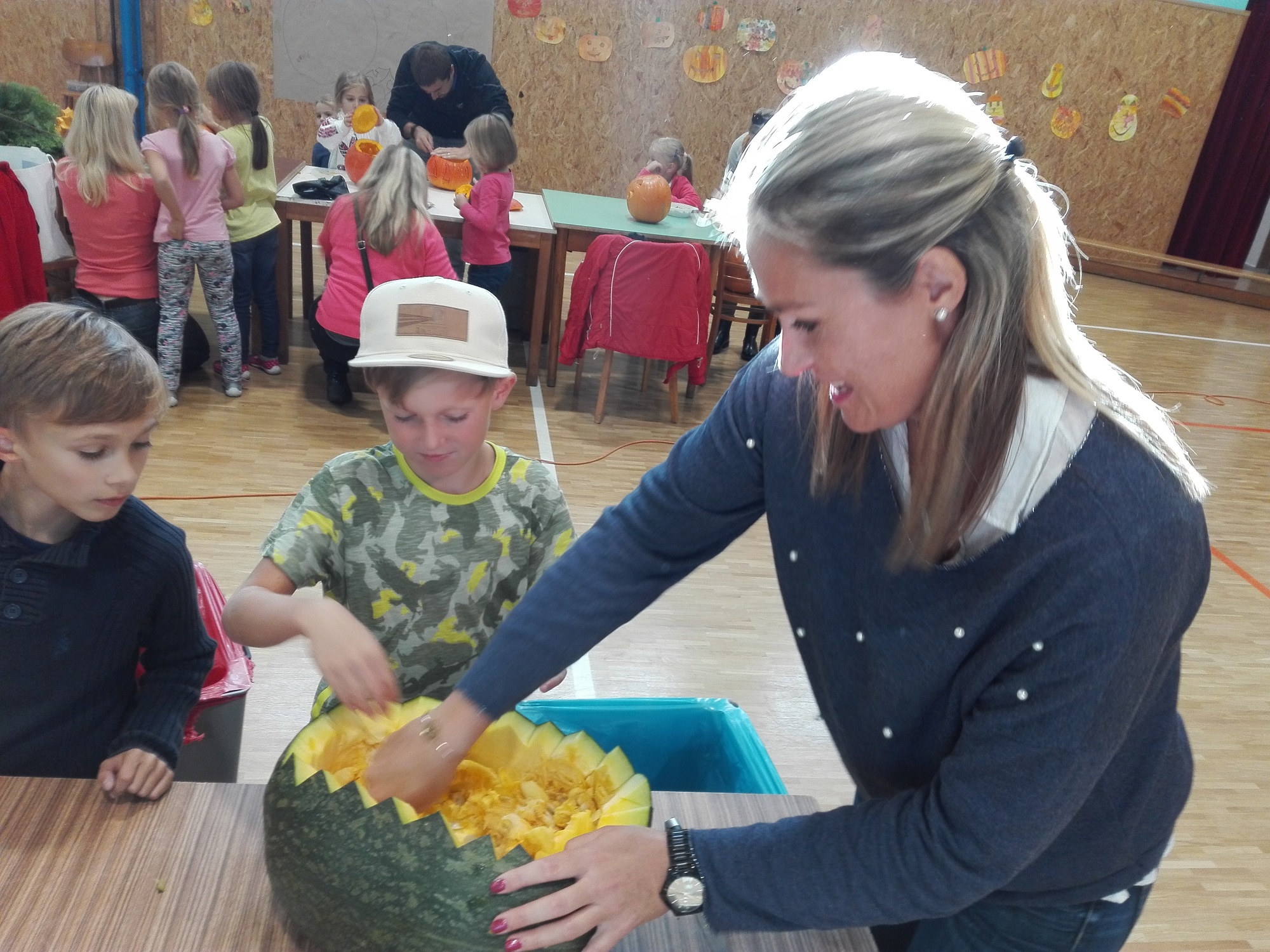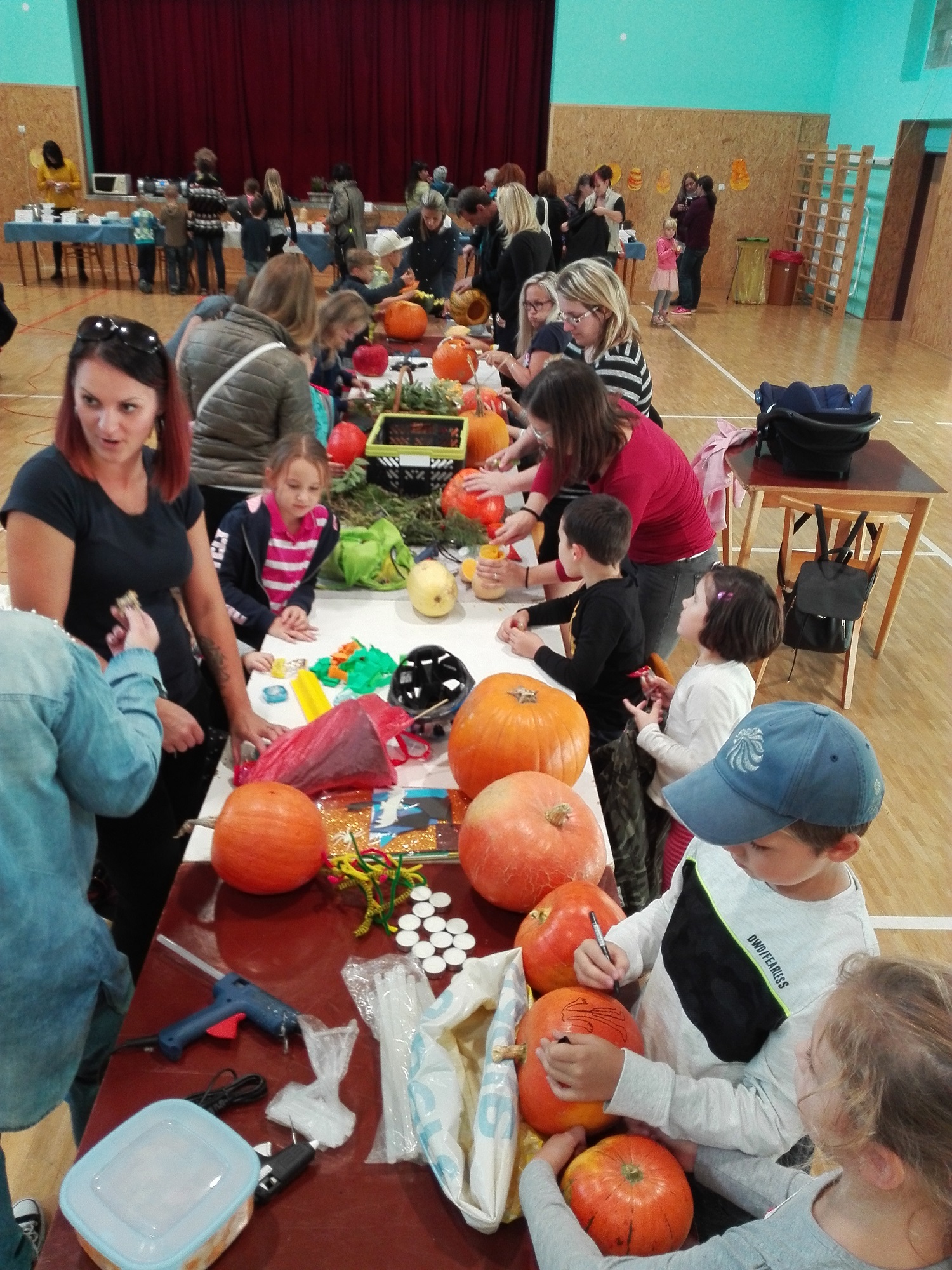 Během odpoledne tak děti sportovaly, s rodiči zdobily dýňové strašáky a všichni společně ochutnávali z dýňového "fast foodu". Tímto děkujeme všem dětem, maminkám, tatínkům, babičkám i dědečkům za upečení a navaření nejrůznějších specialit.