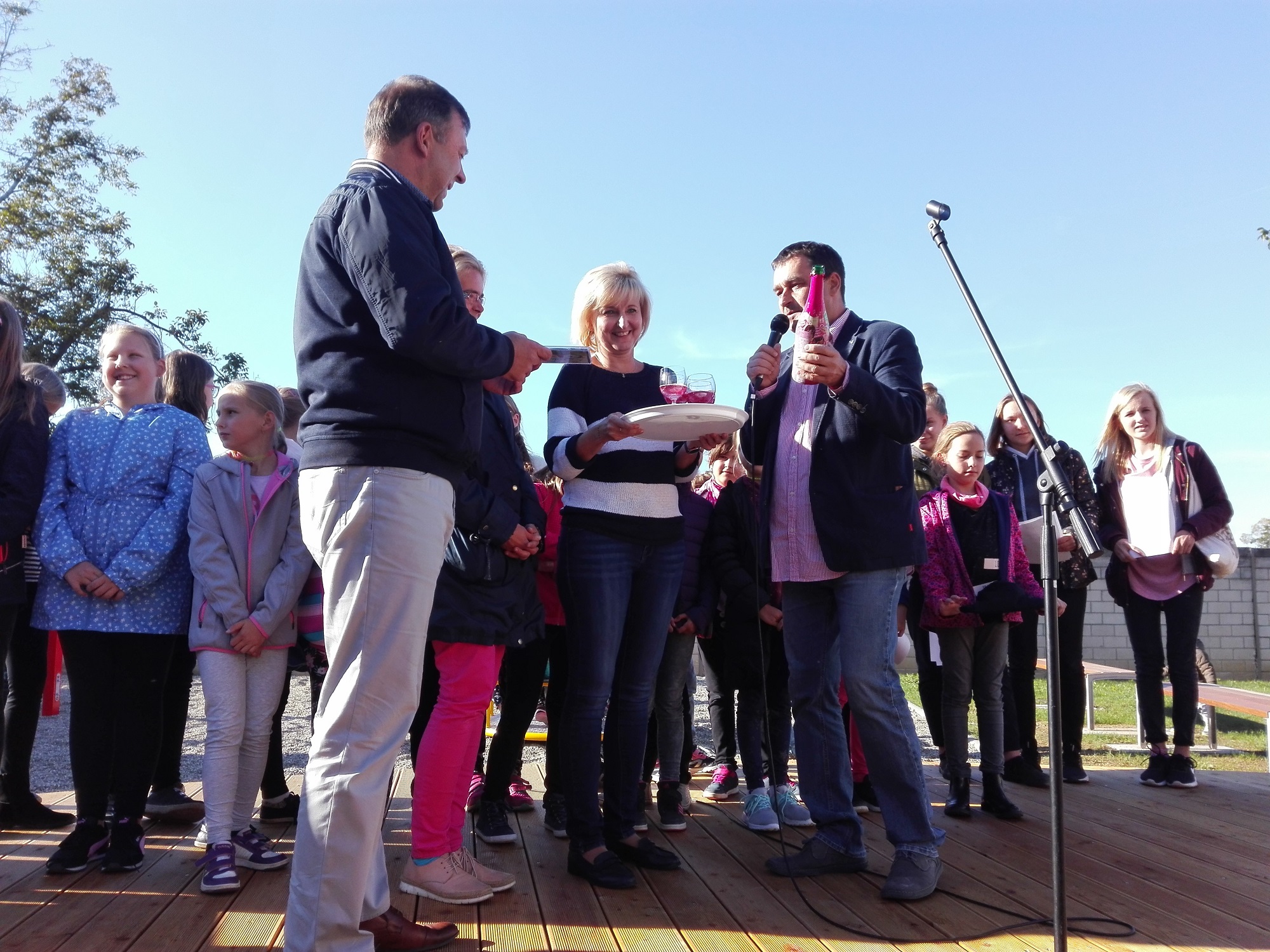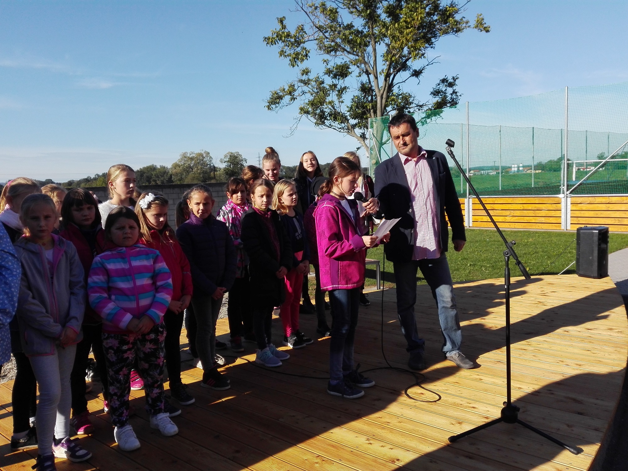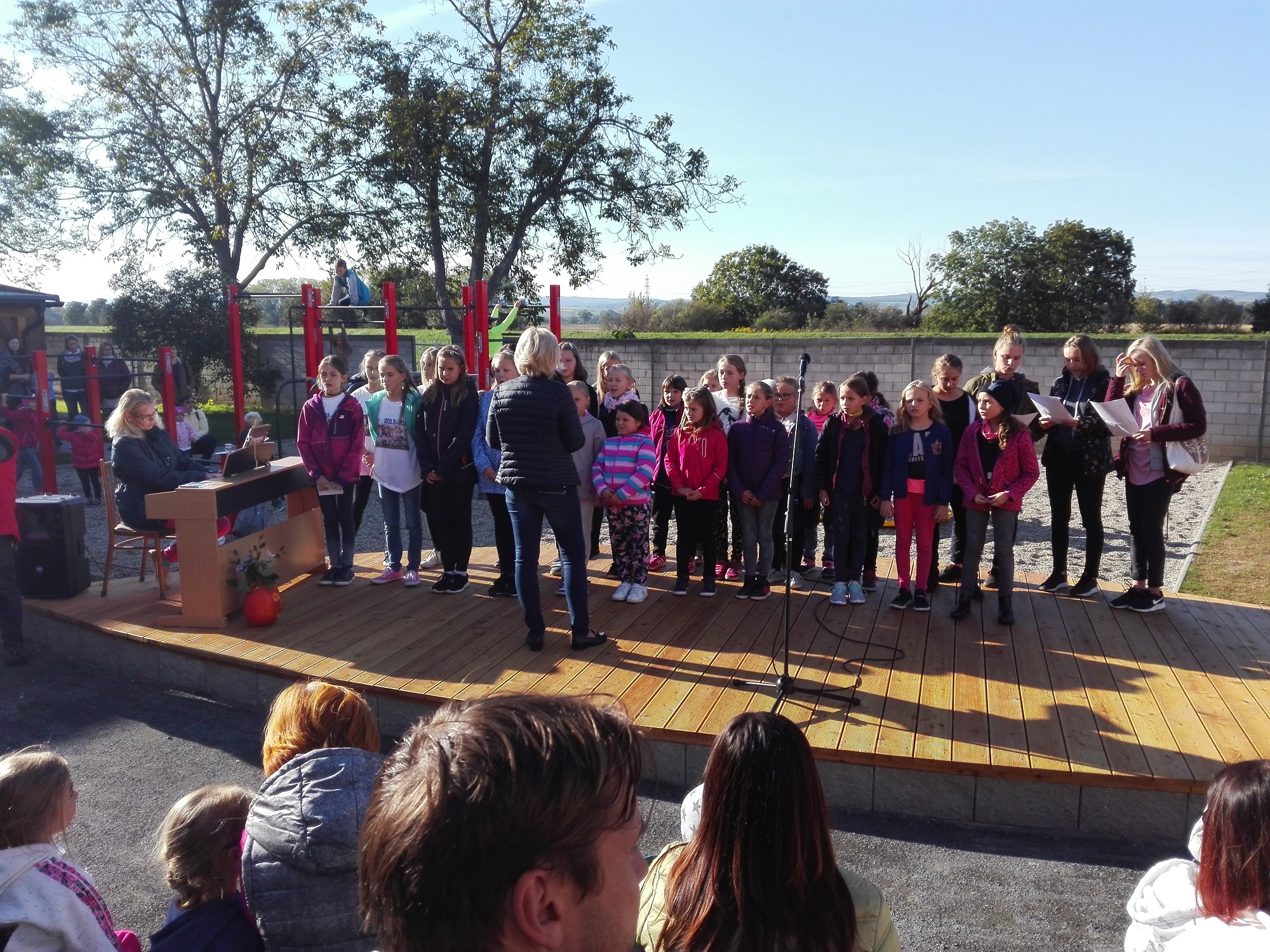 Nové pódium vyzkoušel i pěvecký sbor pod vedením paní vychovatelky Ivy Zemanové. Ta se svými zpěvulkami (jak si holky říkají) natočila v červnu CD, které bylo při slavnosti pokřtěno.