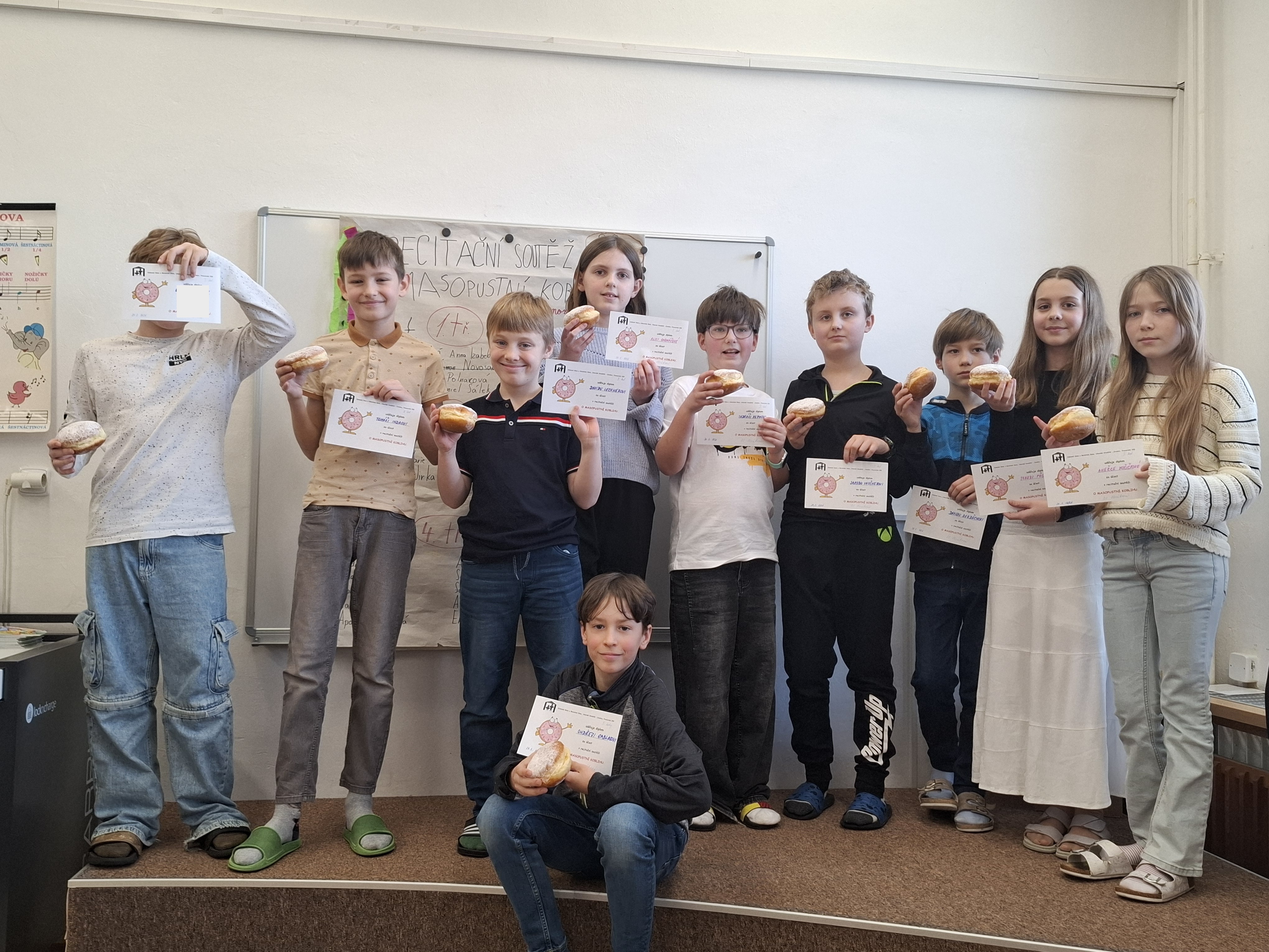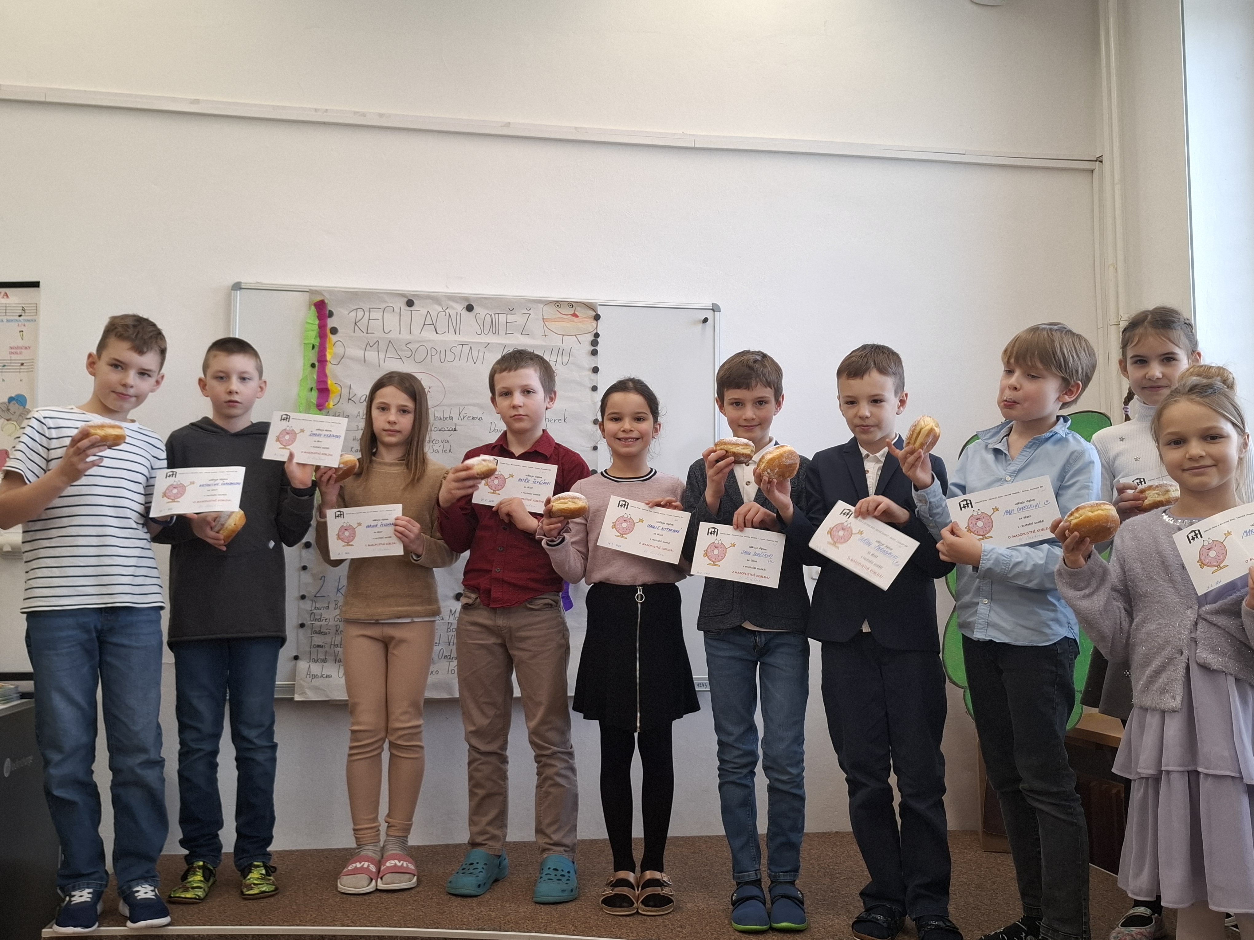 Opět po roce jsme se sešli na školním kole recitační soutěže „O masopustní koblihu“, která se konala v úterý 24. února.