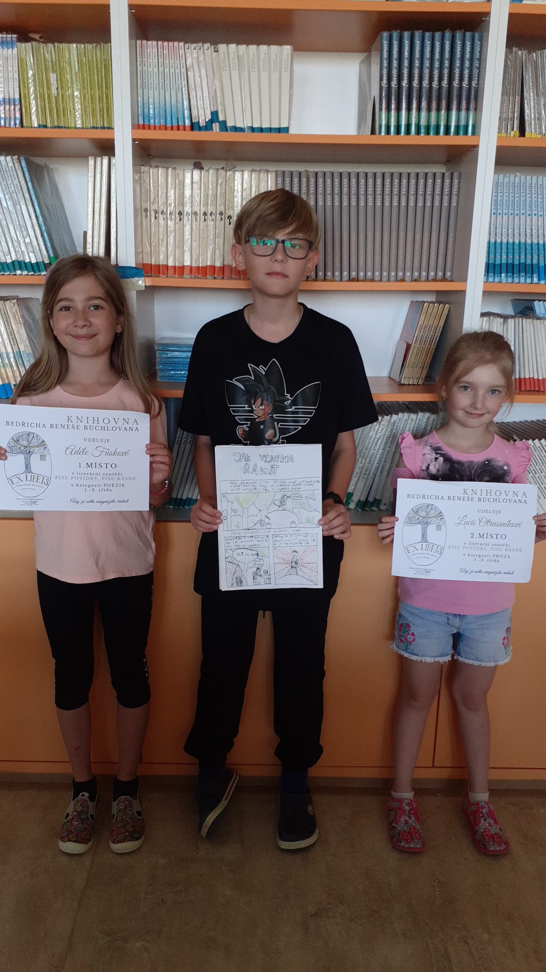 V soutěži, kterou tradičně organizuje Knihovna B. B. Buchlovana v Uherském Hradišti, jsme opět posbírali několik úspěchů. Byli jsme pozváni do Kina Hvězda, kde proběhlo vyhlášení nejlepších prací. Kromě cen a diplomů jsme si odnesli i krásný emotivní zážitek ze zhlédnutého filmu "Fany a pes".