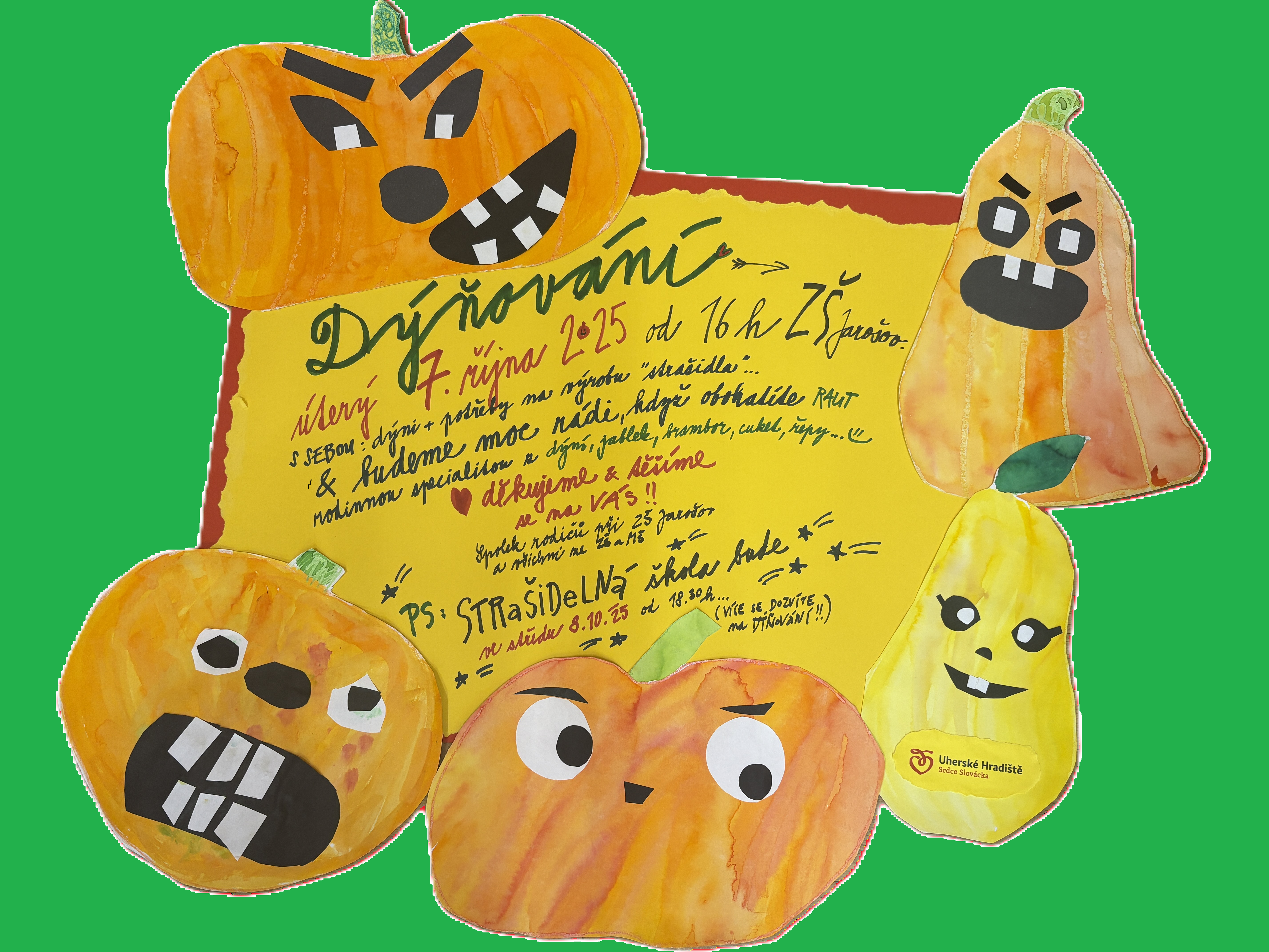 Ve středu 8. 10. 2025 od 18:00 hodin se pak potkáme na noční - strašidelné - prohlídce školy, kde odměníme tvůrce těch nejkrásnějších dýní.