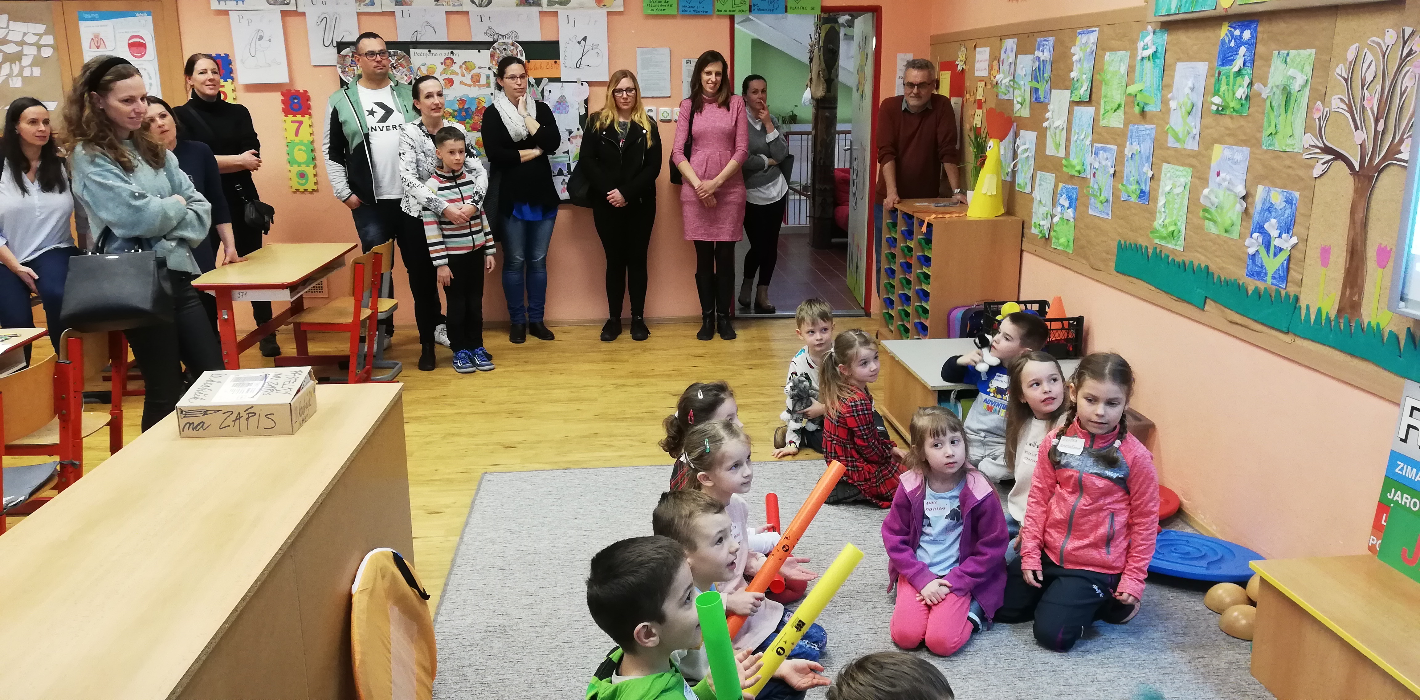 Po přivítání a vzájemném představení s pani učitelkou H. Otrusiníkovou, si všechny děti vybraly svou plyšovou kočičku, které jsou i tématem letošního zápisu do 1. třídy. Poté si budoucí školáci zazpívali, vypracovali spoustu úkolů, zkusili si práci na interaktivní tabuli a dokonce se během krátké chvilky naučili zahrát písničku na ozvučné perkusní trubice. Věříme, že u nás děti strávily příjemné odpoledne. I my se už těšíme na druhou předškoličku, která se uskuteční v úterý 26. března 2024 od 15 do 16 hodin.