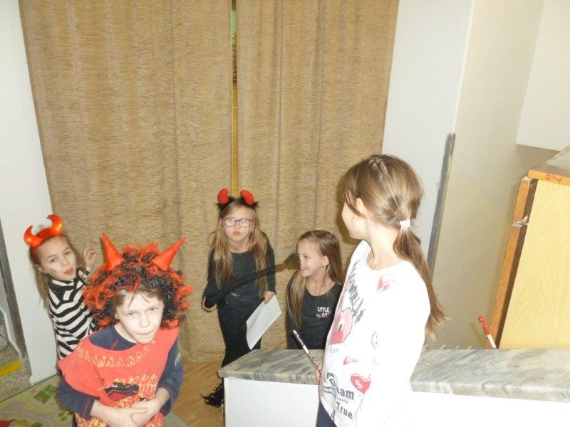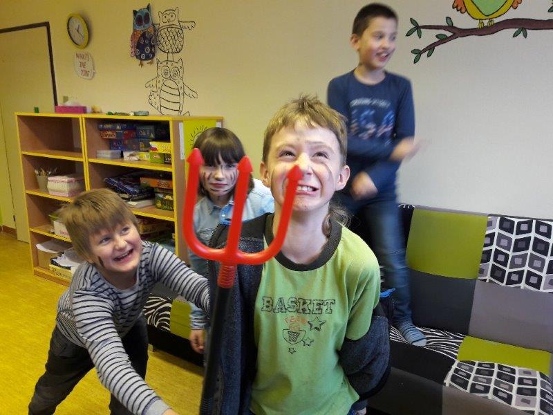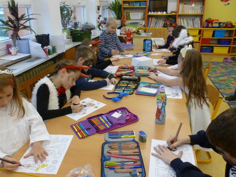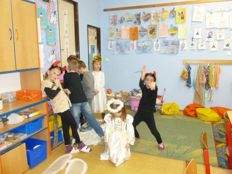 Prosinec je již tradičně měsícem, ve kterém máme neskutečně moc „práce“ a času na všechny naše aktivity se nám nedostává. Stihli jsme, co se dalo, ale některé z našich plánů odsouváme na příště. Čekání na příchod vánoc jsme si krátili výrobou vánočních ozdob pro stromeček v Uherském Hradišti, malováním přáníček a hvězdiček s tajnými sny. Milujeme převleky, proto v každém oddělení proběhlo zábavné odpoledne – „Čertovský rej“.