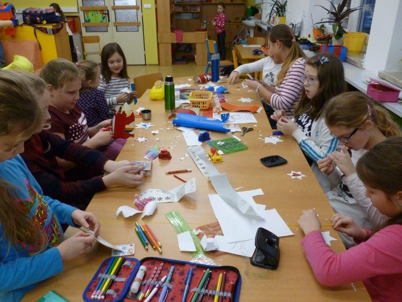 Třídy jsme si vyzdobili řetězy a sněhovými vločkami. Ten skutečný sníh nám chyběl, namalovali jsme alespoň sněžné medvídky, sobíky, stromečky a jiné. Secvičili jsme pásmo na Vánoční ladění. Velkou práci měl také pěvecký kroužek s přípravou na svá vystoupení. Tentokrát se předvedl v DPS UH, na Vánočním ladění ve škole a v Redutě při oslavách 50. výročí založení MŠ Svatováclavské. V předstihu jsme také nazdobili stromeček, aby Ježíšek věděl, kde má složit nadílku. A byla opravdu bohatá. To se to bude hrát a tvořit! Vánoční nálada byla znát na každém kroku, nezapomněli jsme ani na společné tvoření s rodiči, naše tradiční dílničky. V zápalu práce dny rychle uběhly a my se tedy dočkali zimních prázdnin. Loučíme se se starým rokem a vítáme nový. V něm Vám za celou družinu přeji hodně zdraví, štěstí a radostných zážitků.