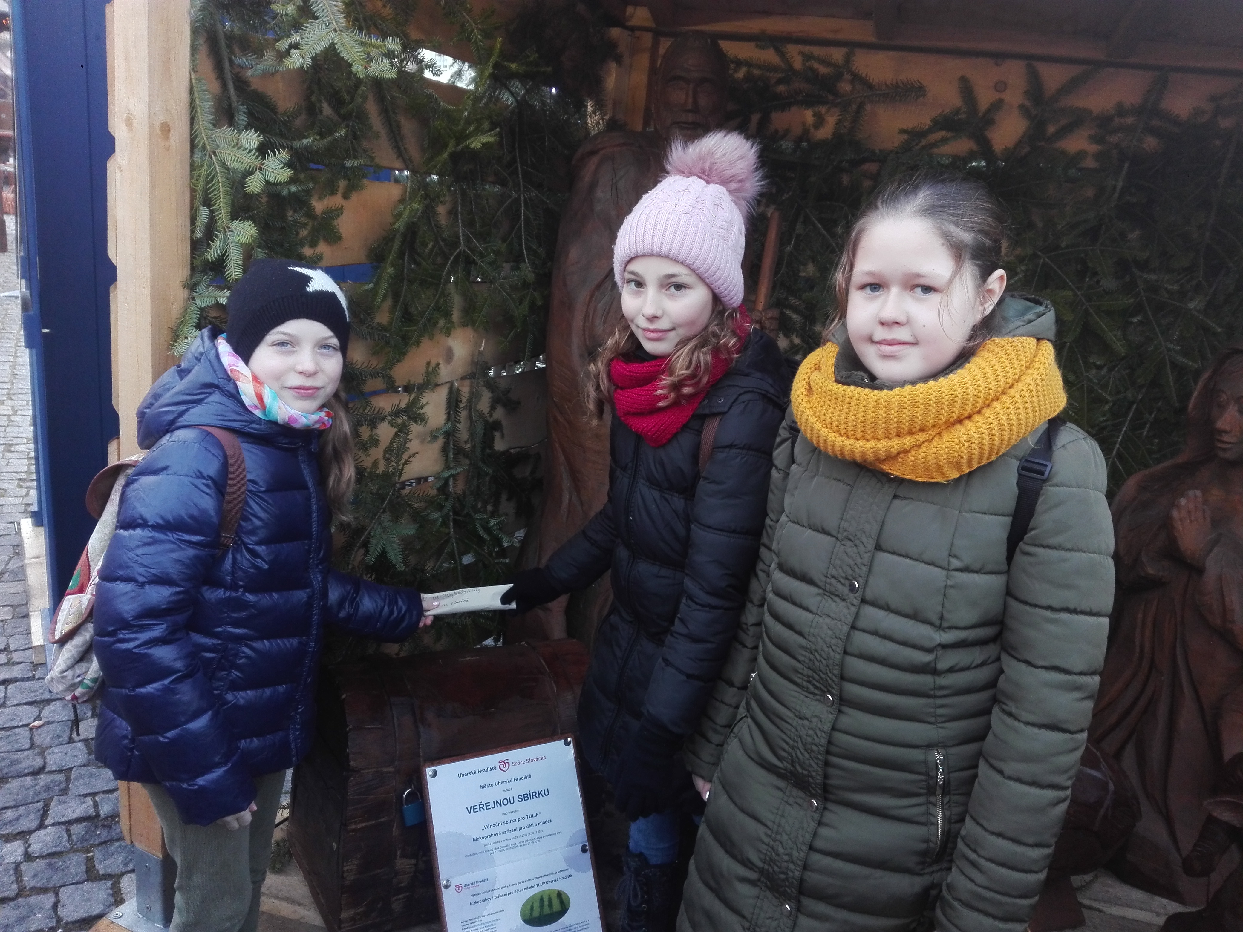 O tom, že naši žáci mají i sociální cítění, jsme se opět přesvědčili. Během Vánočního ladění totiž páťačky uspořádali malý jarmark a výtěžek z prodeje, téměř 800 Kč, věnovali během sbírky uspořádané na Masarykově náměstí v Uherském Hradišti nízkoprahovému klubu Tulip, který se věnuje práci s mládeží.