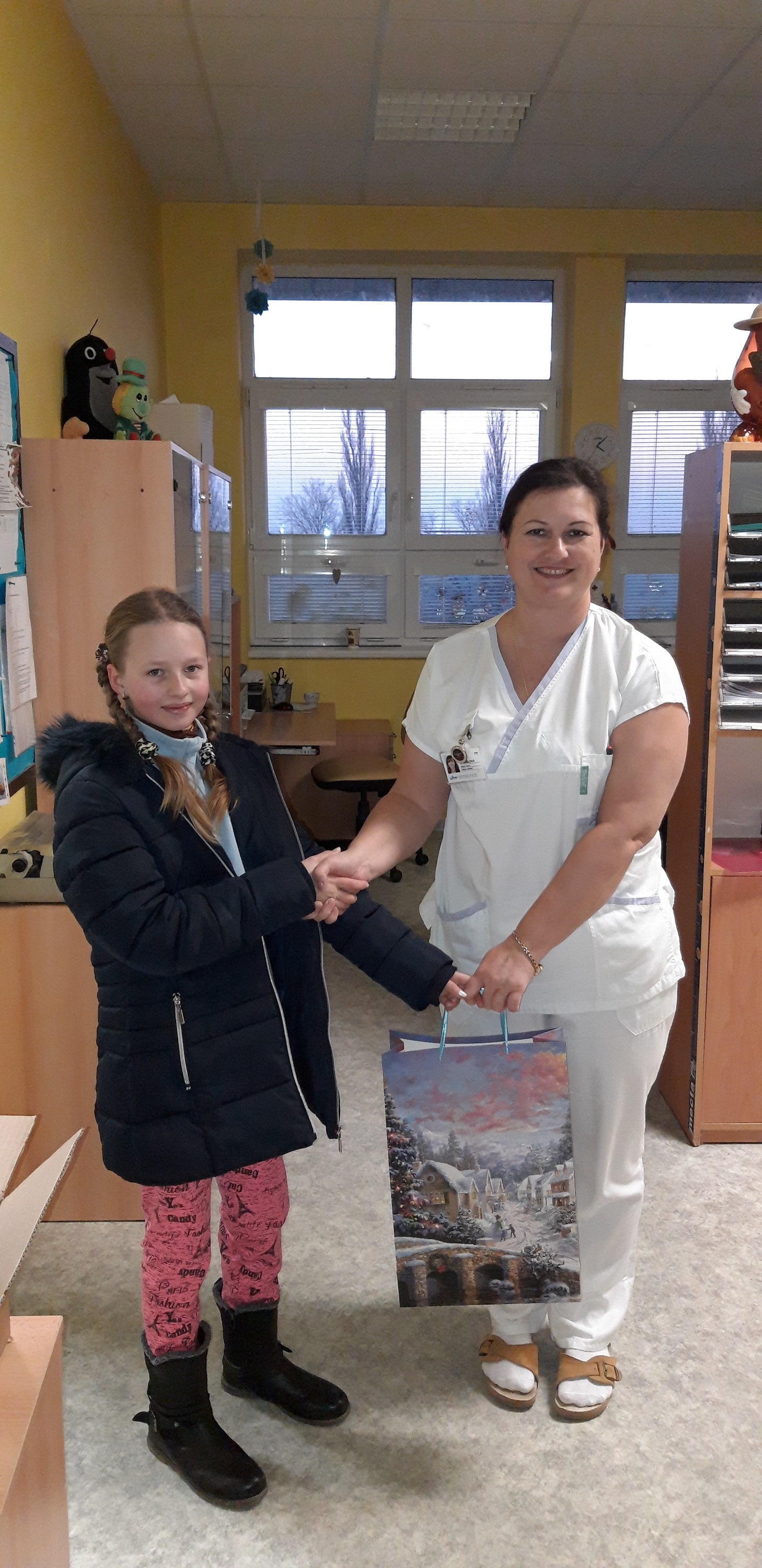 Naši čtvrťáci během Vánočního ladění uspořádali malý jarmark. Část výtěžku předali do charitní schránky během vánočního jarmarku v Uherském Hradišti. Dárky za výtěžek z prodeje svých výrobků předali dětskému oddělení uherskohradišťské nemocnice. Chválíme a děkujeme za tuto aktivitu!