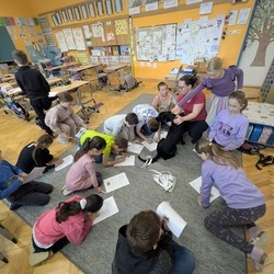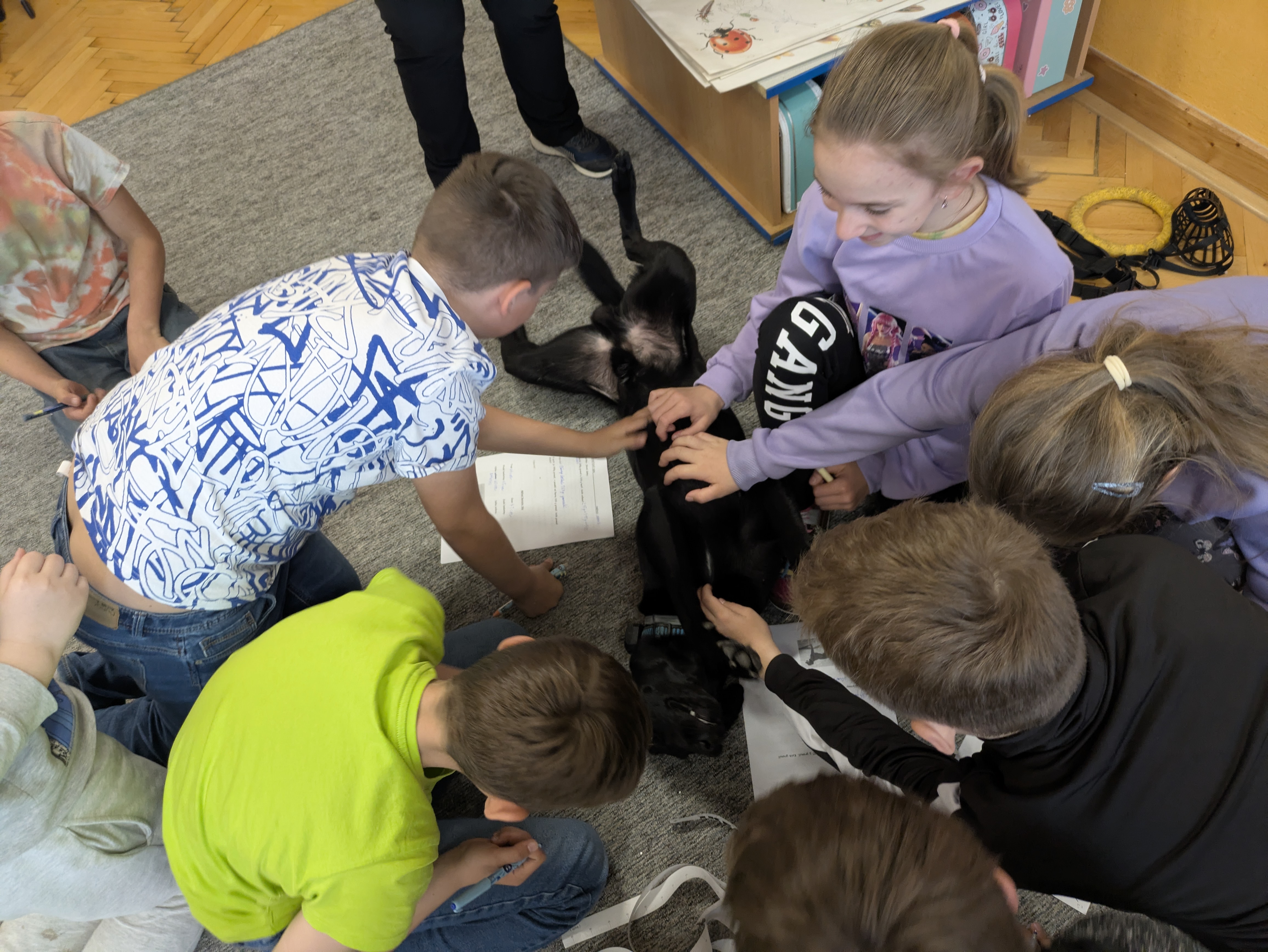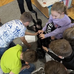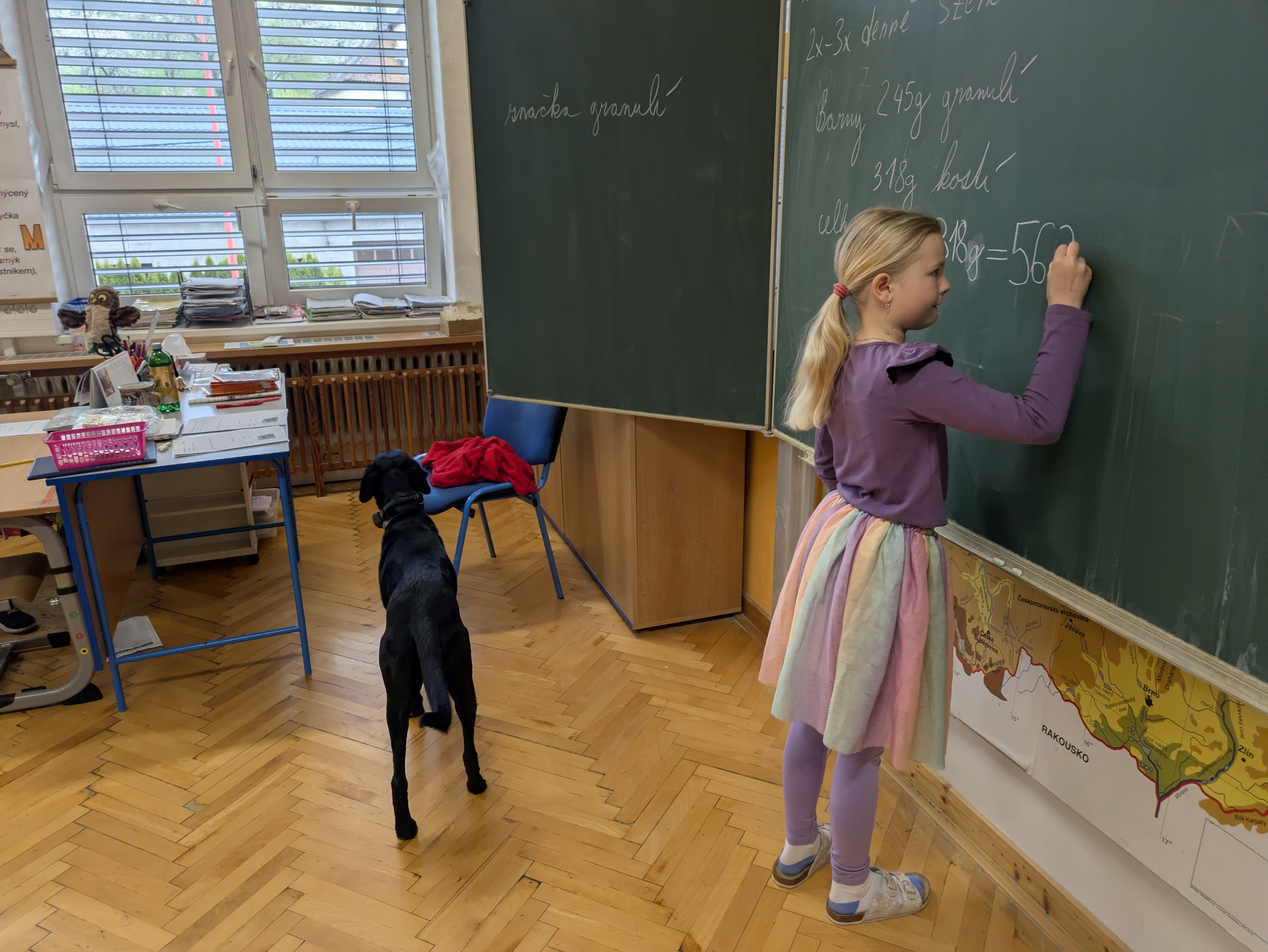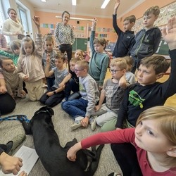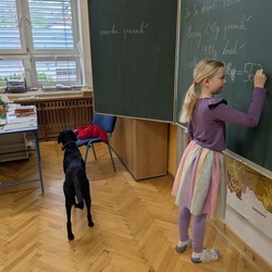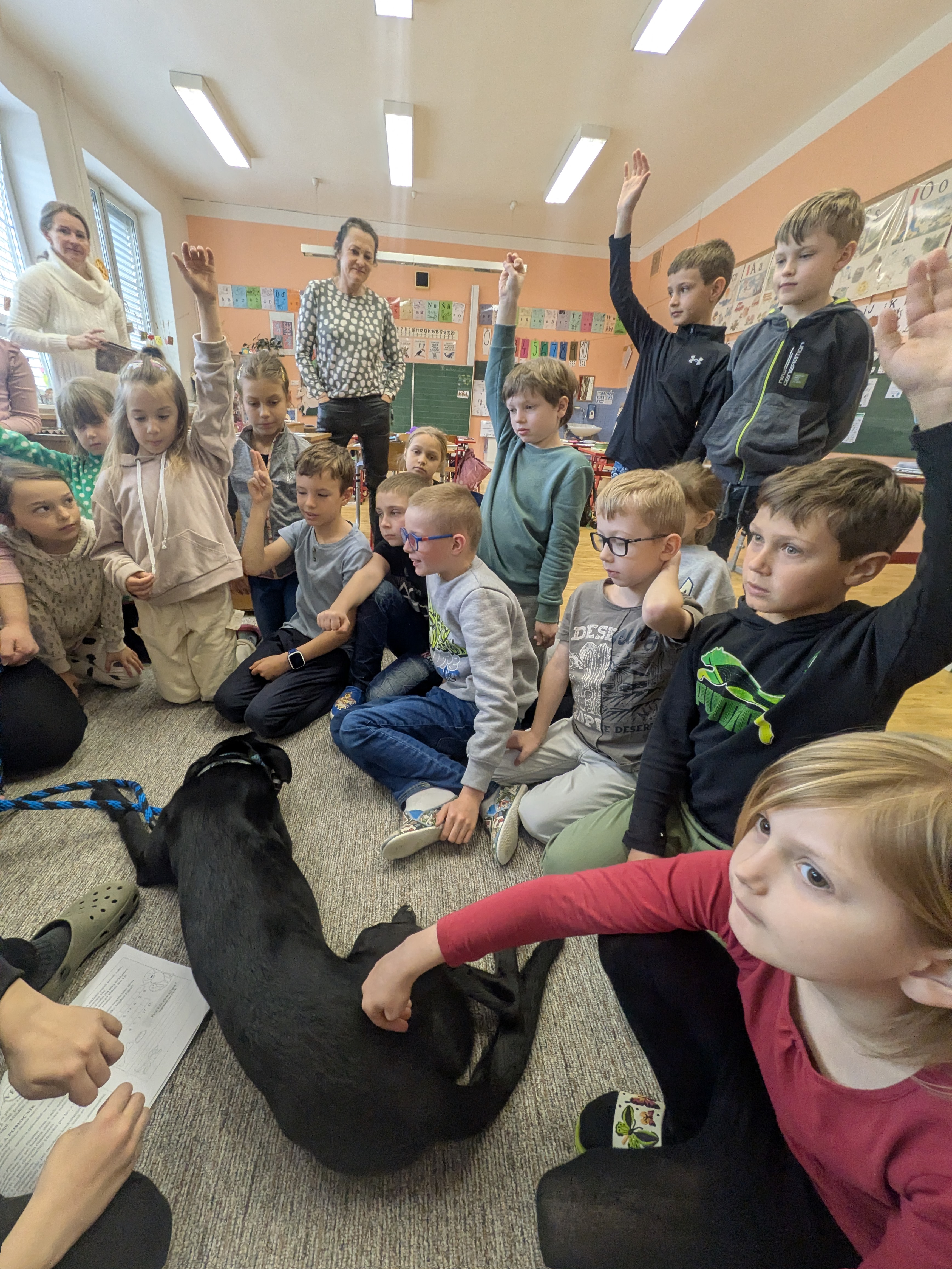 Dne 15. 4. 2026 proběhl ve třetí třídě projektový den s pejskem paní asistentky Veroniky Waidingerové – Barnym. Děti byly velmi zvídavé, nenechaly se dalším "žákem ve třídě" rozptylovat :-)