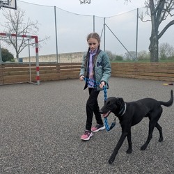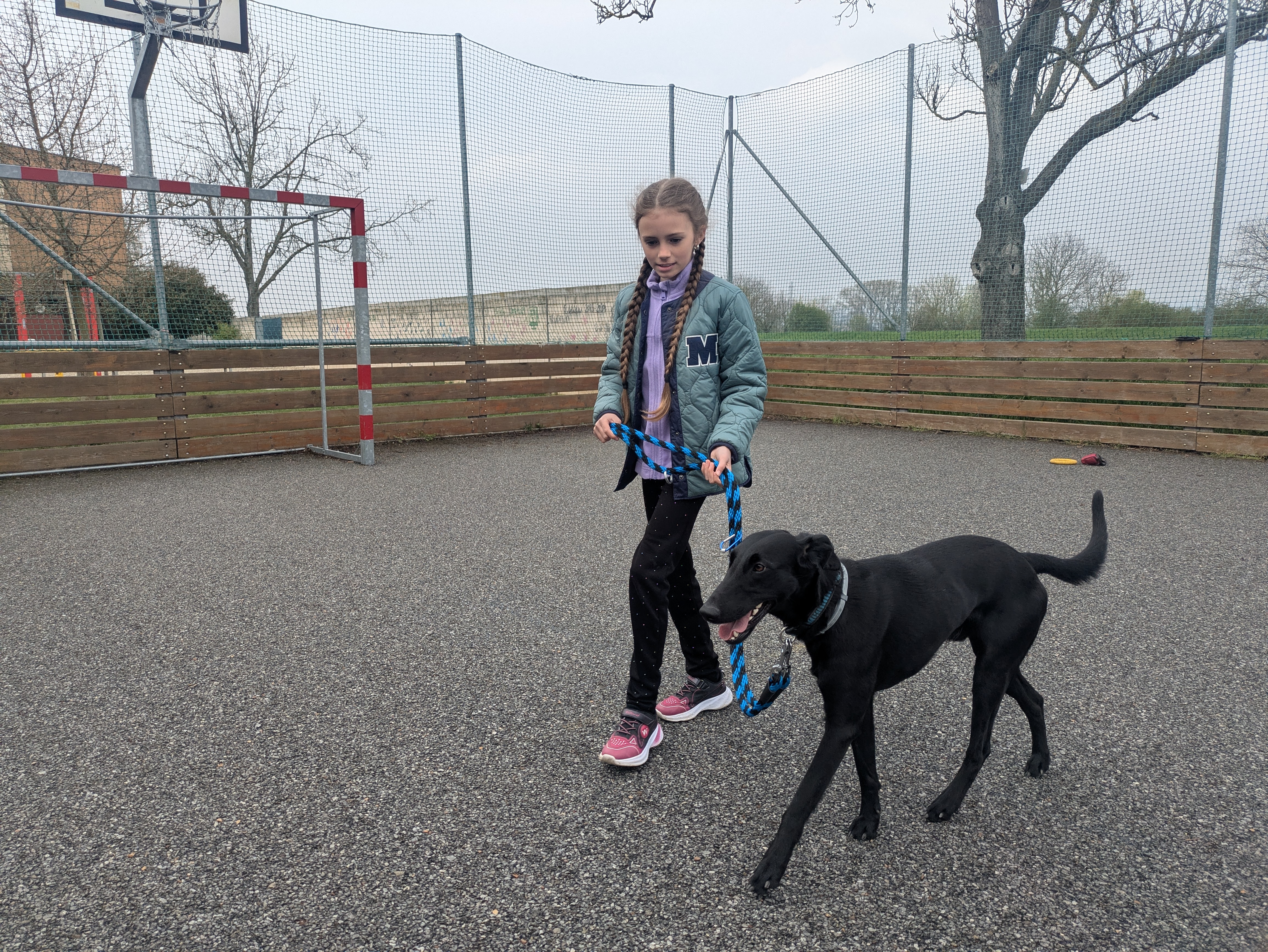 Všichni pečlivě zjišťovali, kolik sní granulí a dalších dobrot, měřili ho snad ze všech stran, popisovali anglicky jeho tělo, zkoumali jeho povahu a ověřovali psí učenlivost i trpělivost. S připravenými otázkami jsme se také vydali do ostatních tříd, kde psa Barnyho představili ostatním. Spolužáci odpovídali na otázky o psech a jejich životě a dozvěděli se spoustu nových informací. Na závěr si třeťáci v hodině TV vyzkoušeli dávat Barnymu povely a vodit ho na vodítku.