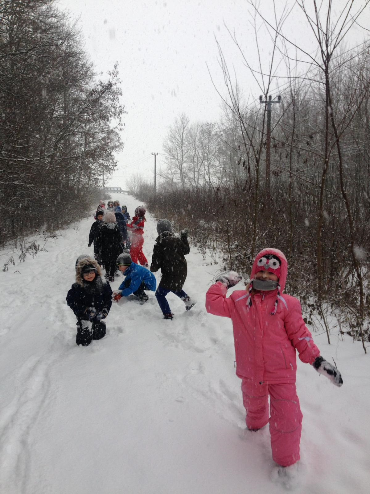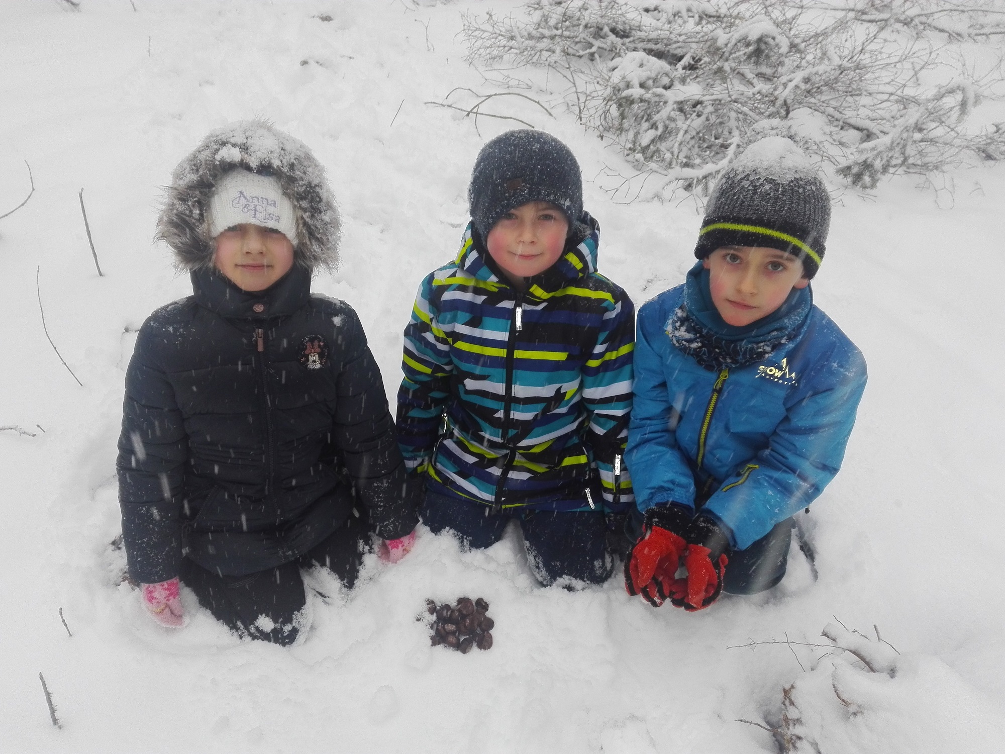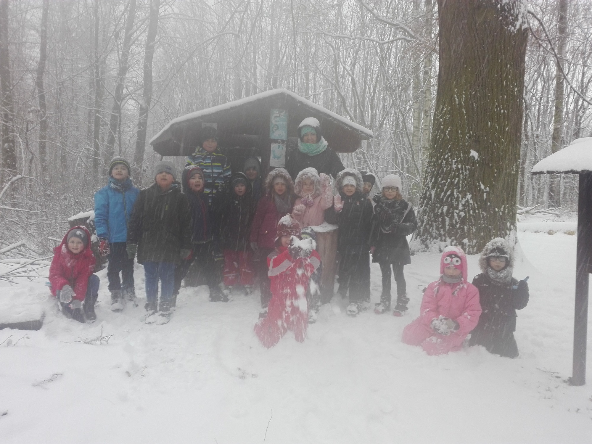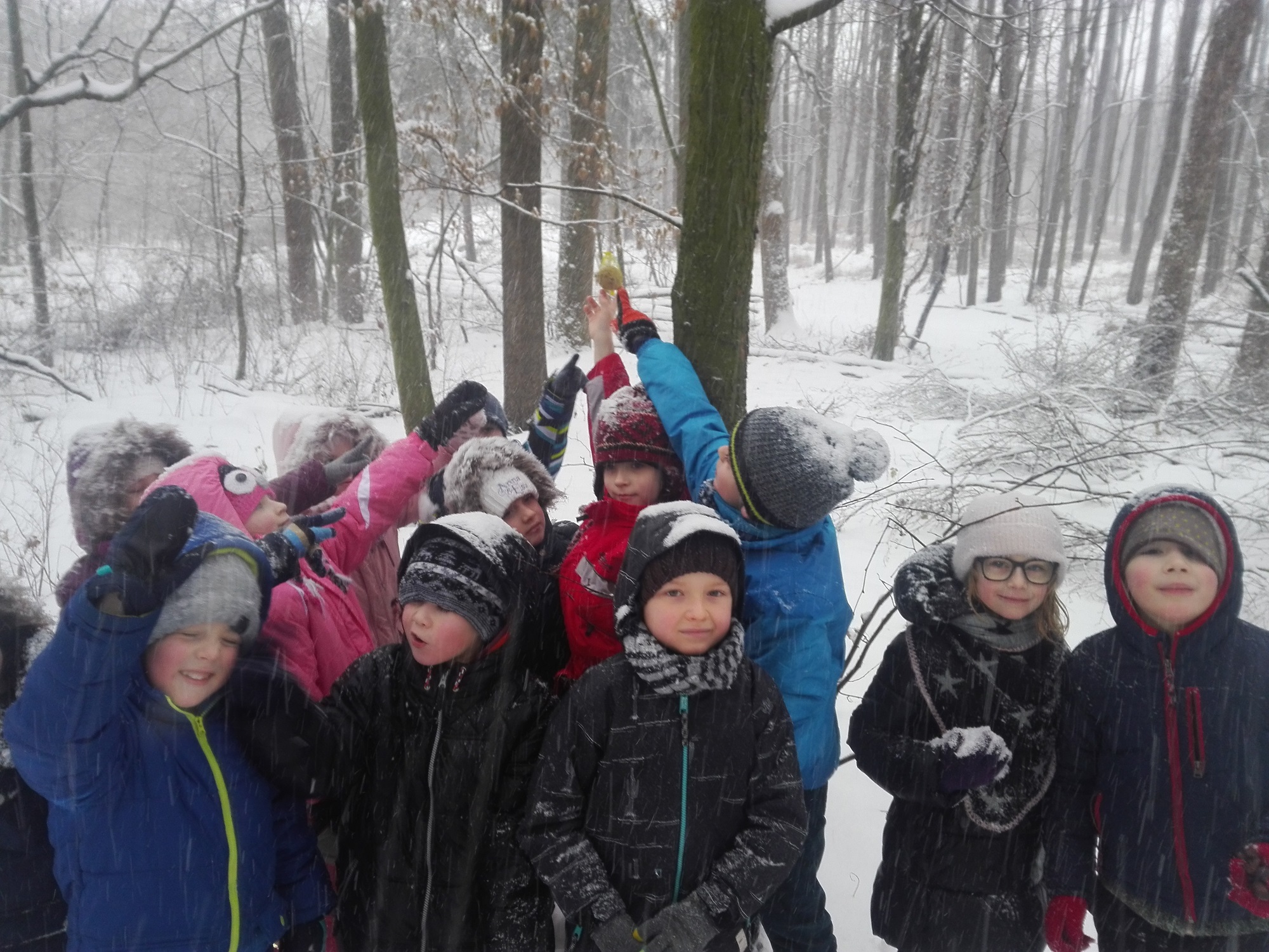 Pravou zimní "ladovskou" výpravu zažili naši prváčci. Na podzim nasbírali kaštany a ořechy, vyrobili baštu pro ptáčky a všechno si vzali s sebou do sněhem zasypaného kněžpolského lesa, kde krmení pro zvířátka rozmístili. Cesta zpět v chumelenici byla náročnější, ale naši nejmenší ji zvládli a na závěr uspořádali i pořádnou koulovačku.
