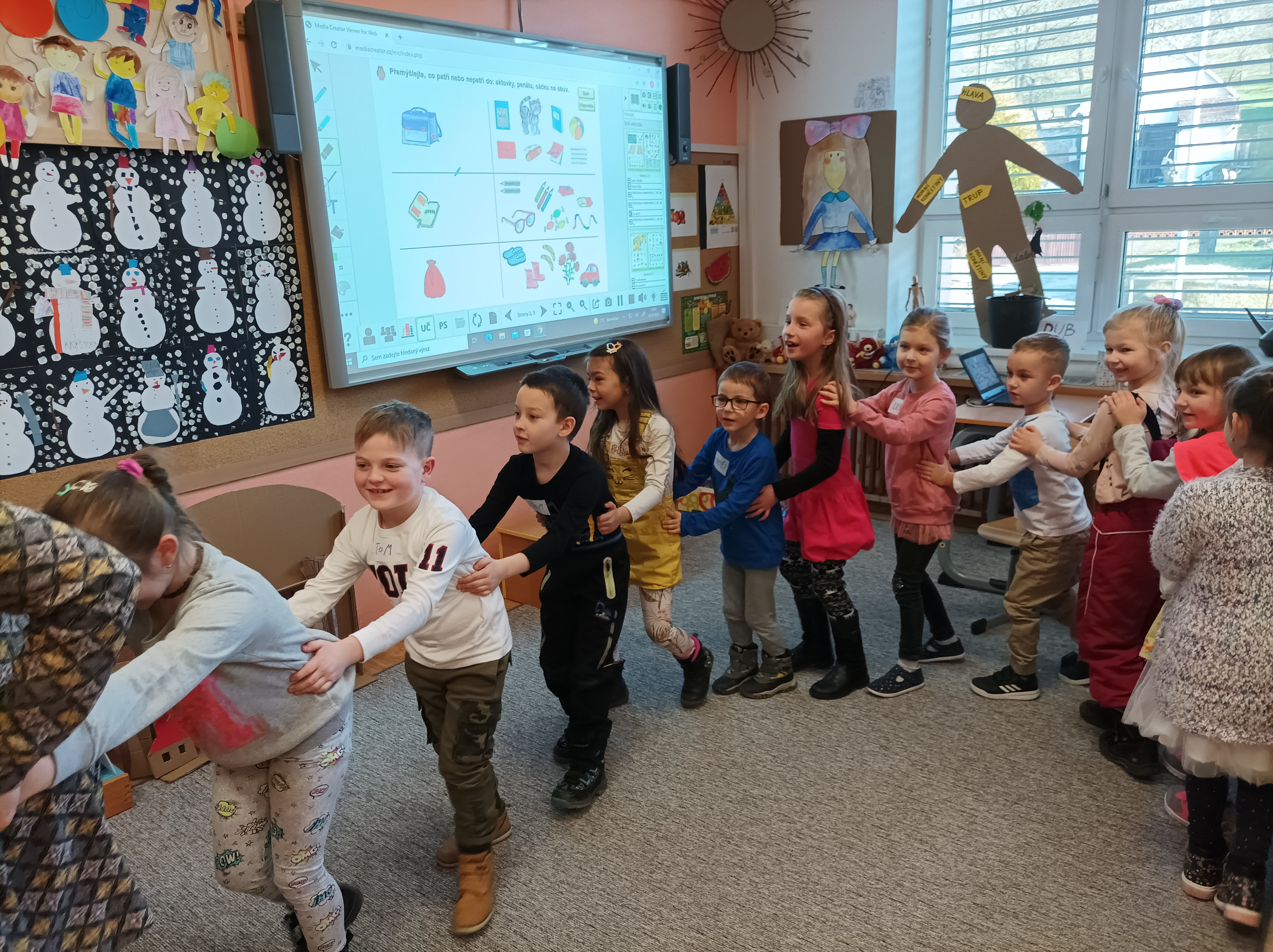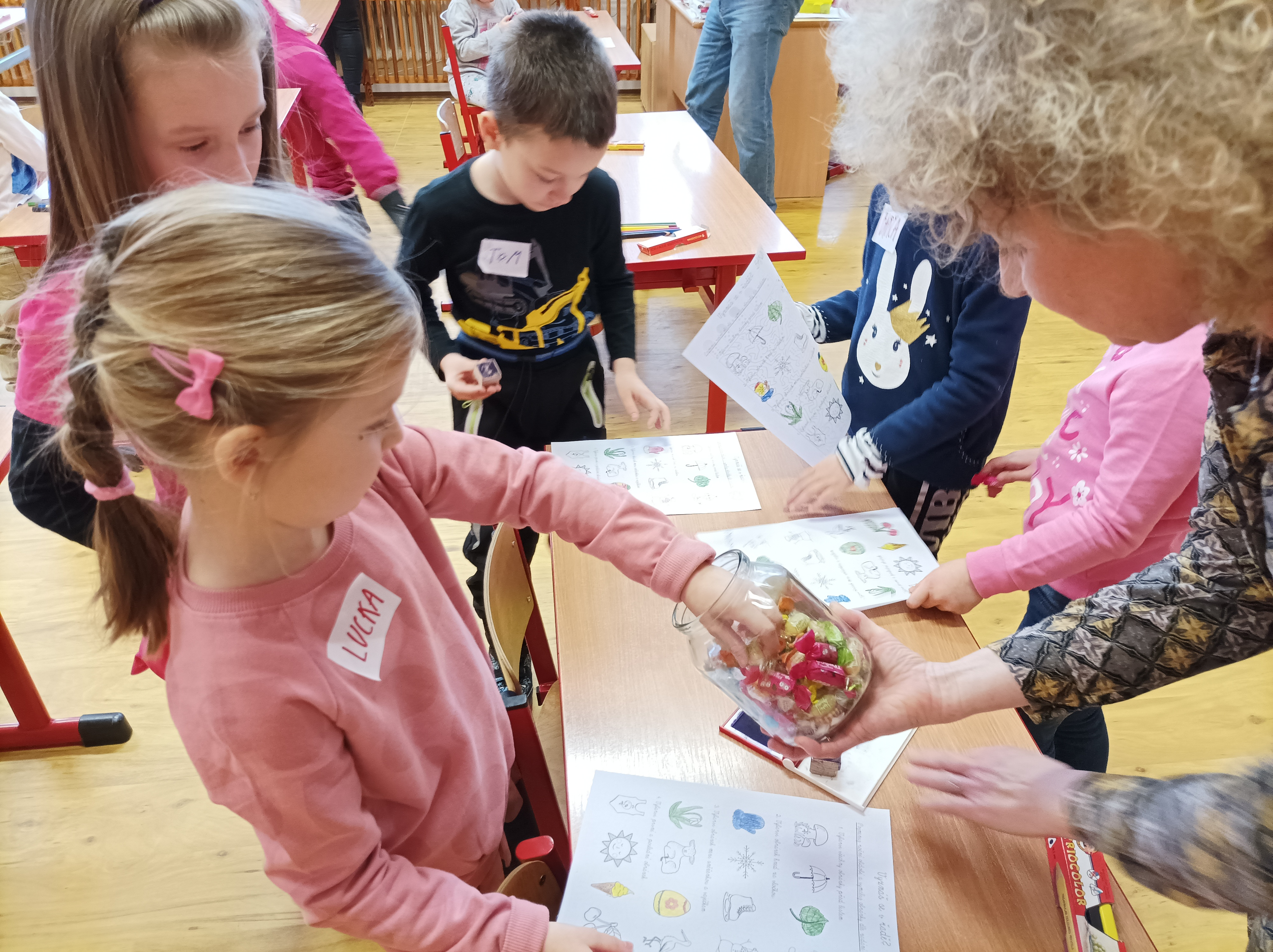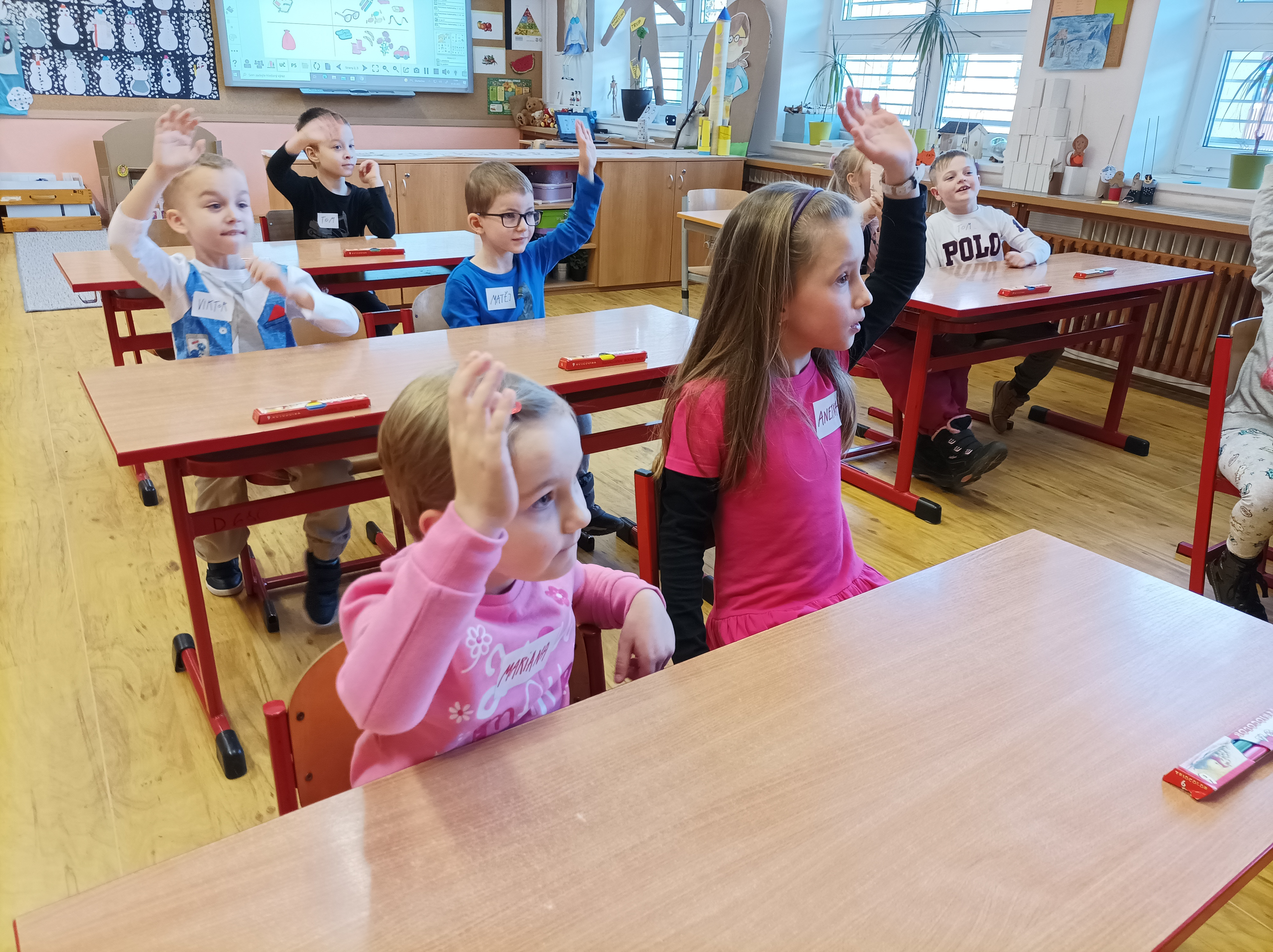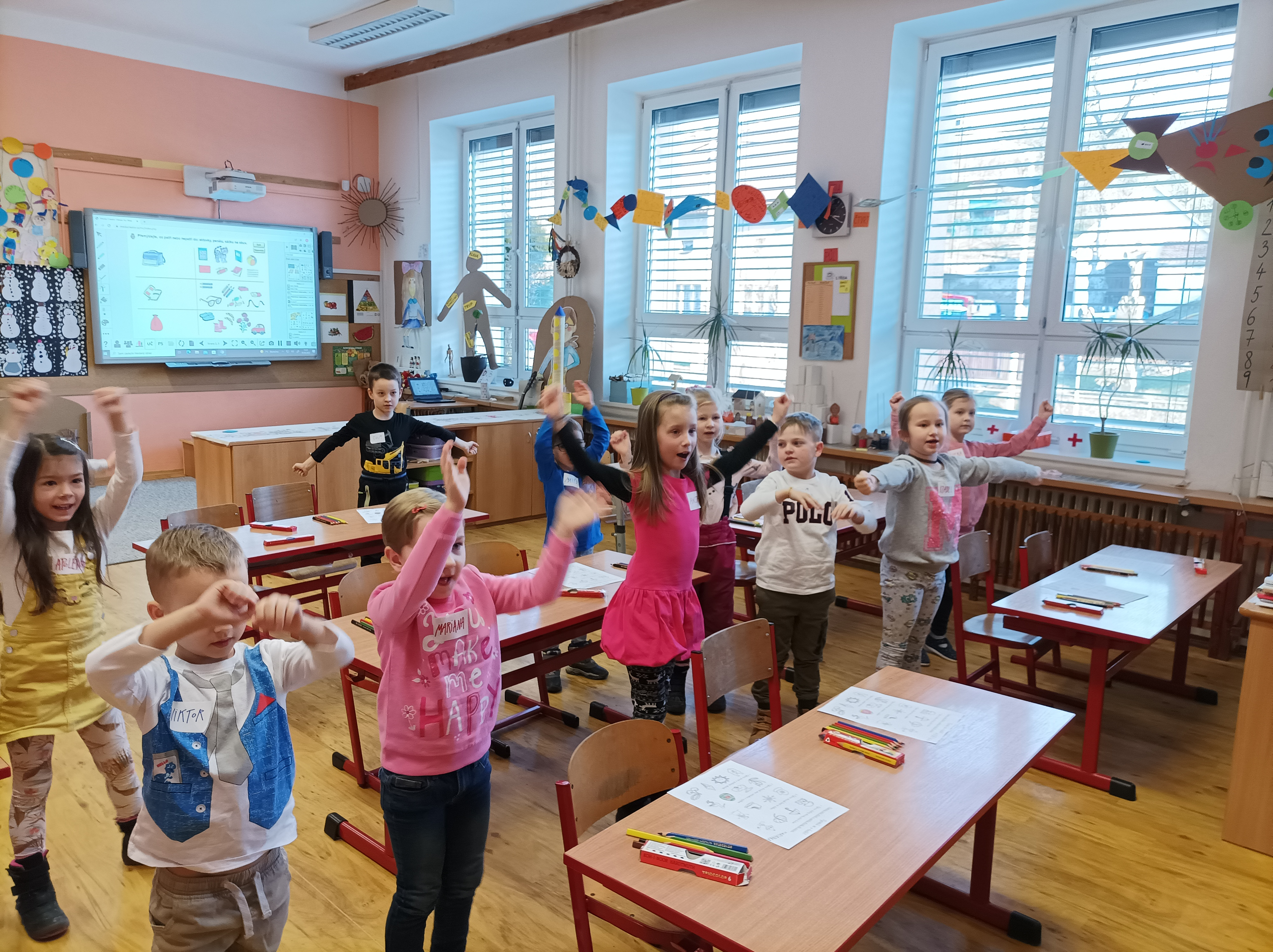Holky a kluci ze školky si s paní učitelkou zazpívali, procvičili celá těla, vypracovali spoustu úkolů, kroužkovali, vybarvovali, tiskali, seřazovali, vybírali, hráli divadlo, povídali si... Věříme, že u nás strávili příjemné odpoledne a stejně jako my se už dnes těší na druhou předškoličku, která se uskuteční v úterý 15. března 2022 od 15 do 16 hodin.