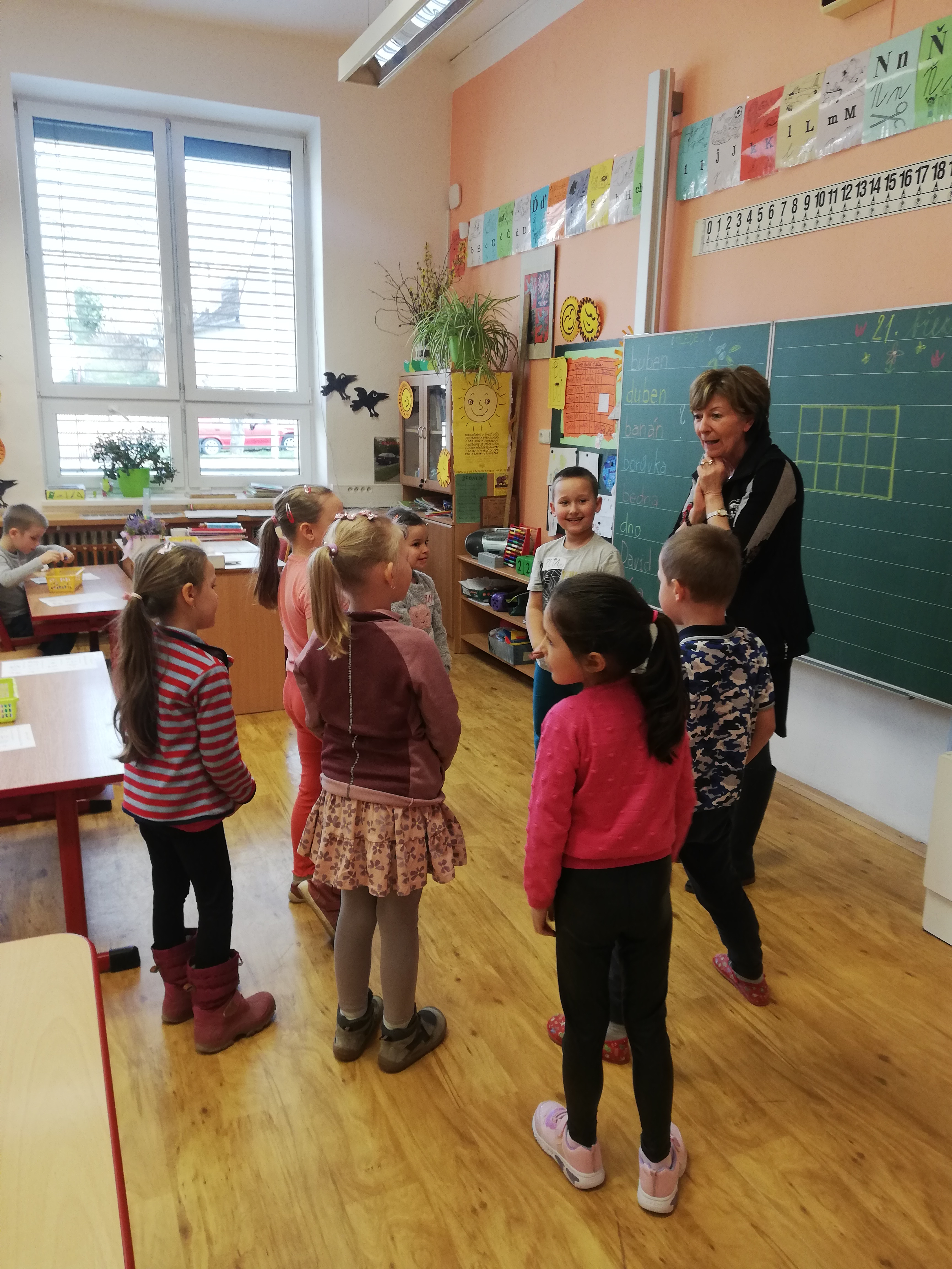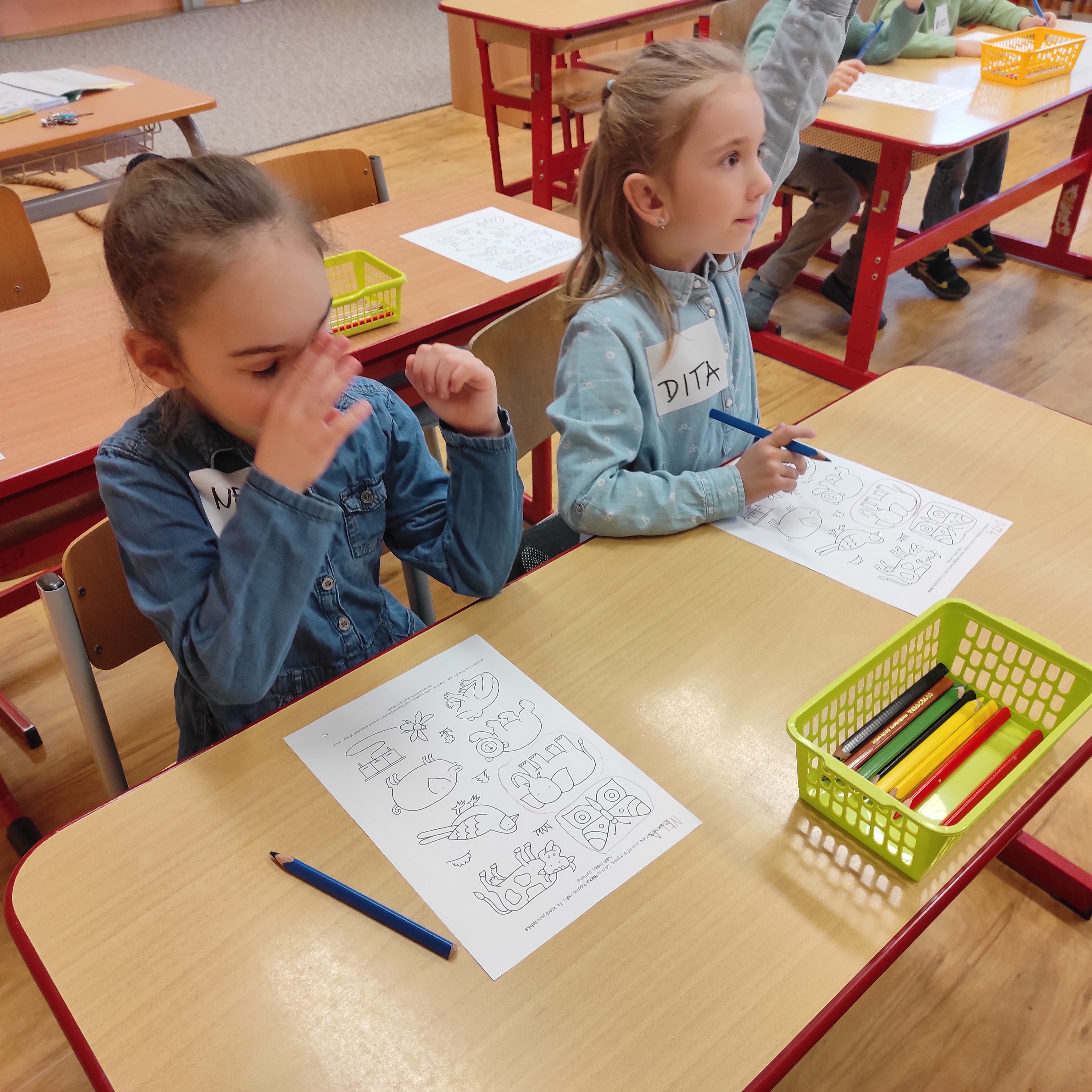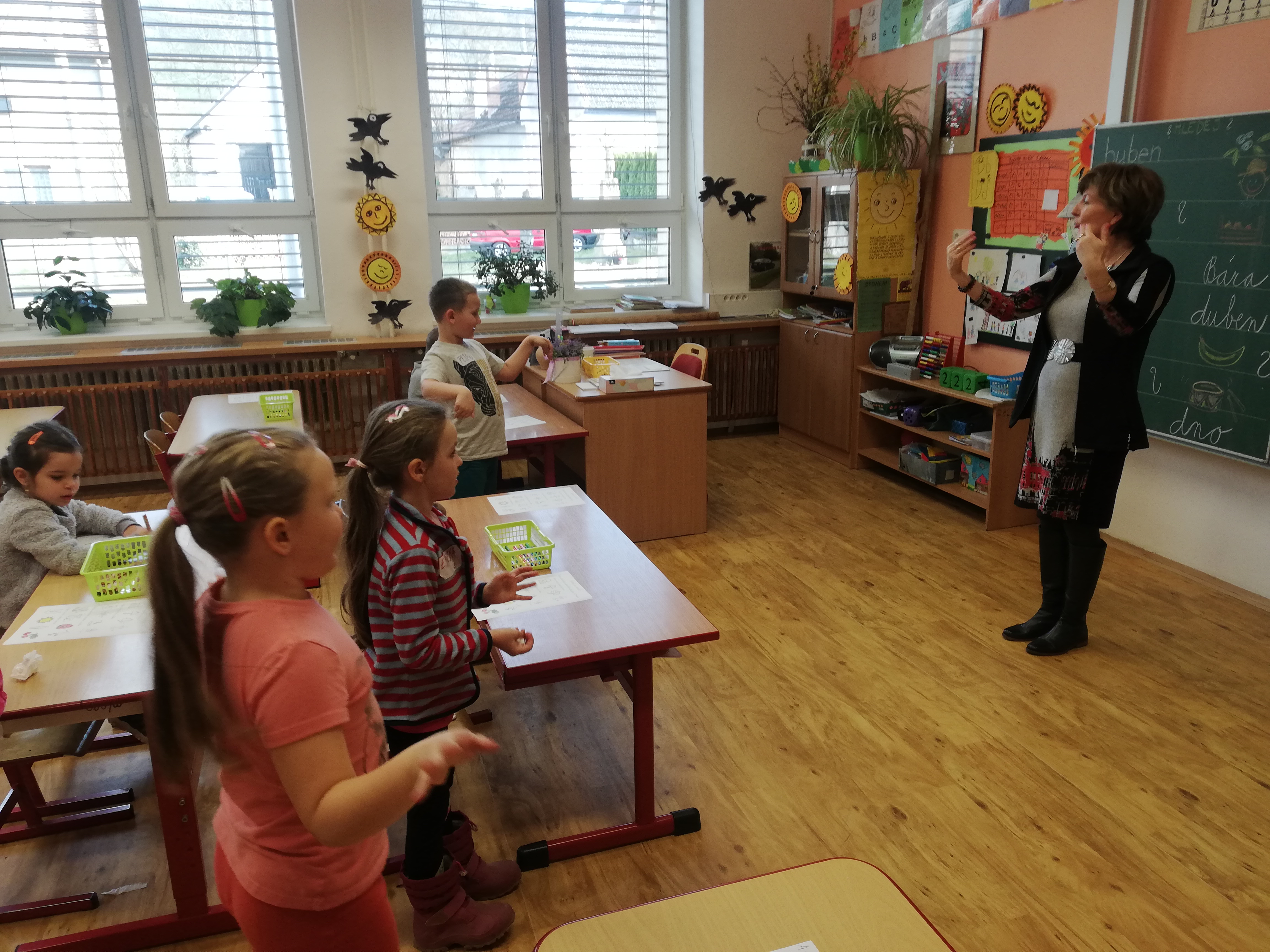 Budoucí předškoláci si opět vyzkoušeli, jak vypadá taková hodina v první třídě. Brzy je čeká zápis do 1. třídy, proto opět takovouto možnost využilo několik děti, které přivítala budoucí třídní učitelka první třídy Zlatuše Slezáková.