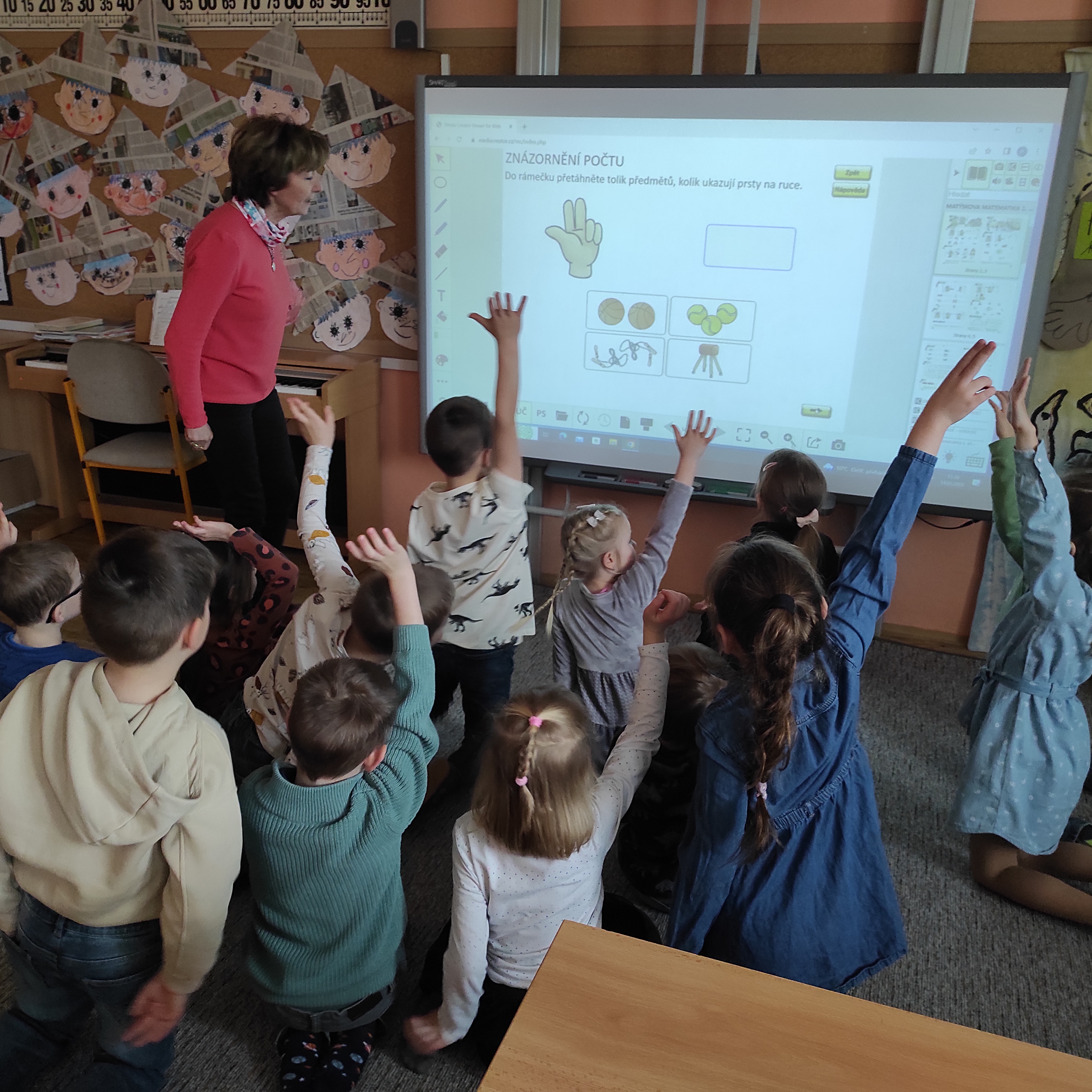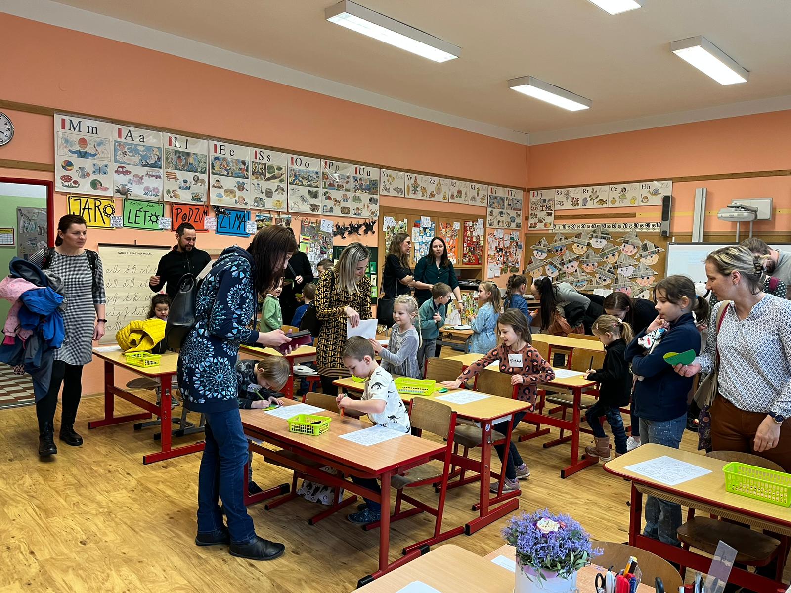 Děti si prožily zábavnou hodinu plnou procvičování "úkolů", znalostí a dovedností, které potom u zápisu určitě budou potřebovat. Vyzkoušely si i práci na interaktivní tabuli a na závěr si zatancovali nově naučenou písničku. Rodiče si mohli prohlédnout školu, získat informace od našich paní učitelek. Těšíme se na shledáni při zápisu 14.4.2023