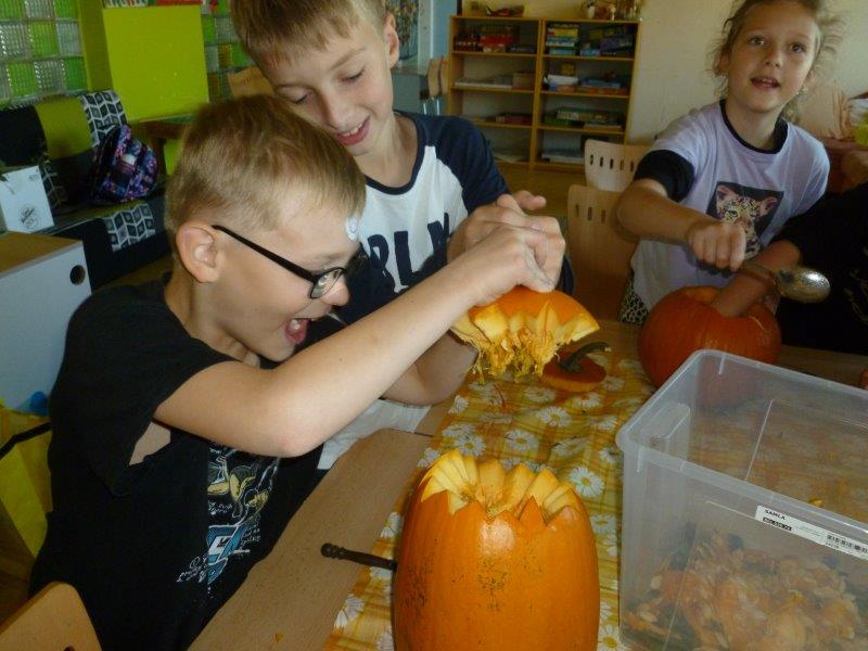 Druhý měsíc za námi a s ním nové zážitky. Alespoň o některé se s vámi podělíme. Pěvecký kroužek připravil kulturní program – „strašidelné“ písně, které předvedl na tradiční akci „Dýňování“.