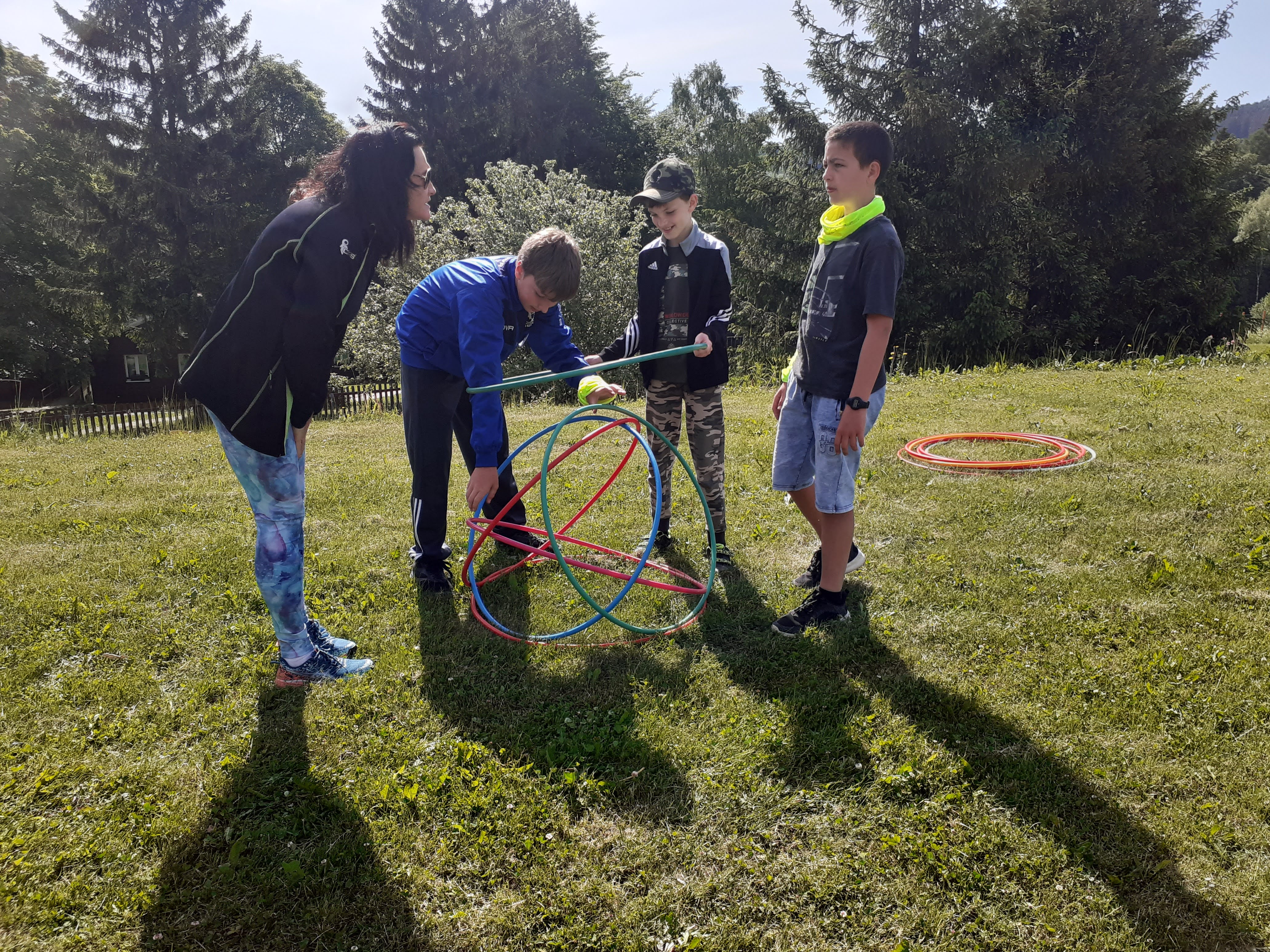 Celých pět dní jsme tak mohli naslouchat několika cizím jazykům a mnozí odvážlivci se pustili i do rozhovorů v angličtině. S našimi evropskými kamarády jsme společně sportovali (hráli volejbal, softbal, fotbal, badminton, kolíkovanou a další), poznávali krásy česko - slovenského pohraničí, soutěžili jsme, pátrali v lese, bavili se hrami, zpěvem a tancem v rámci mezinárodních večerů.
