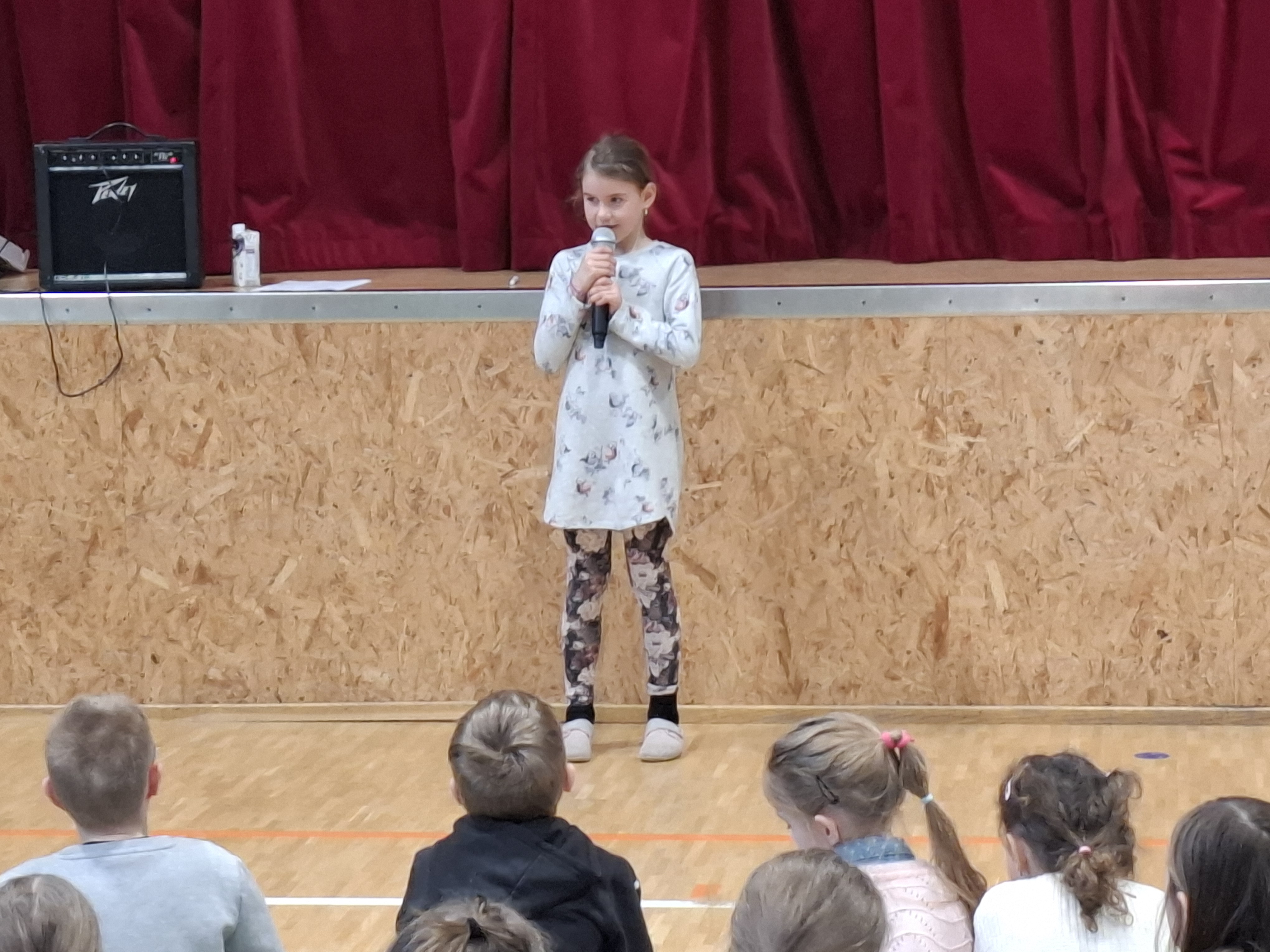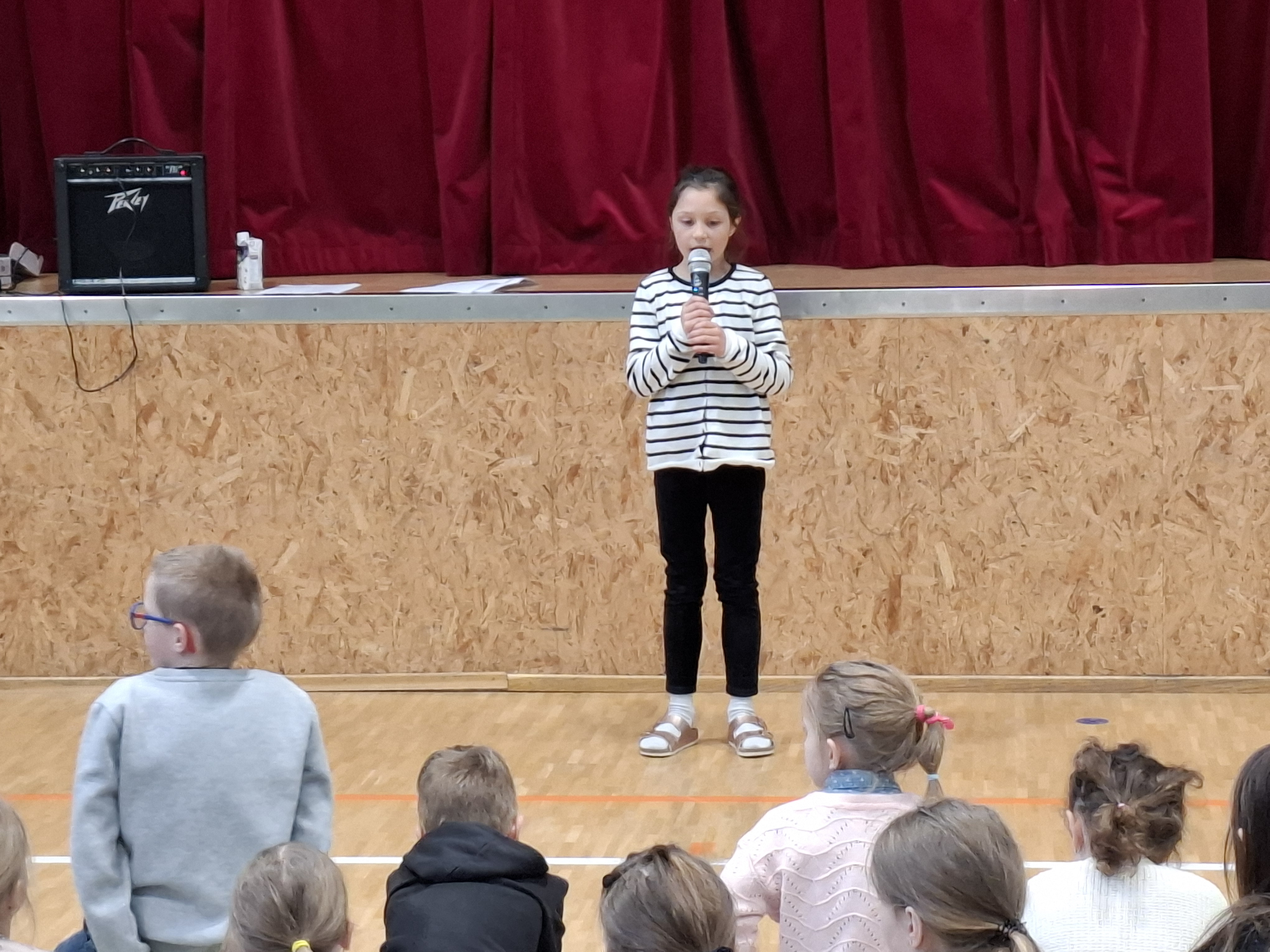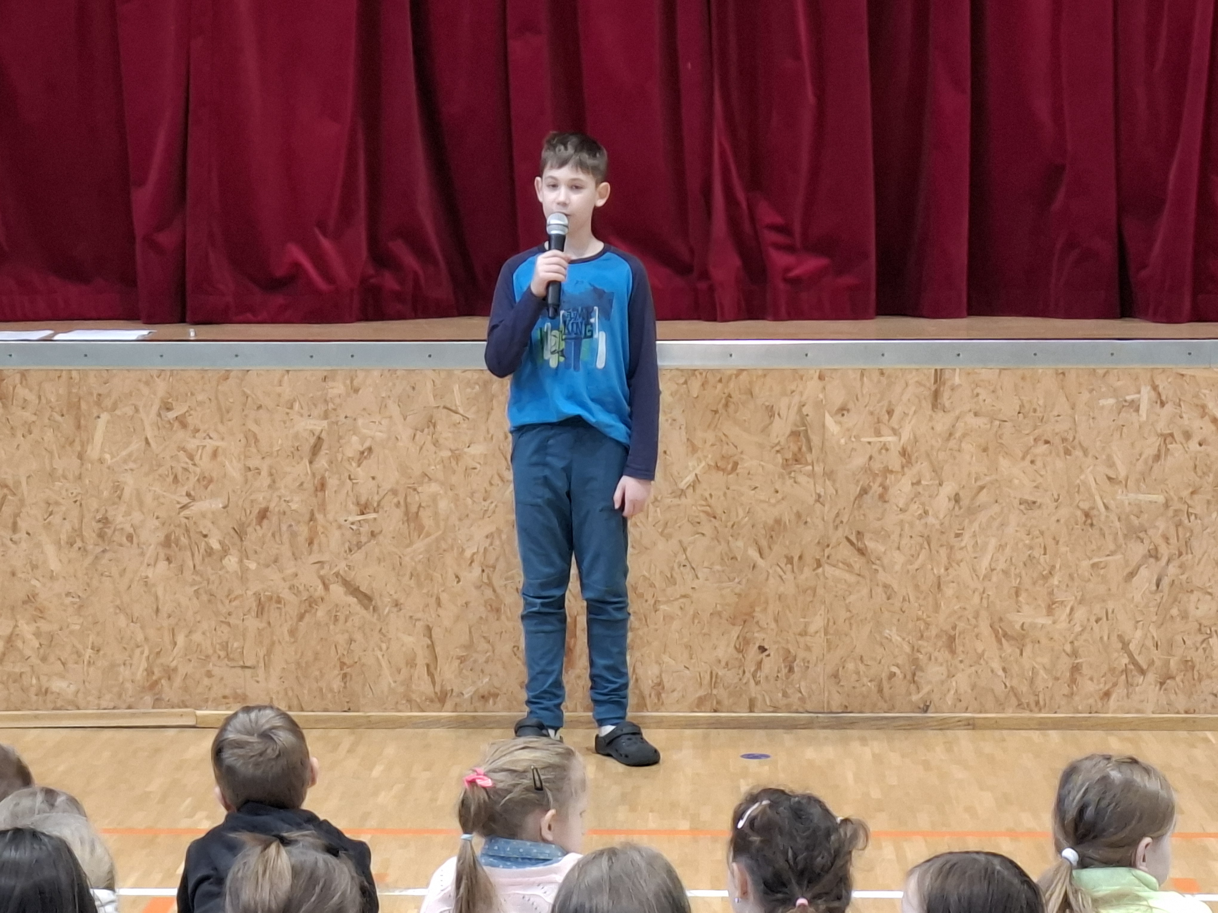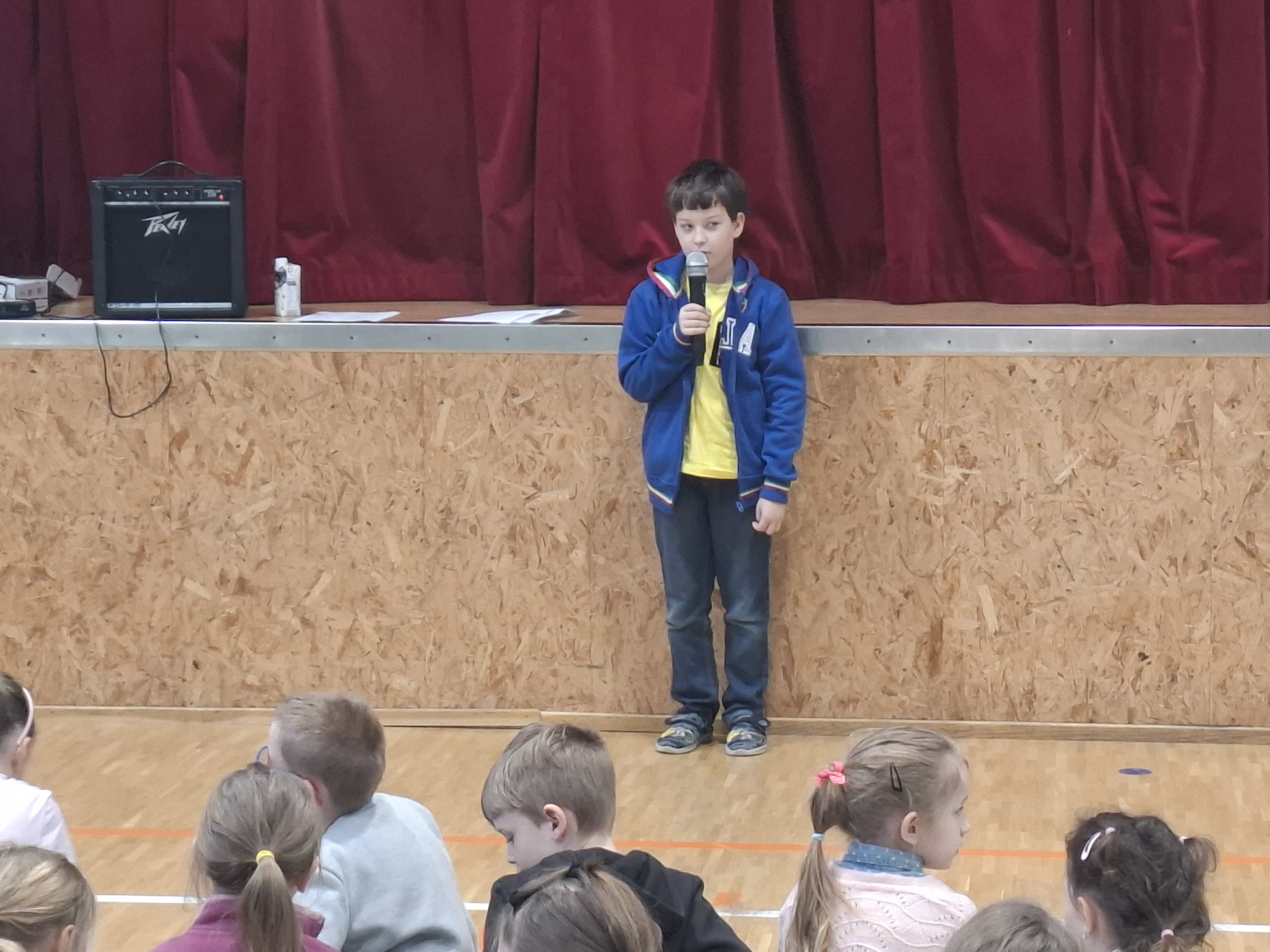 Ve středu 12. března proběhla také letos naše oblíbená pěvecká soutěž – Zazpívej, slavíčku. Každá třída vyslala několik zástupců, kteří byli rozděleni do tří kategoroií. Naše tělocvična se proměnila v kulturní sál a ve velkém prostoru zaznělo mnoho líbivých písní. Jedním z úkolů hudebního dopoledne bylo podnícení chuti ke zpěvu – čas prověří... Ale díky zpívání jsme přivolali minimálně jarní náladu. Tleskáme všem vystupujícím, byli jste moc šikovní!