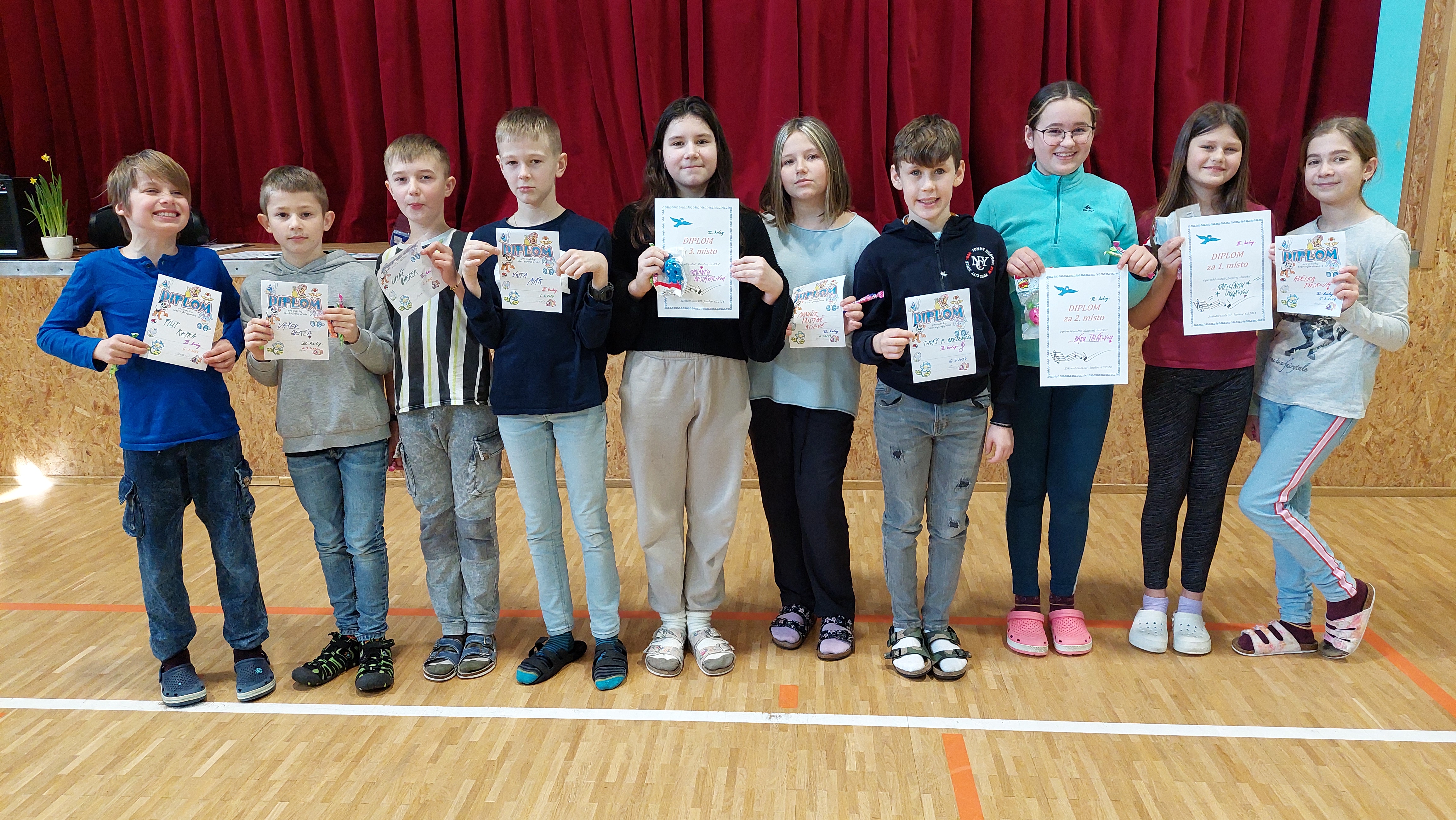Jestli platí, že každá píseň má své záření, tak se nám ve středu 6.3. podařilo rozsvítit tělocvičnu. I v letošním roce jsme uspořádali pěveckou soutěž pro začínající talenty. Zpěv s mikrofonem jistě pomohl k většímu „uměleckému“ dojmu. Soutěžící byli rozděleni do tří věkových skupin a porota to již tradičně neměla jednoduché. Ve velkém prostoru zaznělo mnoho líbivých písní. A věříme, že jsme naším zpěvem podpořili radost a dobrou náladu. Děkujeme všem vystupujícím i publiku za zážitkové dopoledne 🎵!